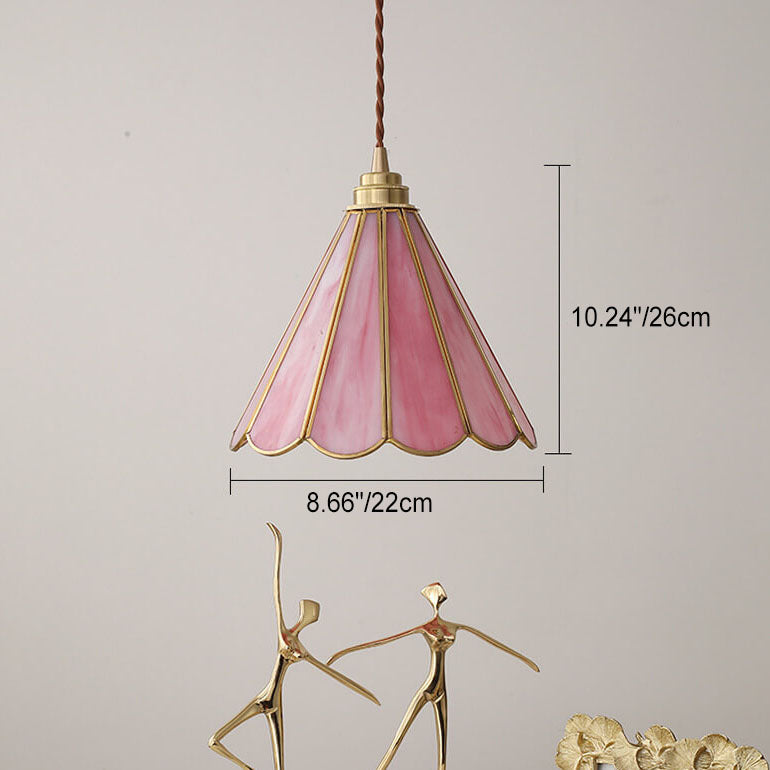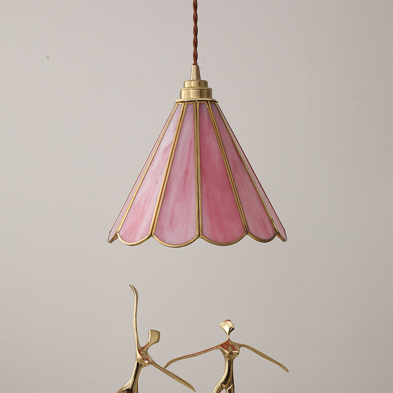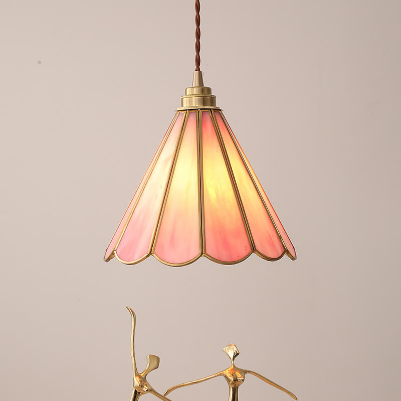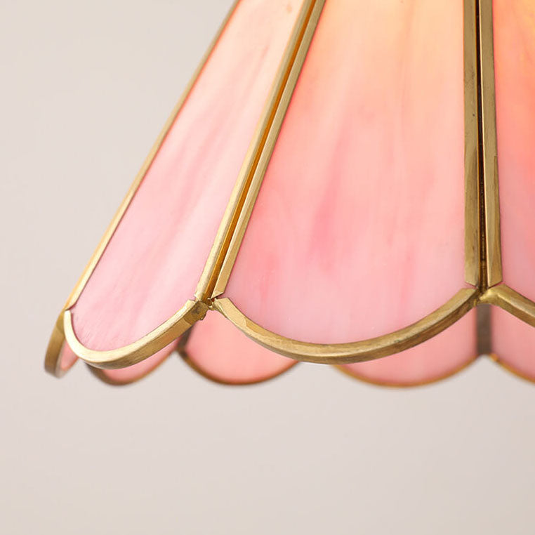 Modern Eclectic Brass Flower Glass Shade 1-Light Pendant Light For Dining Room