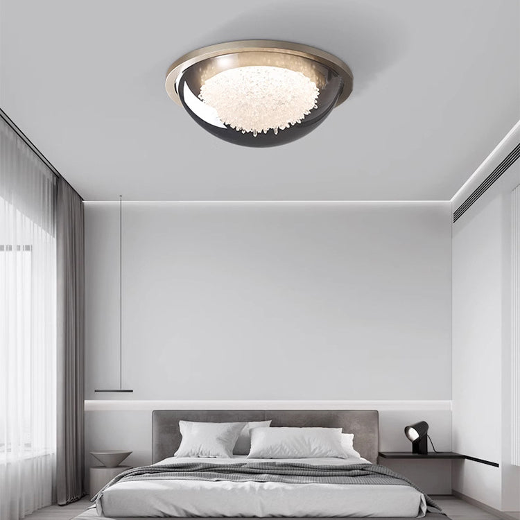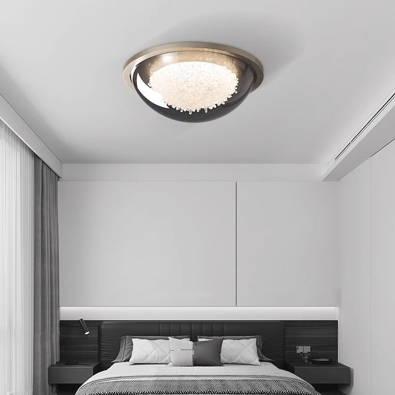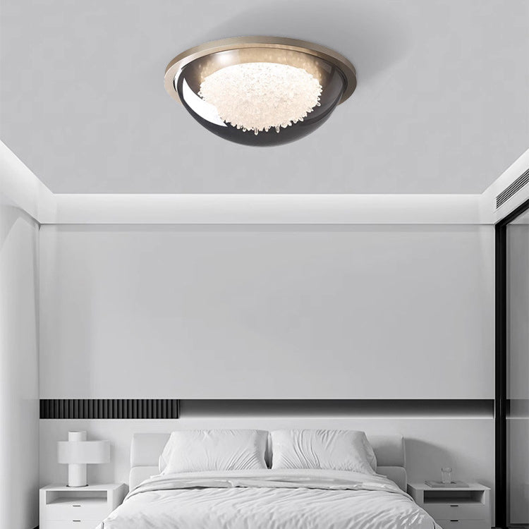 Modern Eclectic Dome Metal Platinum LED Flush Mount Ceiling Light For Bedroom