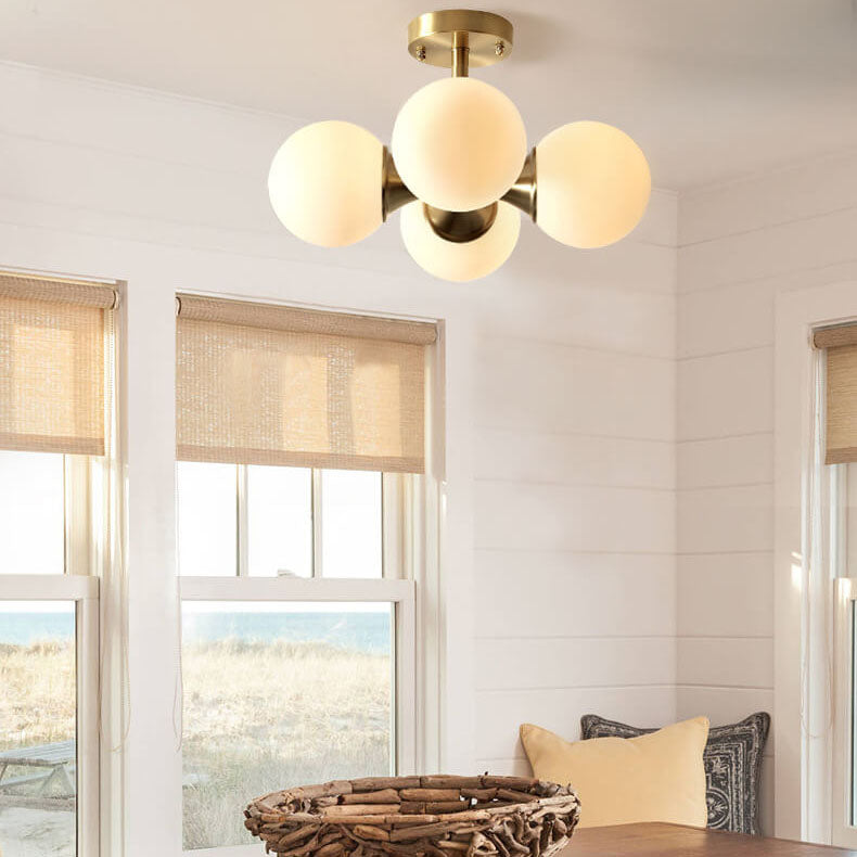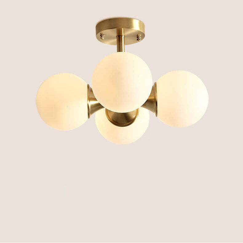 Modern Light Luxury Brass Glass Orb 4-Light Semi-Flush Mount Ceiling Light