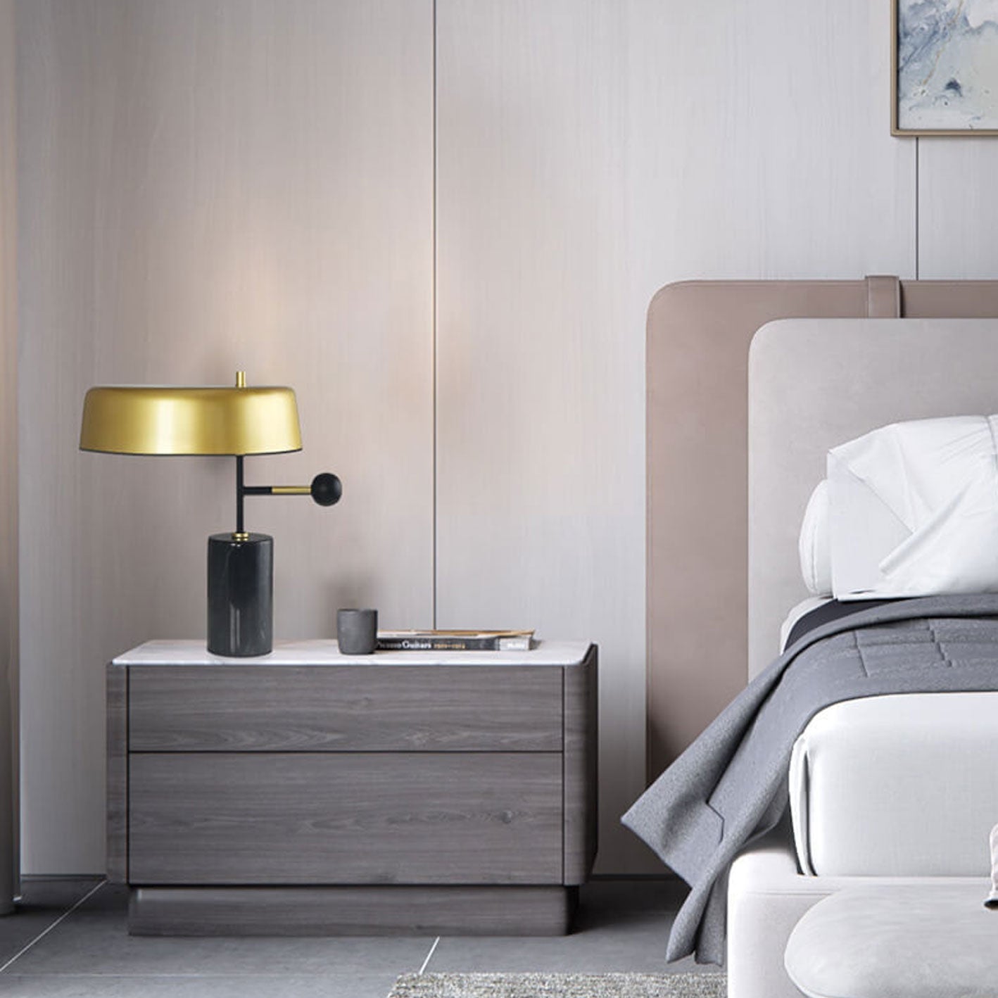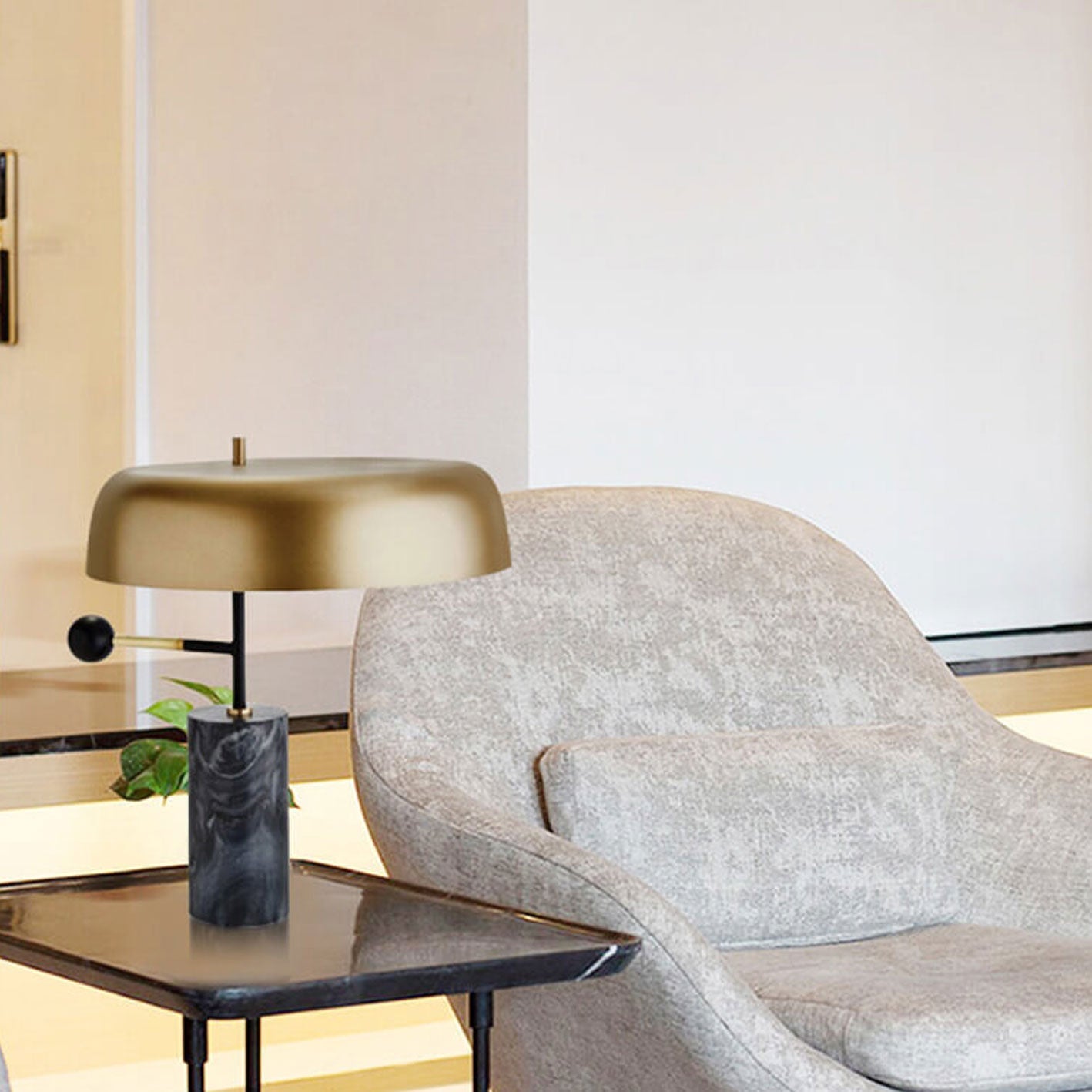 Modern Light Luxury Gold Shade Marble Column Base 1-Light Table Lamp