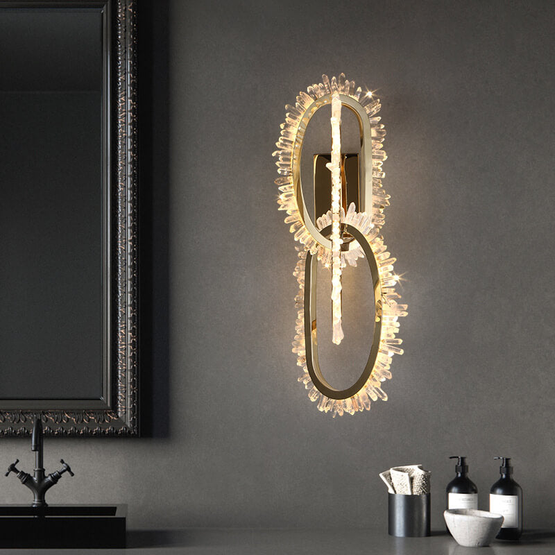 Modern Light Luxury Stainless Steel Crystal Circle LED Wall Sconce Lamp