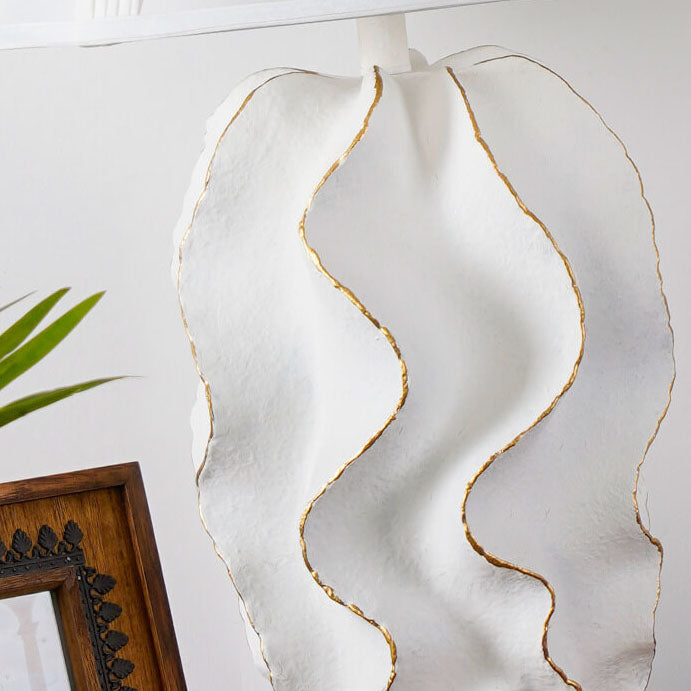 Modern Light Luxury White Fabric Striped Resin Base 1-Light Table Lamp