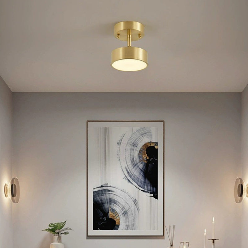 Modern Luxury Adjustable Angle Round Copper Acrylic LED Semi-Flush Mount Ceiling Light For Living Room
