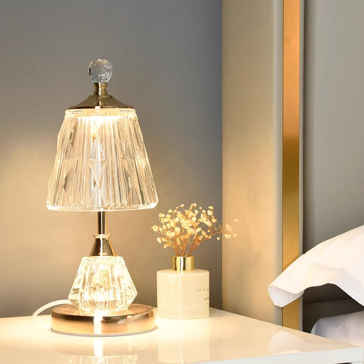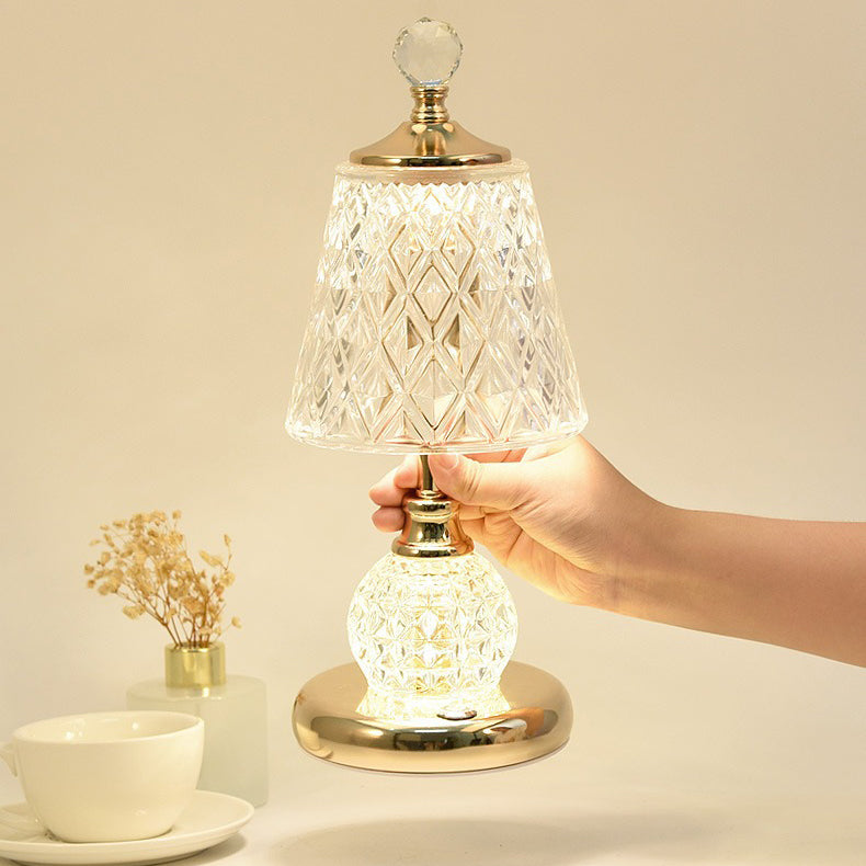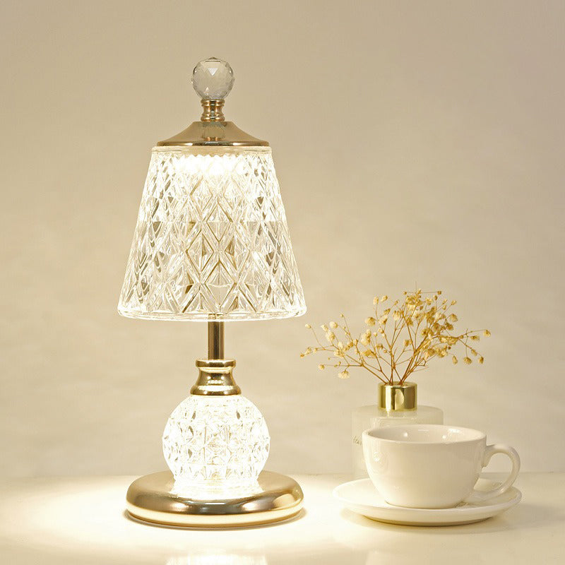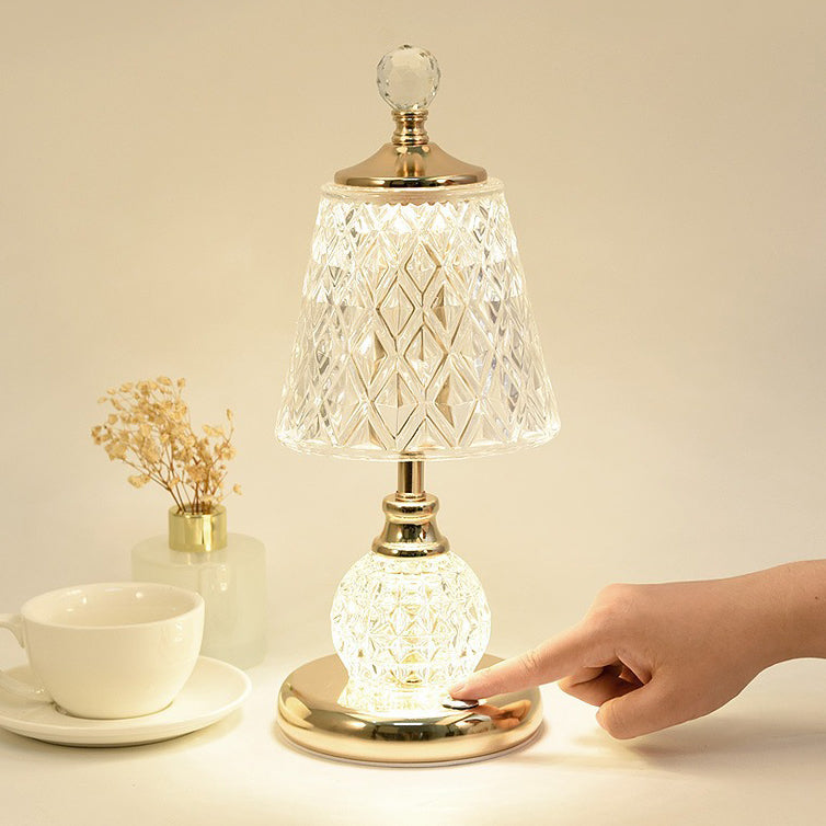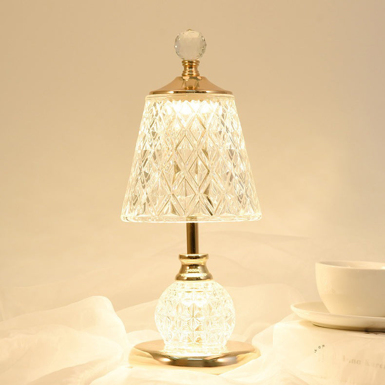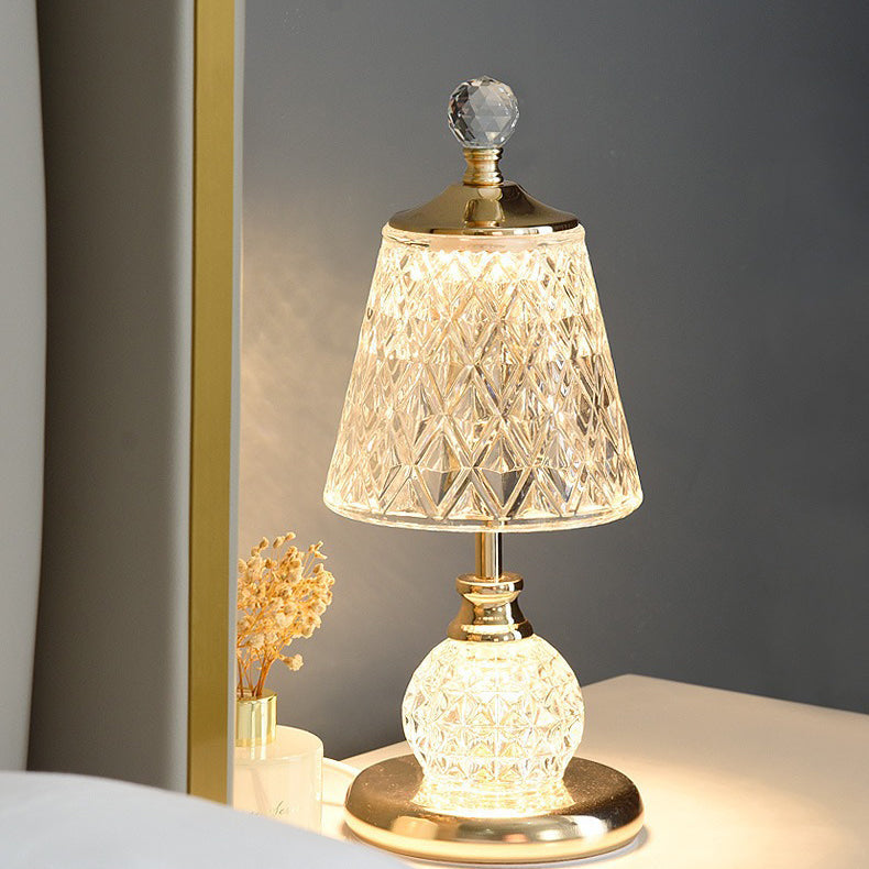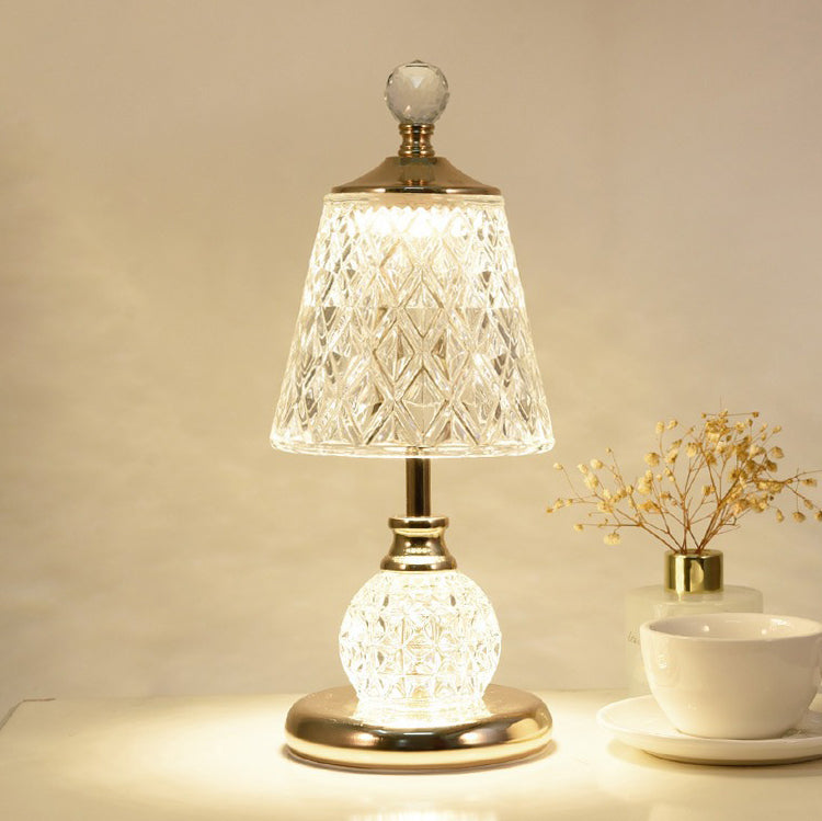 Modern Luxury Ball Cone Base Drum Glass Iron USB LED Table Lamp For Bedroom