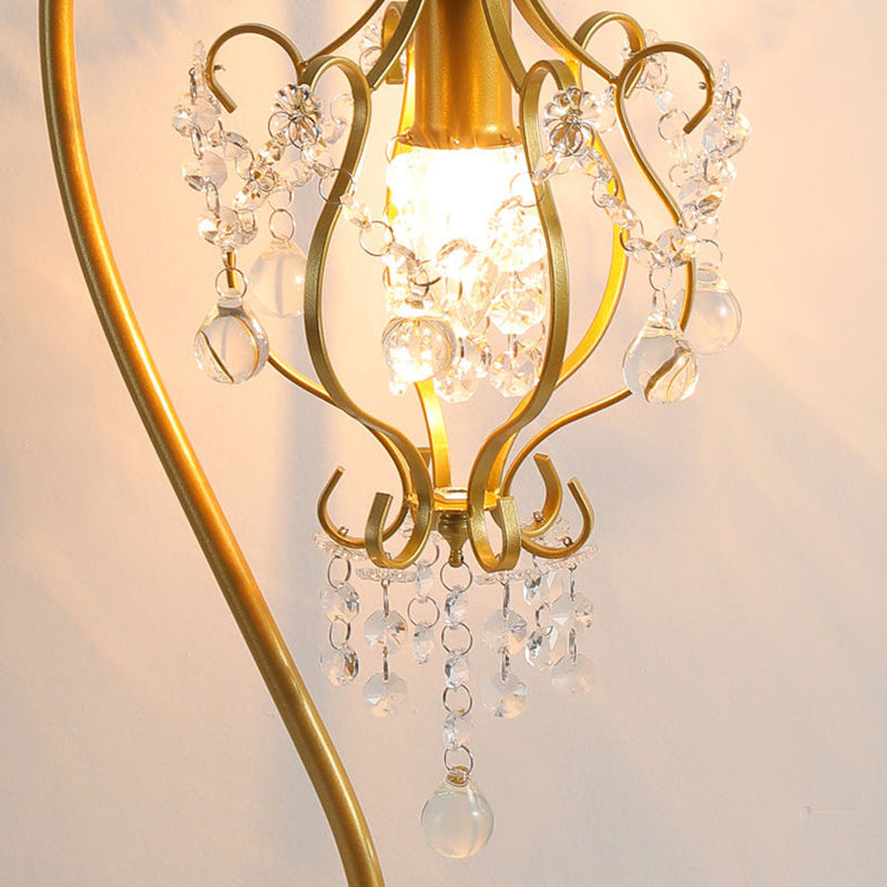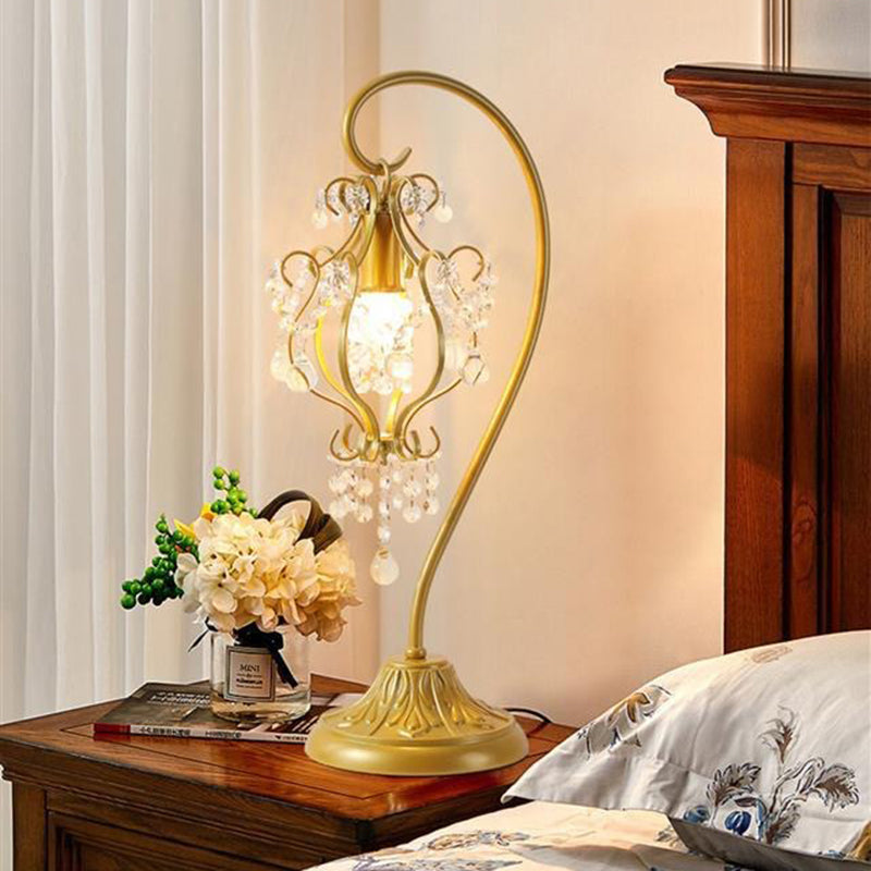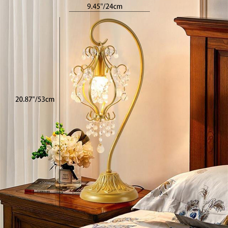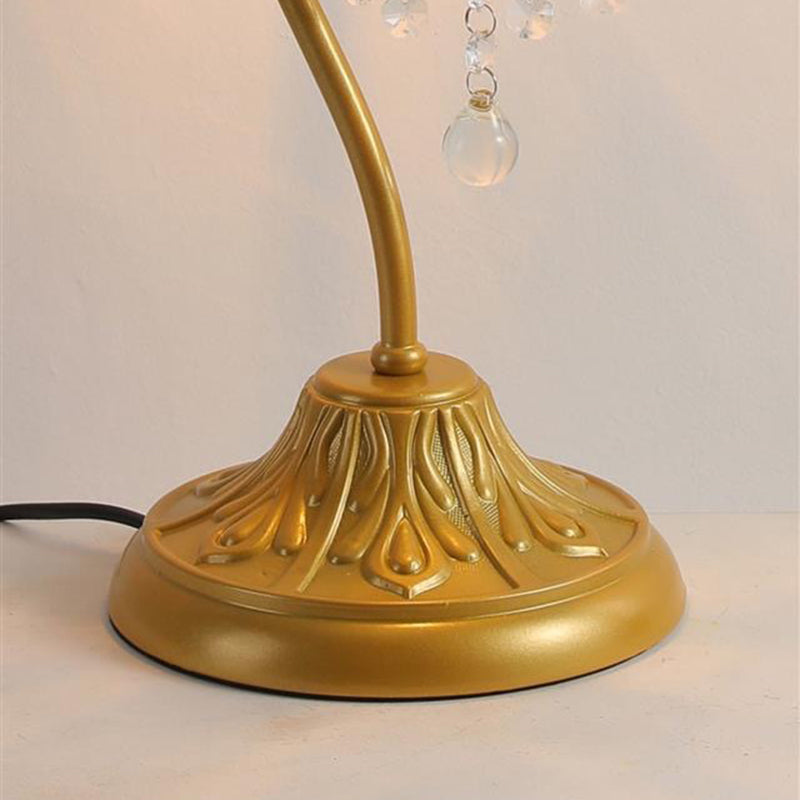 Modern Luxury Beaded Crystal Bent Iron Glass 1-Light Table Lamp For Bedroom