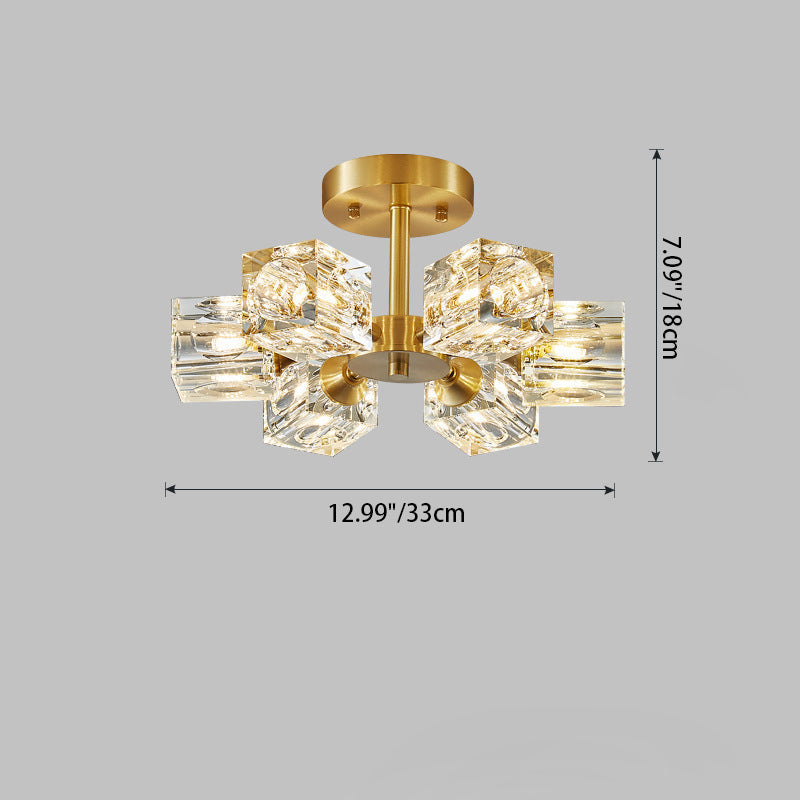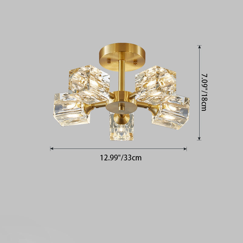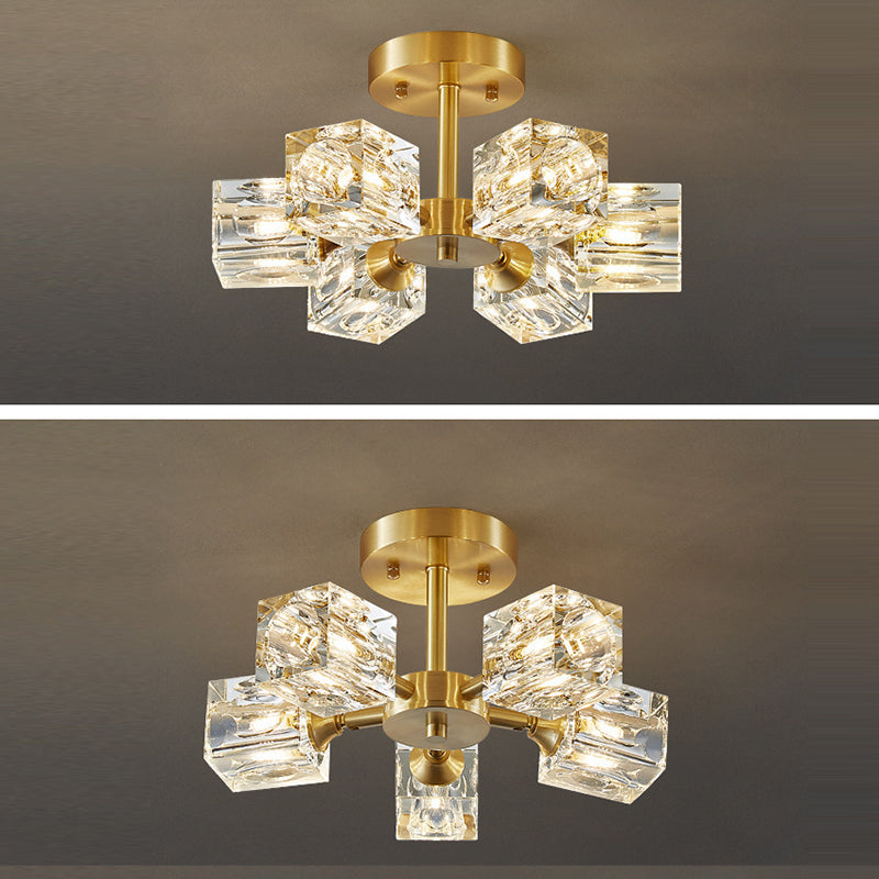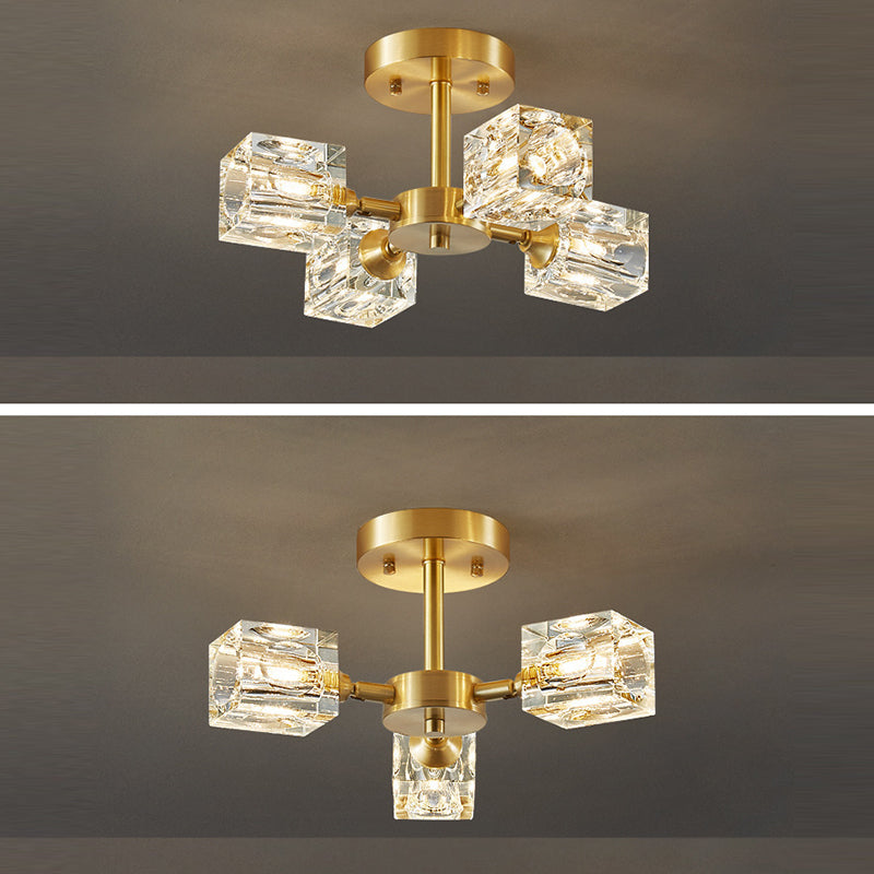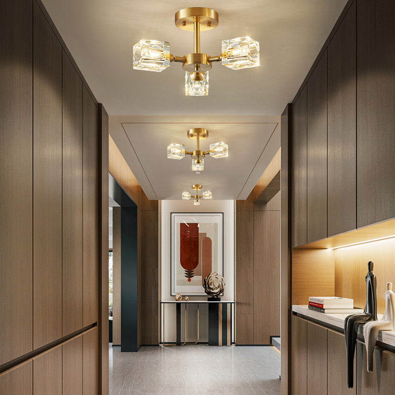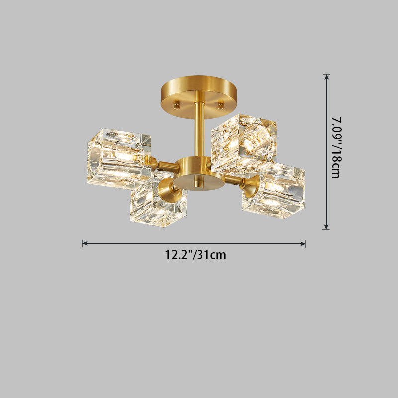 Modern Luxury Branch Square Round Crystal Copper 3/4/5/6 Light Semi-Flush Mount Ceiling Light For Bedroom