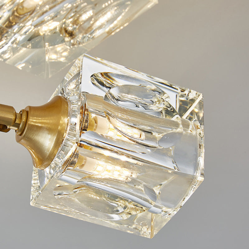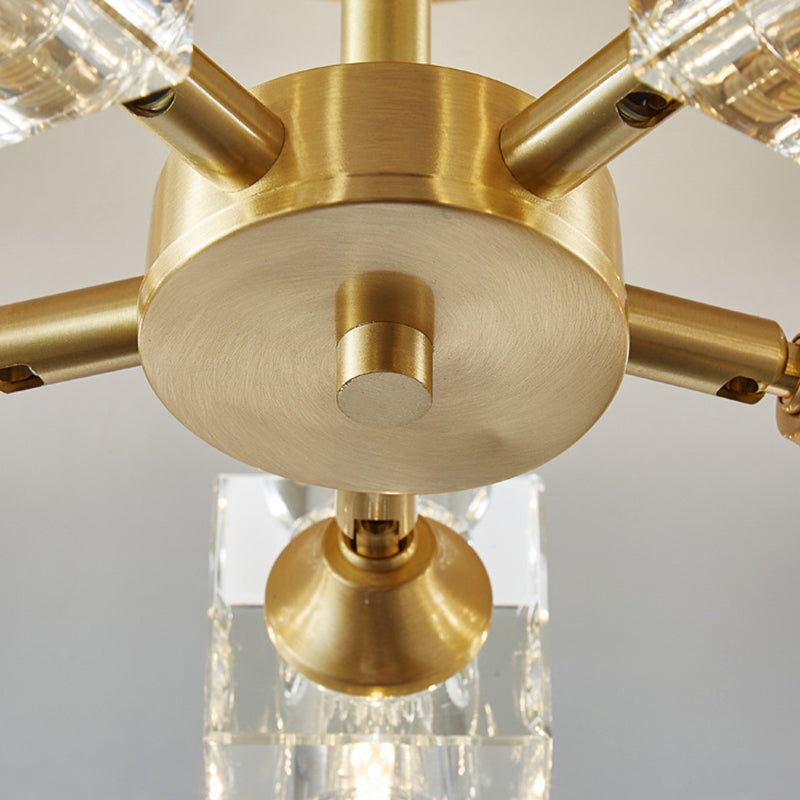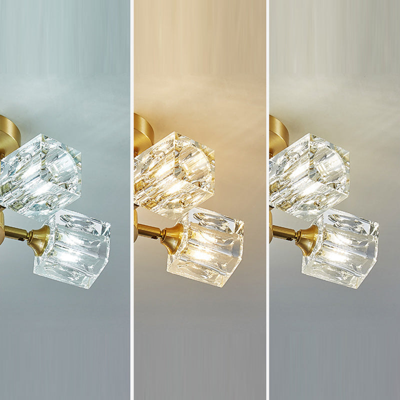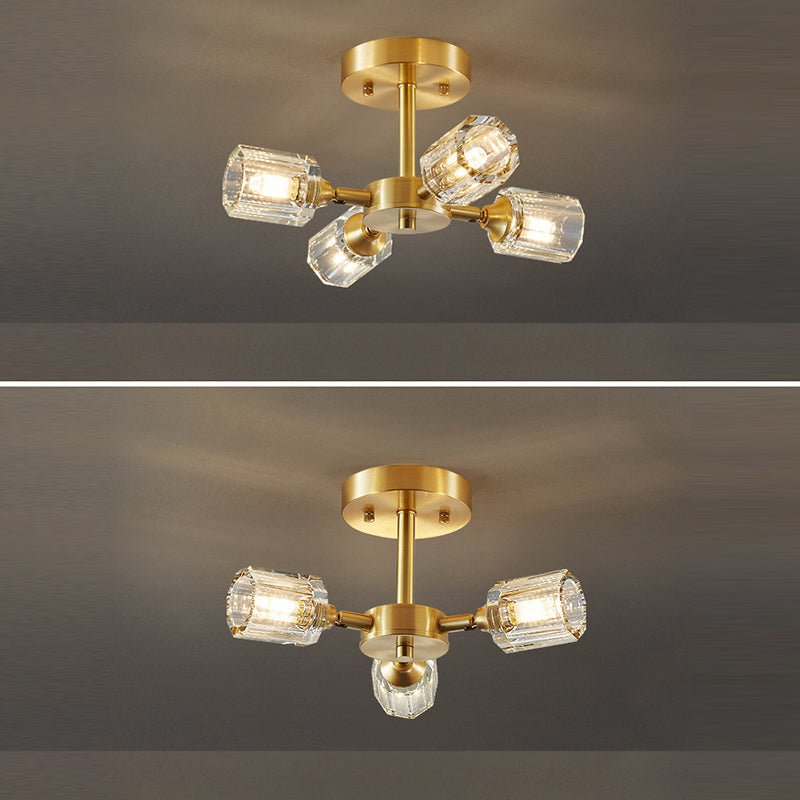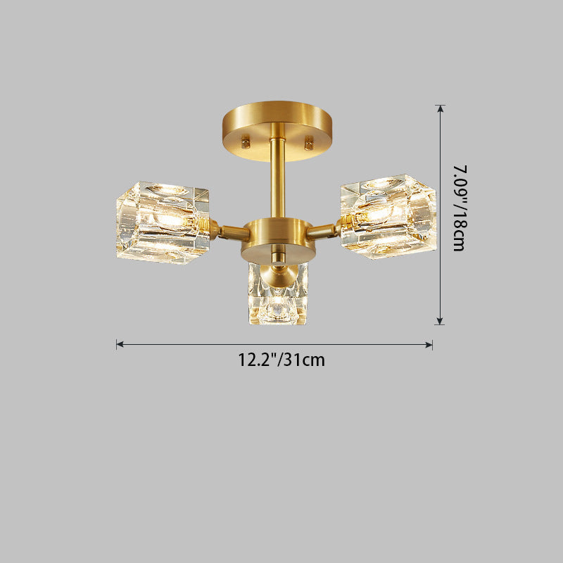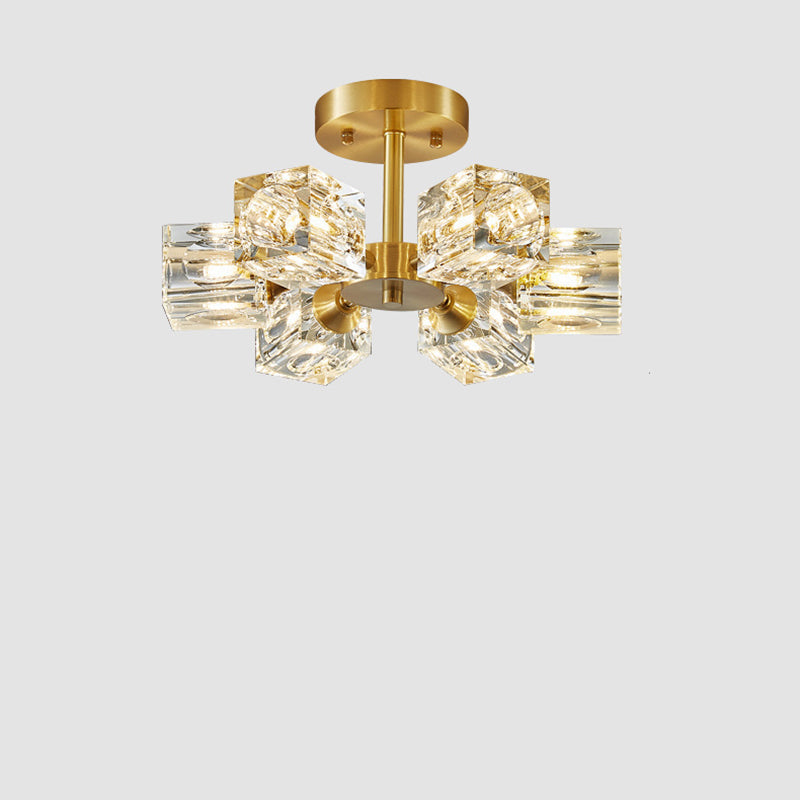 Modern Luxury Branch Square Round Crystal Copper 3/4/5/6 Light Semi-Flush Mount Ceiling Light For Bedroom