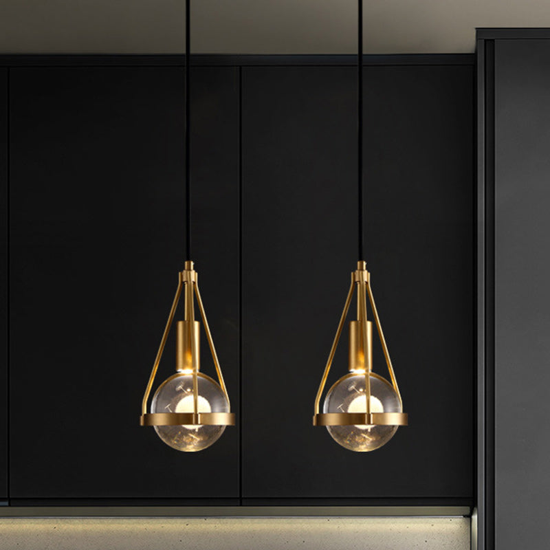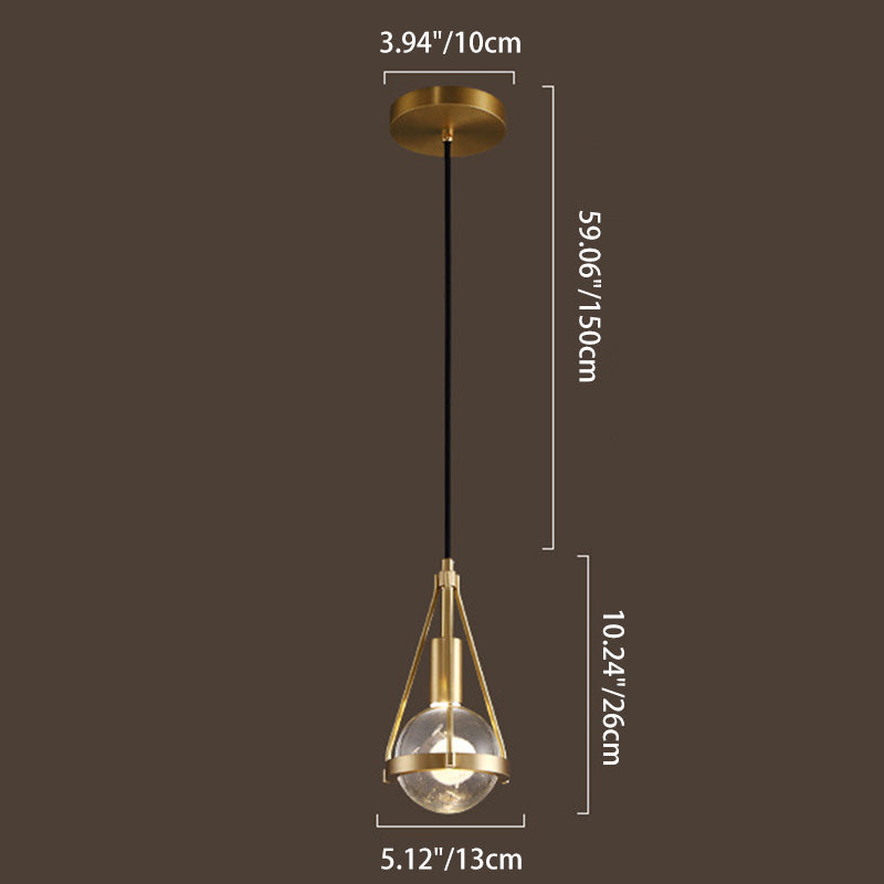 Modern Luxury Brass & Crystal Globe 1-Light Pendant Light For Living Room
