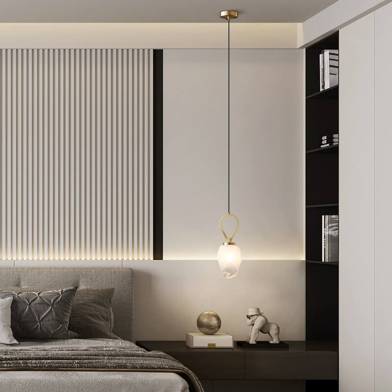 Modern Luxury Brass Geometrical Glass Shade 1-Light Pendant Light For Living Room