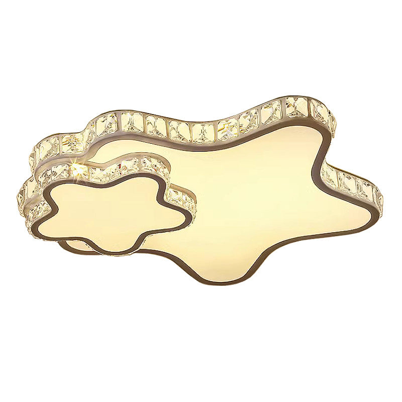 Modern Luxury Cloud Star Crescent Concentric Crystal Iron LED Flush Mount Ceiling Light For Living Room