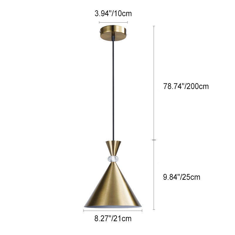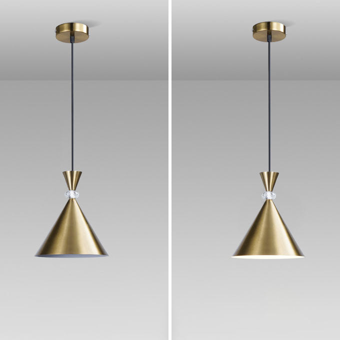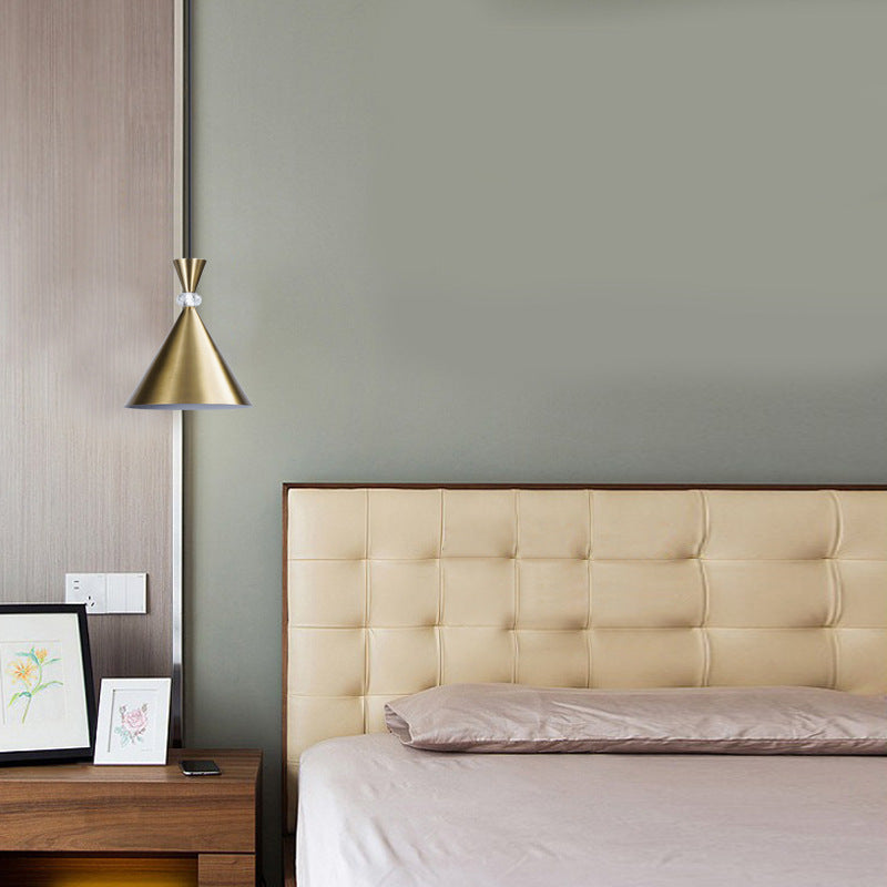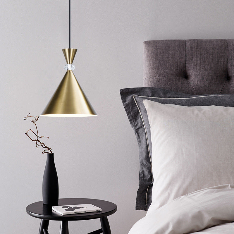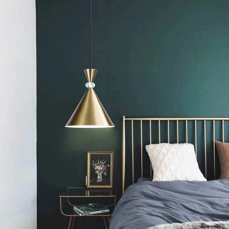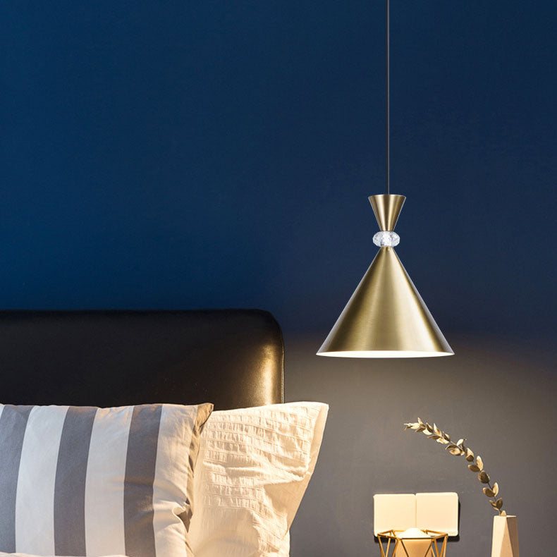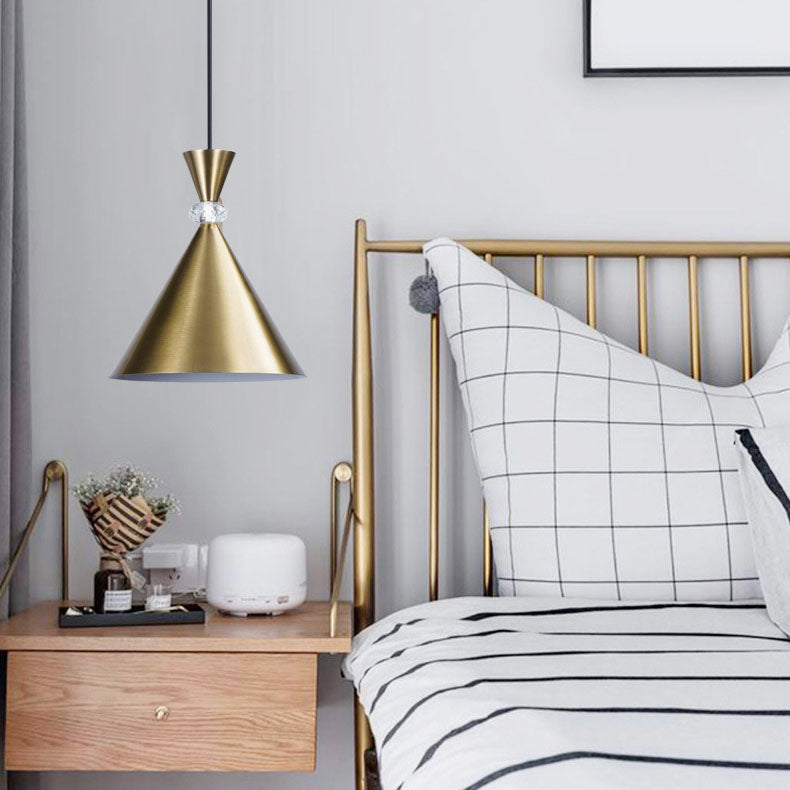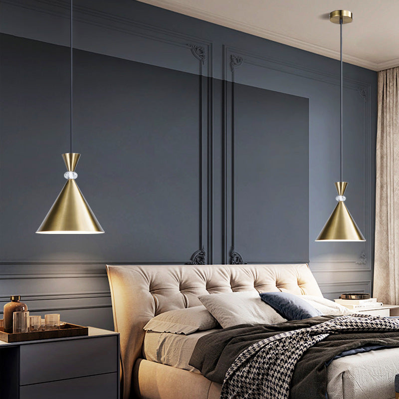 Modern Luxury Cone-Shaped Golden Finish Frame Crystal Decor 1-Light Pendant Light For Bedroom
