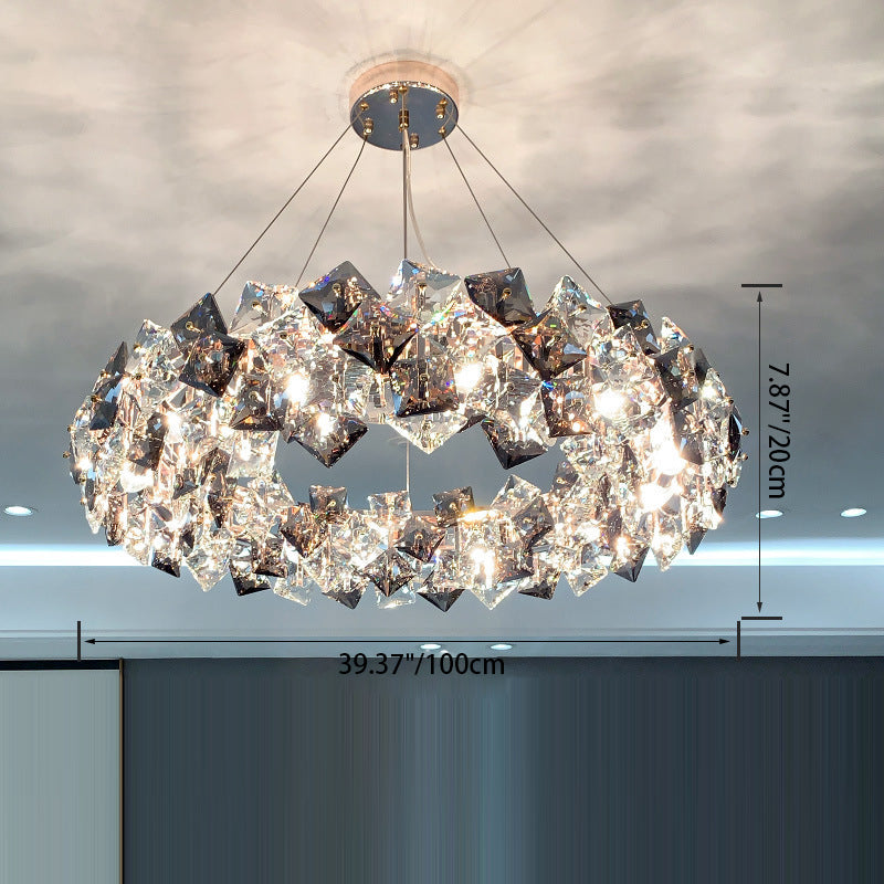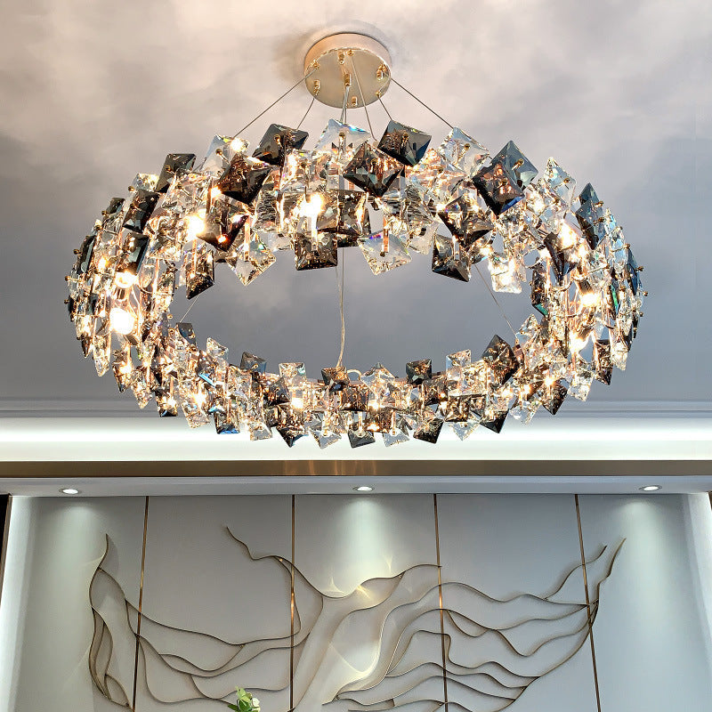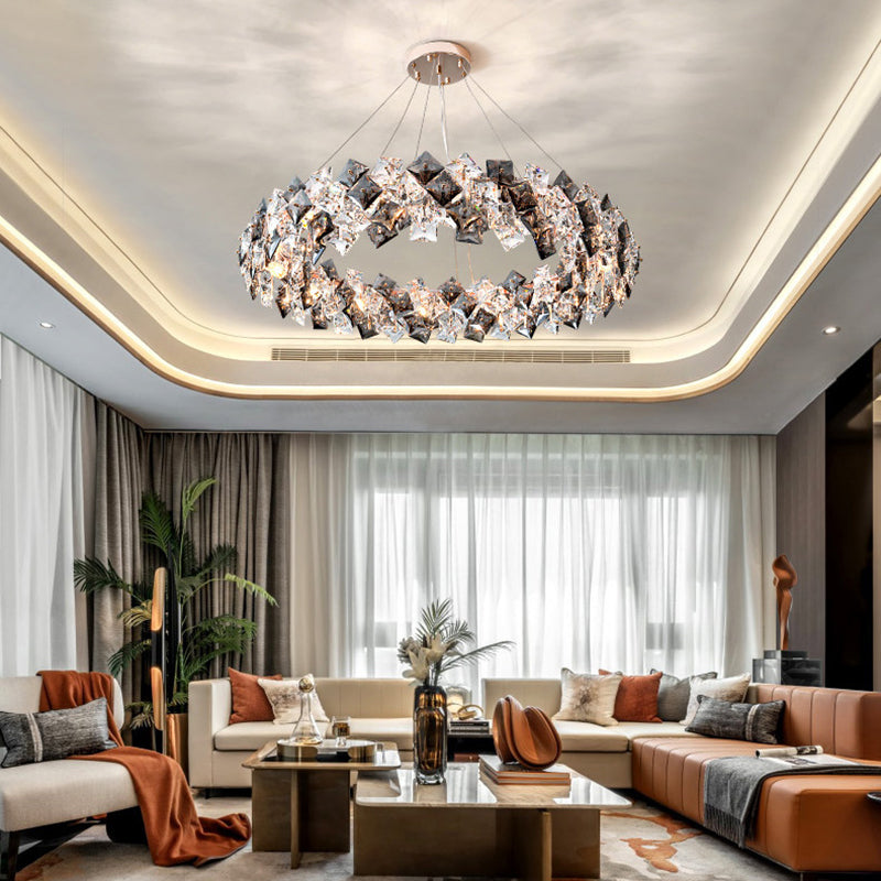 Modern Luxury Crystal Metal Round Rectangular 7/8/12/14 Light Chandeliers For Living Room