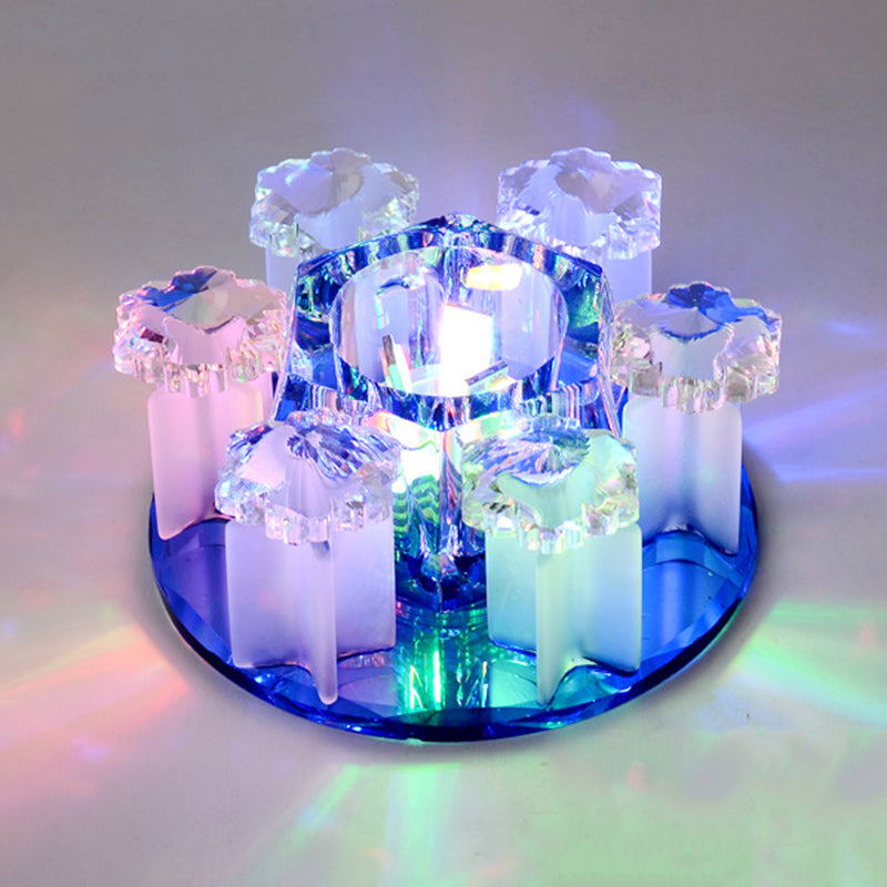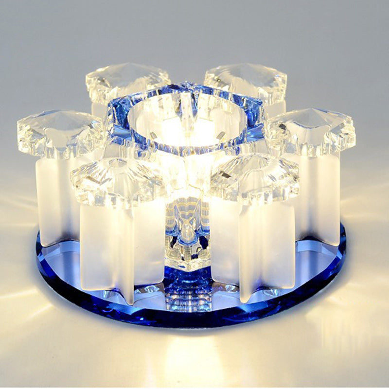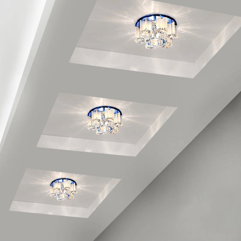 Modern Luxury Crystal Round Flower LED Flush Mount Ceiling Light For Hallway
