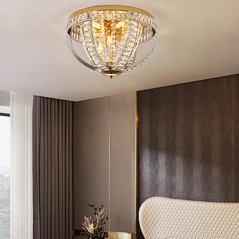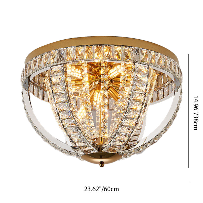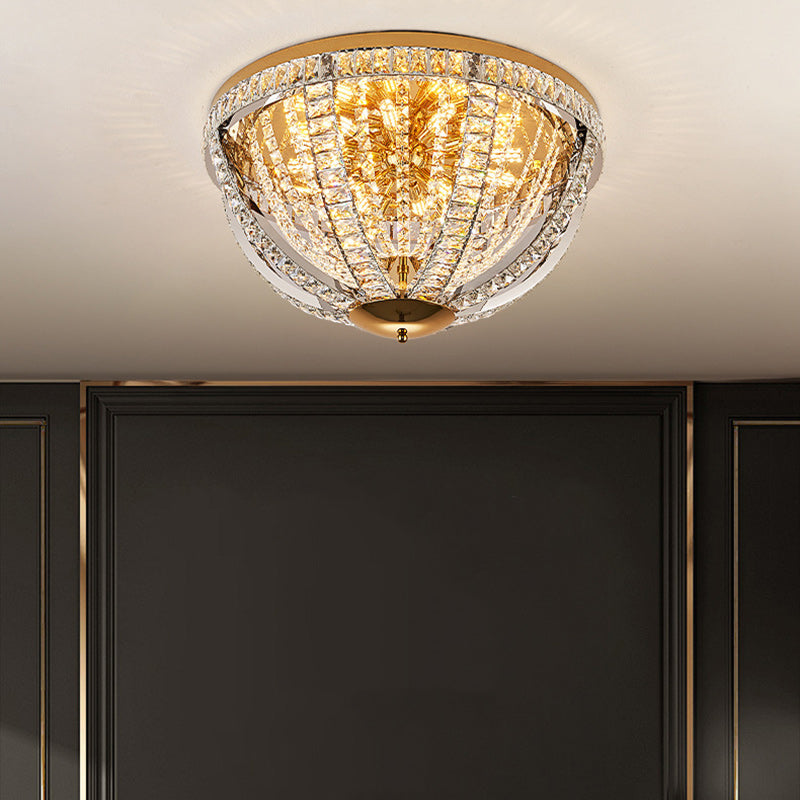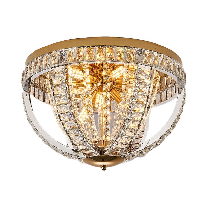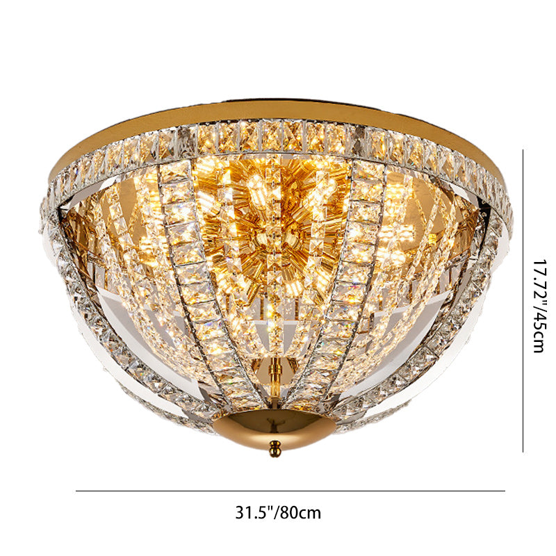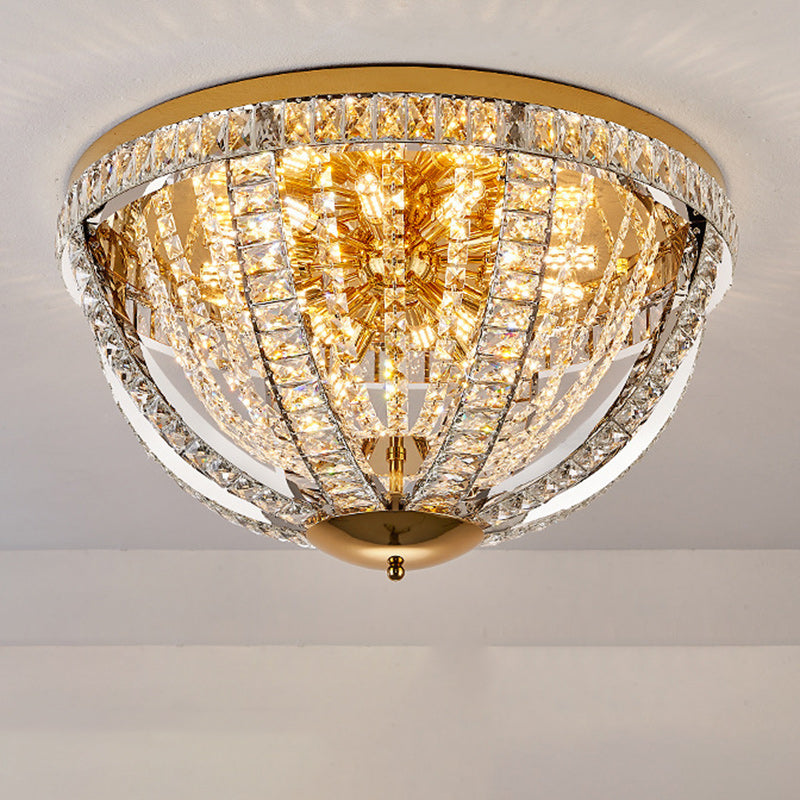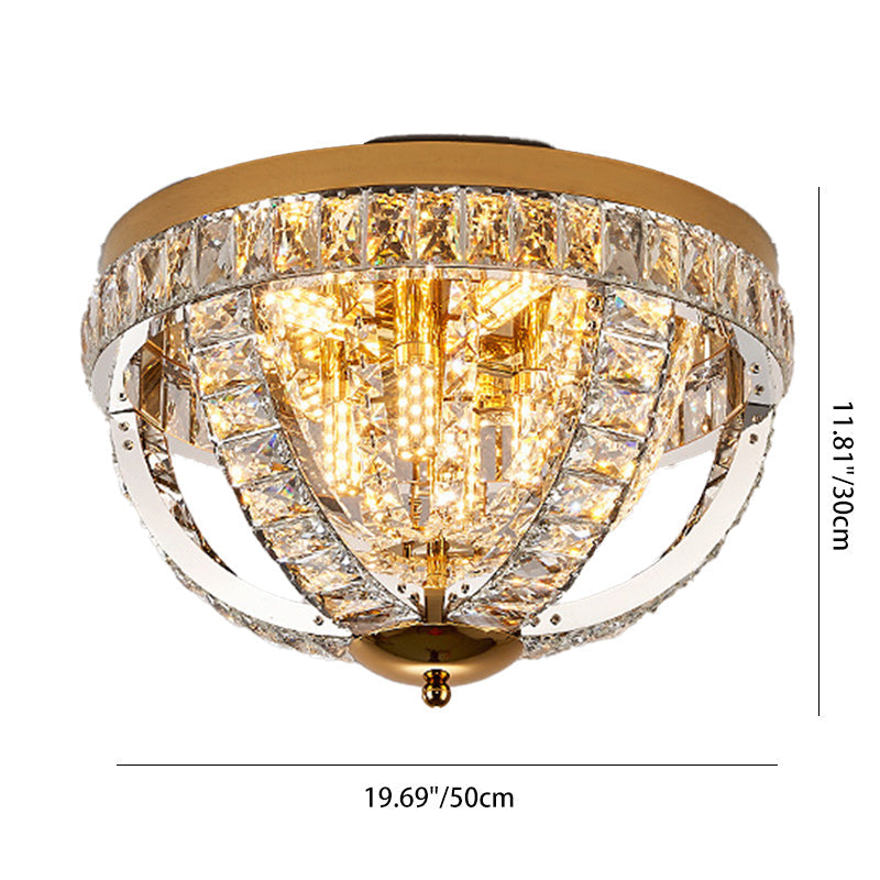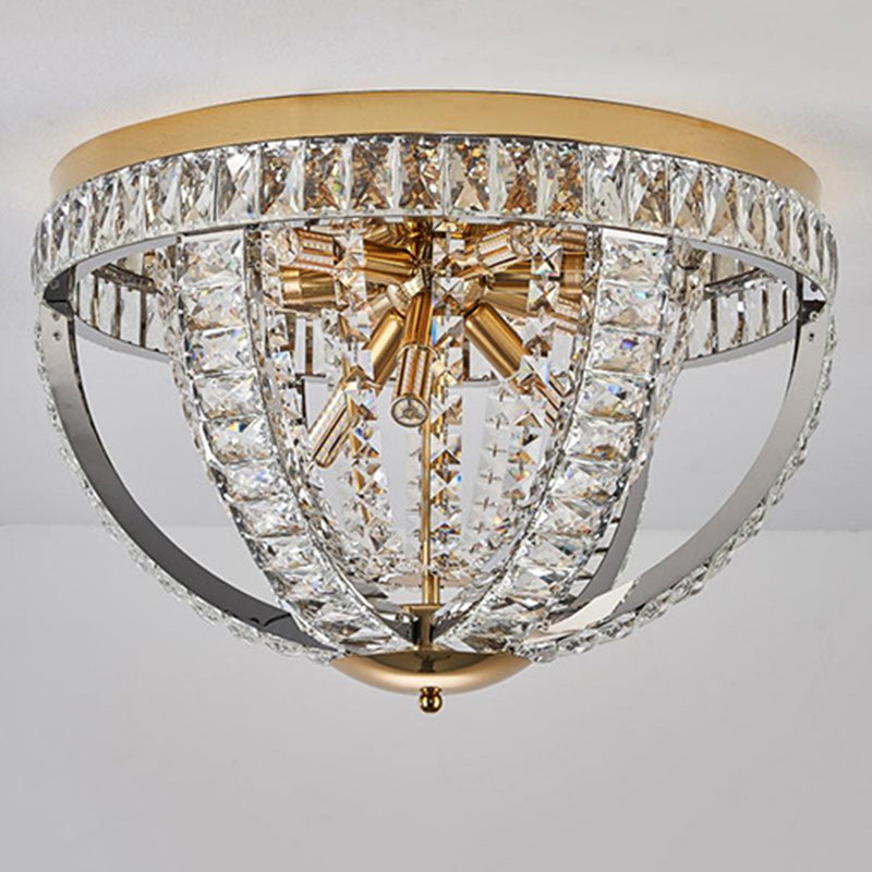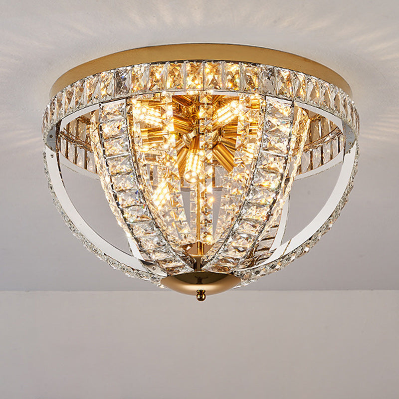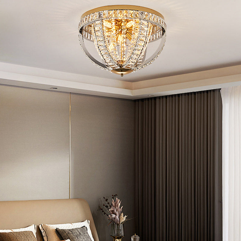 Add elegance to your space with this modern luxury semi-flush mount ceiling light, featuring a round stainless steel frame and dazzling K9 crystal accents. The 8/9/16-light design creates stunning light refraction through diamond-cut crystals, casting brilliant patterns across your living room or bedroom. Finished in glamorous gold, this ceiling fixture blends premium materials with striking visual impact—perfect for upscale interiors.