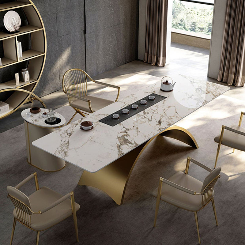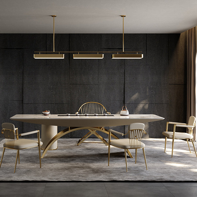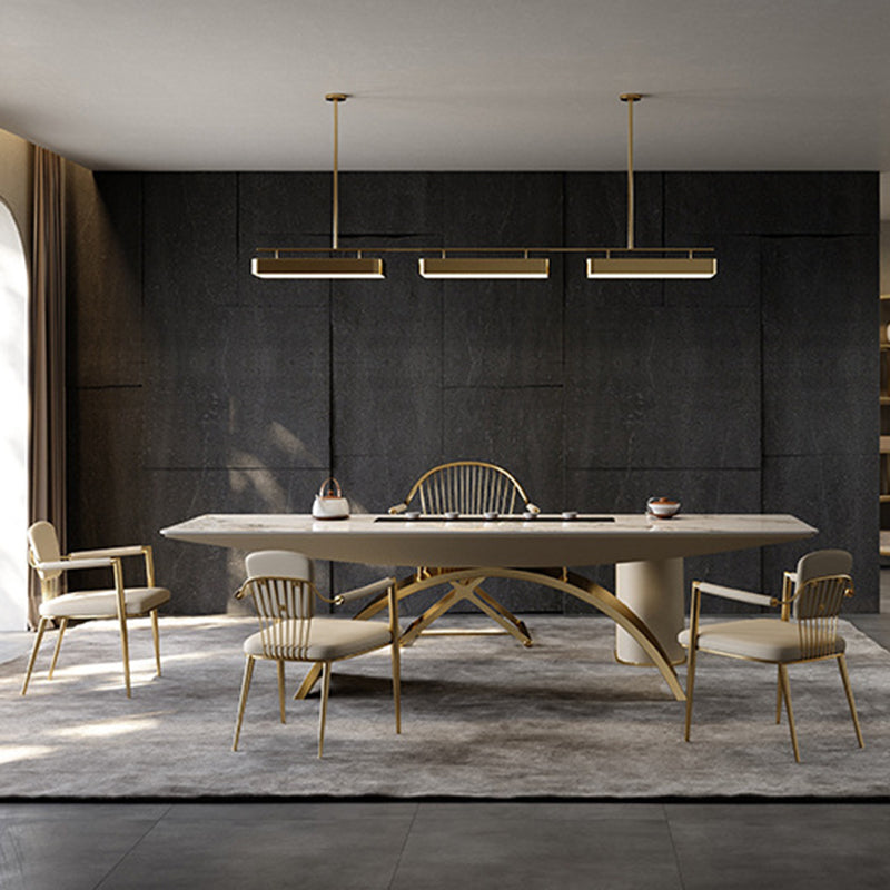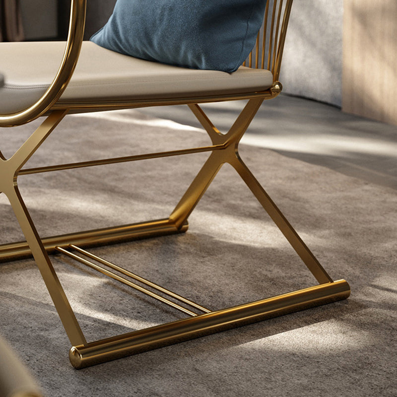 Modern Luxury Curved Frame Microfiber Leather Metal Dining Chair Backrest Armrest For Dining Room