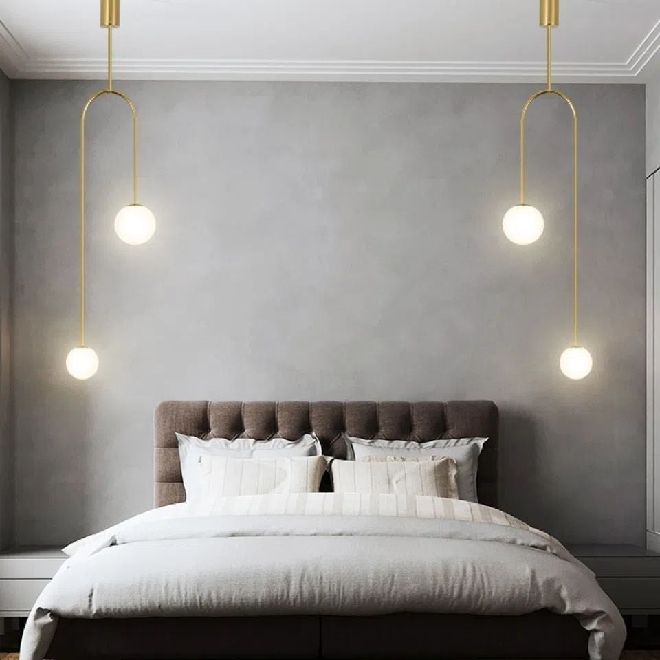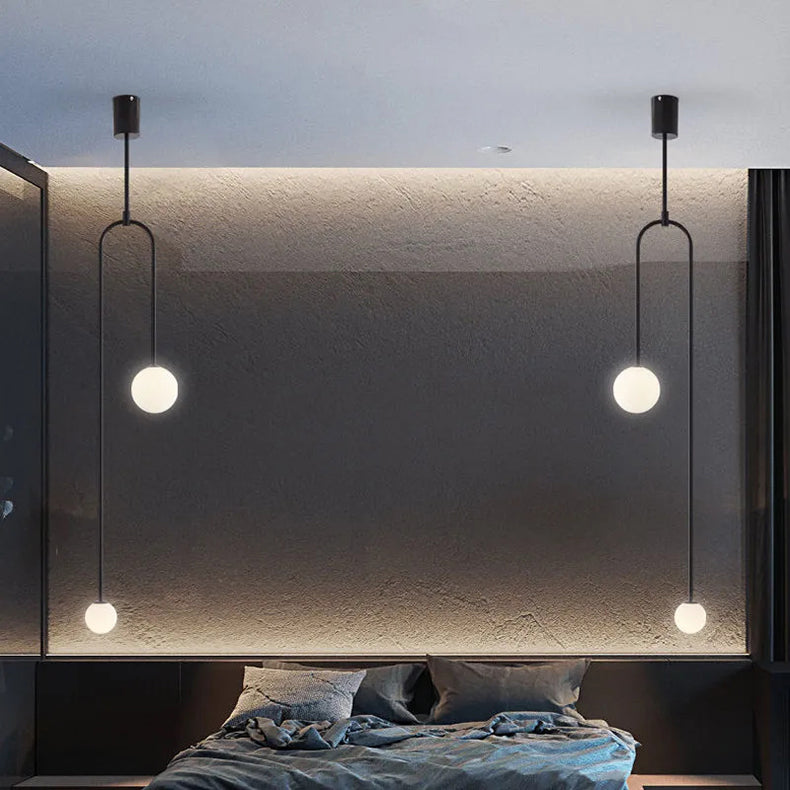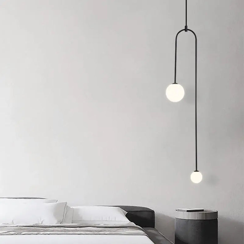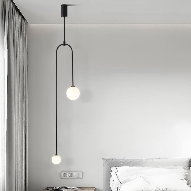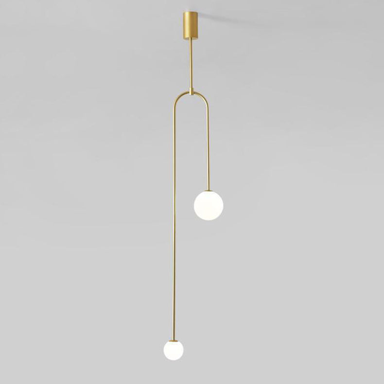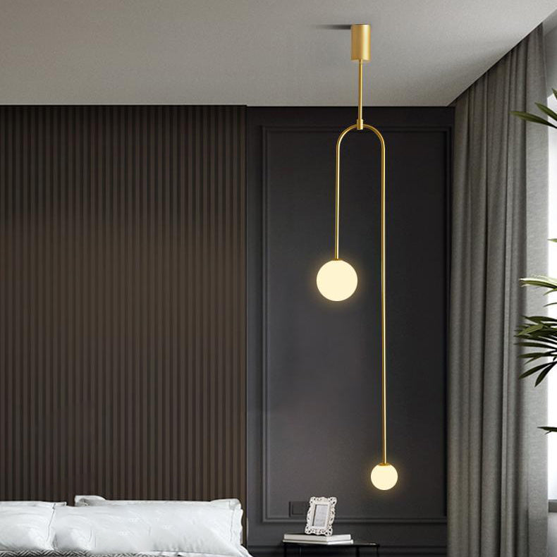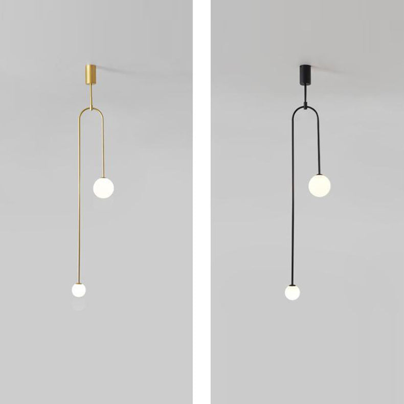Modern Luxury Curved Iron Glass Ball Shade 2-Light Chandelier For Living Room