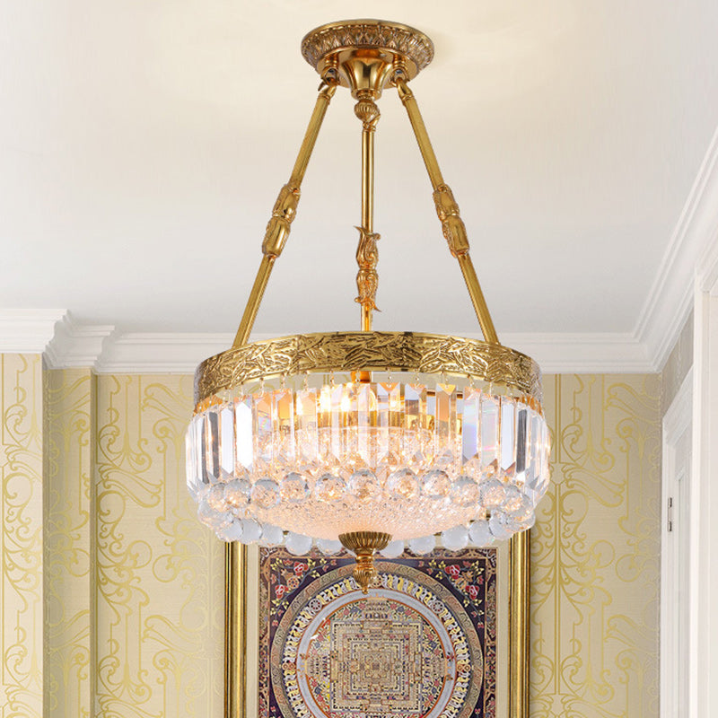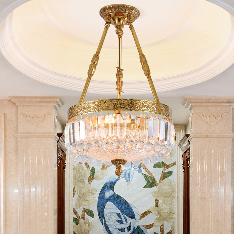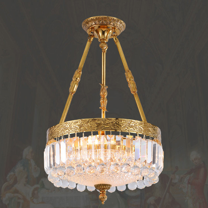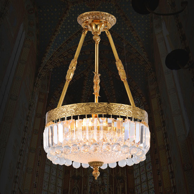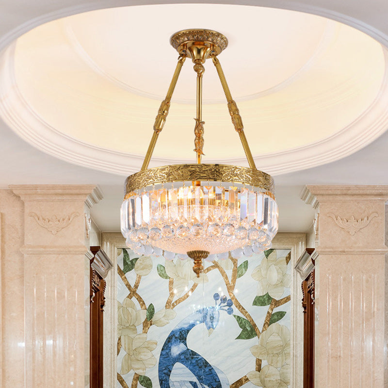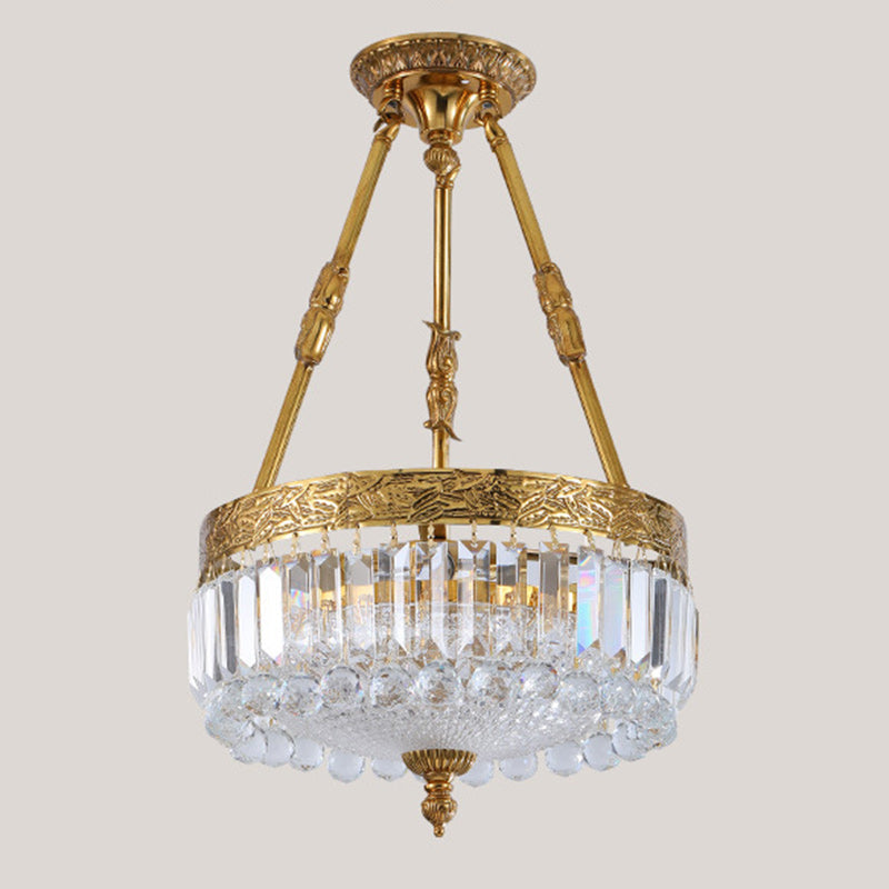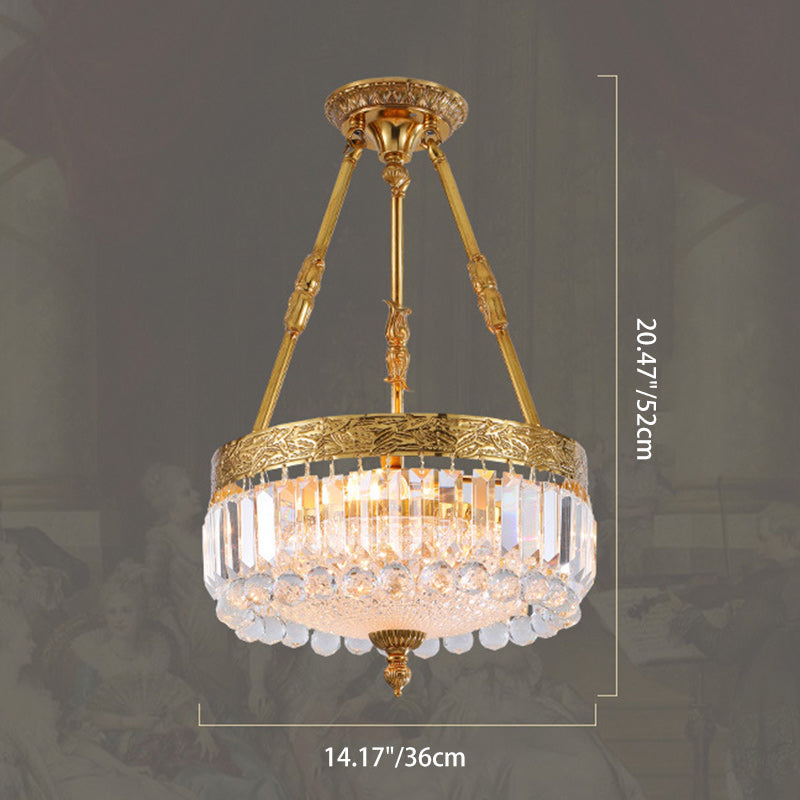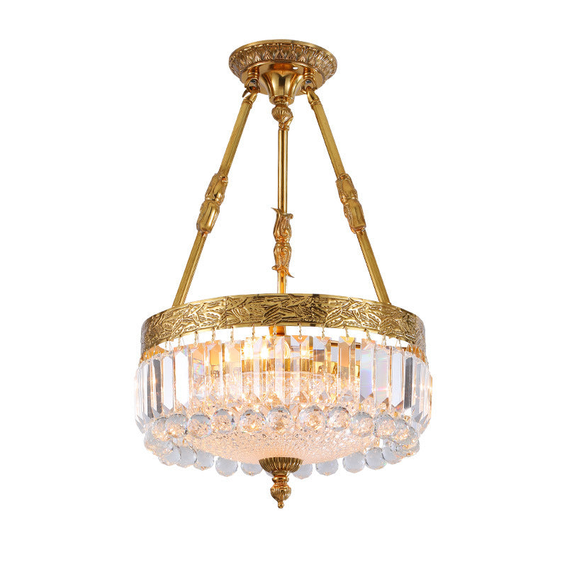 Modern Luxury Cylinder Copper Crystal 3-Light Chandelier For Living Room