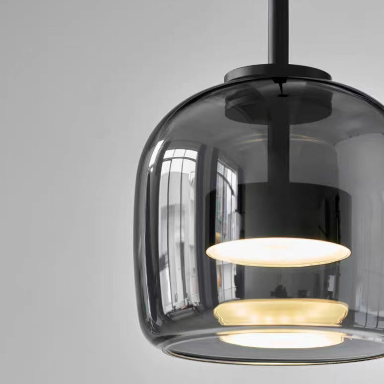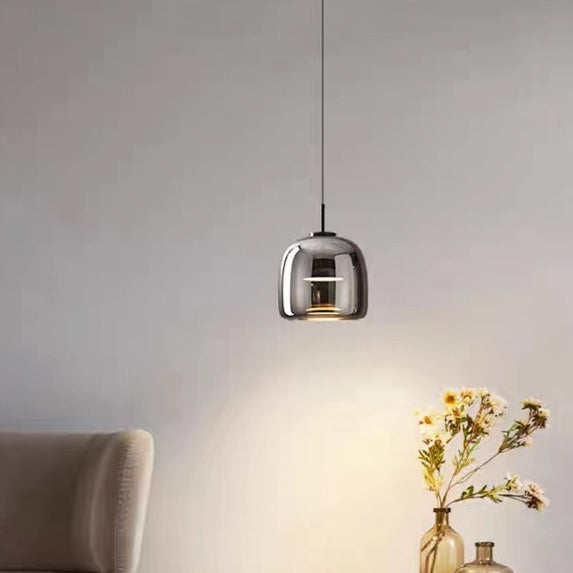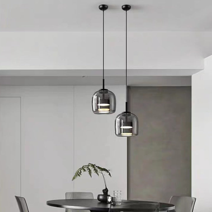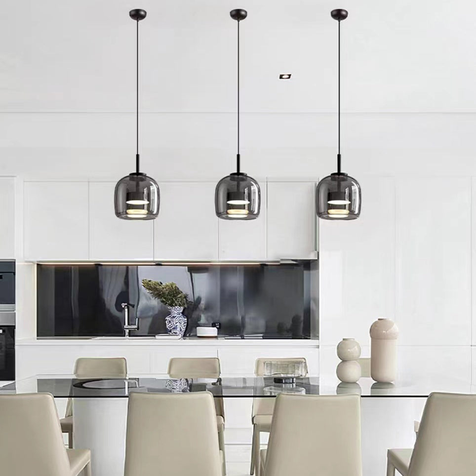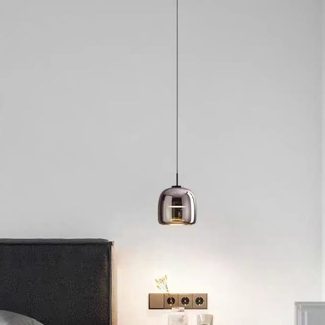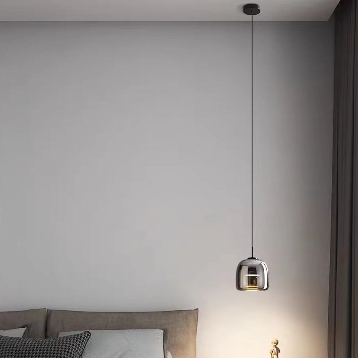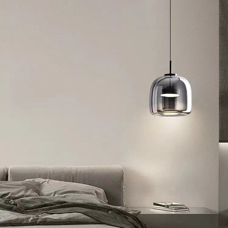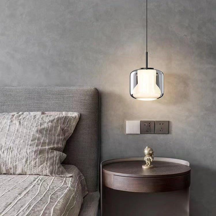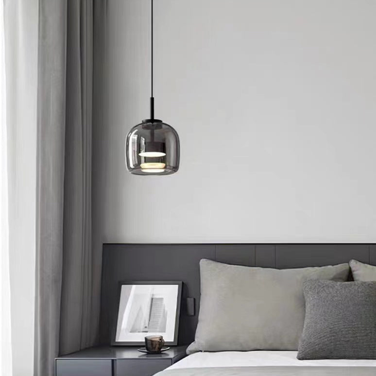 Modern Luxury Cylinder High Transparency Glass Iron LED Pendant Light For Bedroom