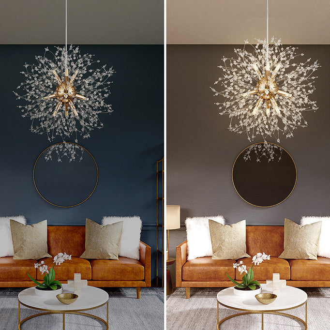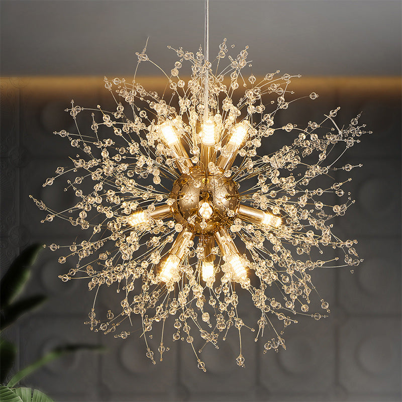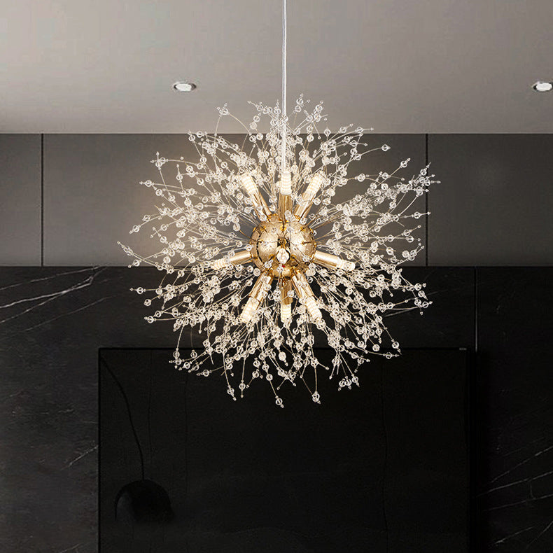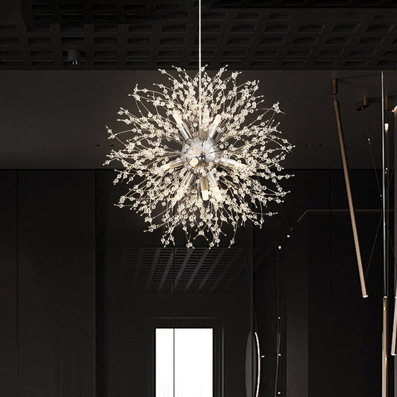 Modern Luxury Dandelion Branch Round Crystal Stainless Steel 9-Lights Chandelier For Living Room