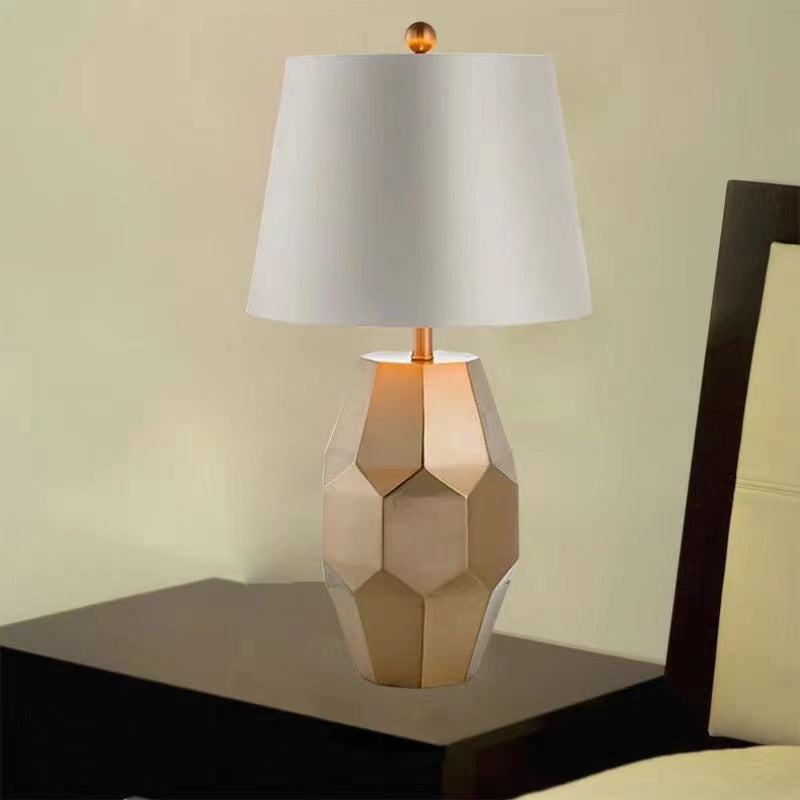 Modern Luxury Diamond Round Scalloped Linen Metal 1-Light Table Lamp For Living Room