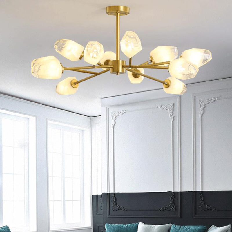 Modern Luxury Diamond Shape Copper Glass 6/9/12/15/18 Light Chandelier For Living Room