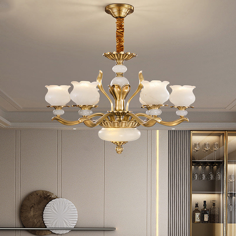 Modern Luxury Floral Round Branch Marble Brass 6/8/10 Light Chandeliers For Living Room