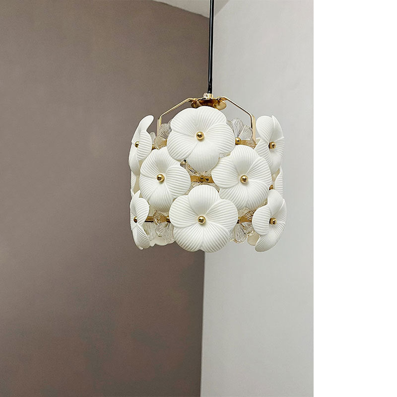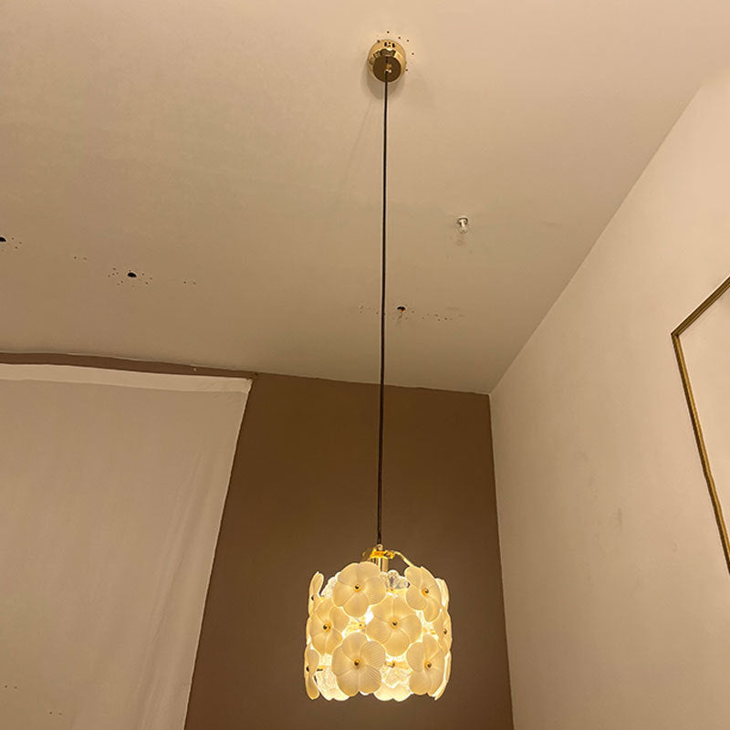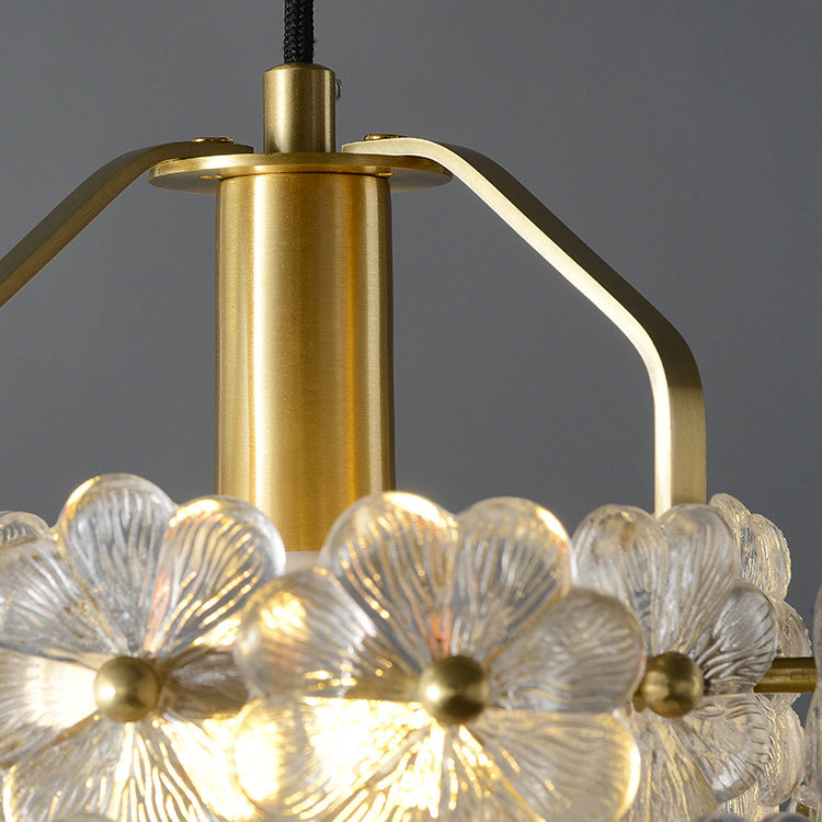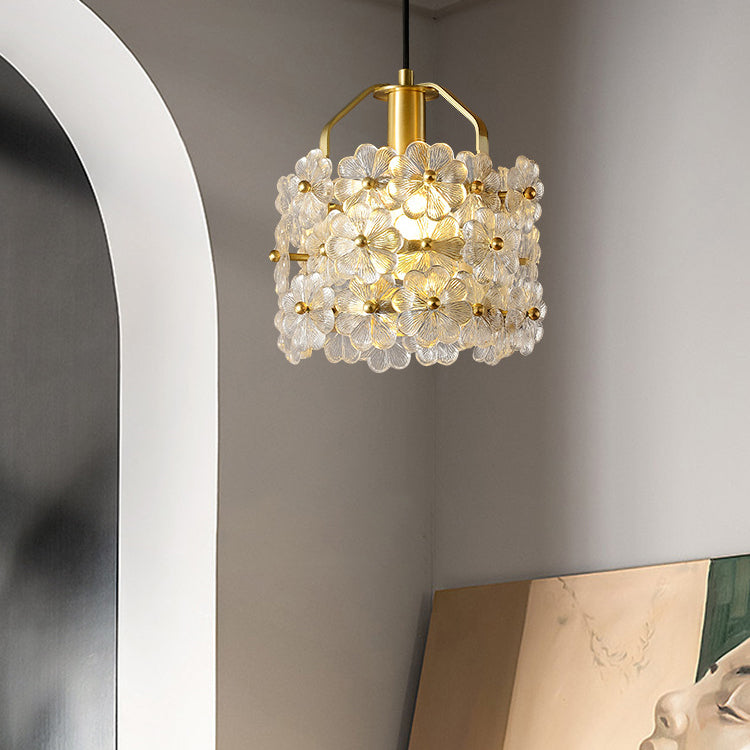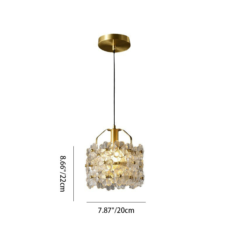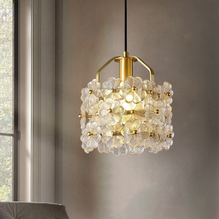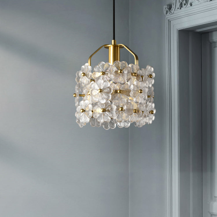 Modern Luxury Flower Copper Crystal 1-Light Pendant Light For Bedroom