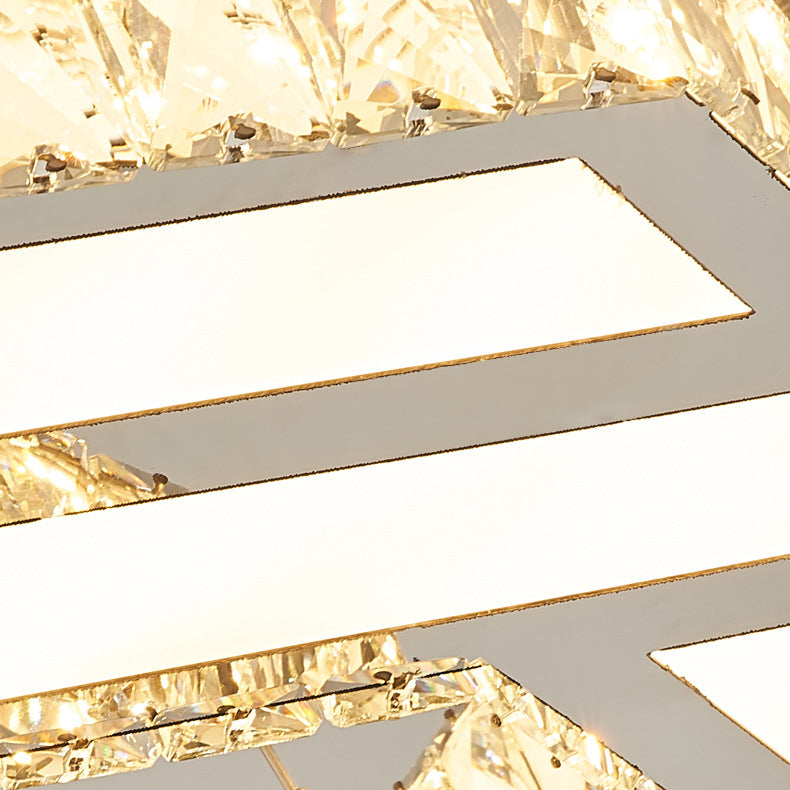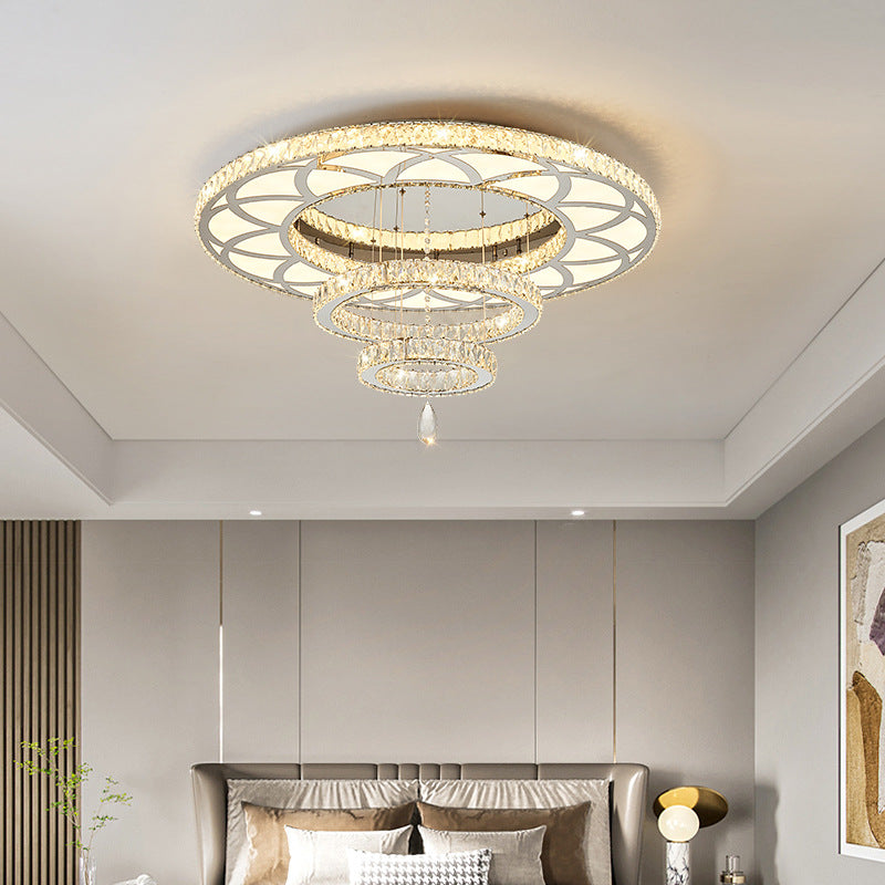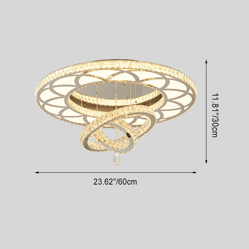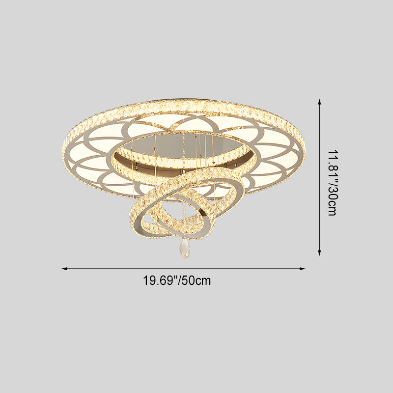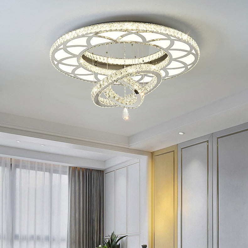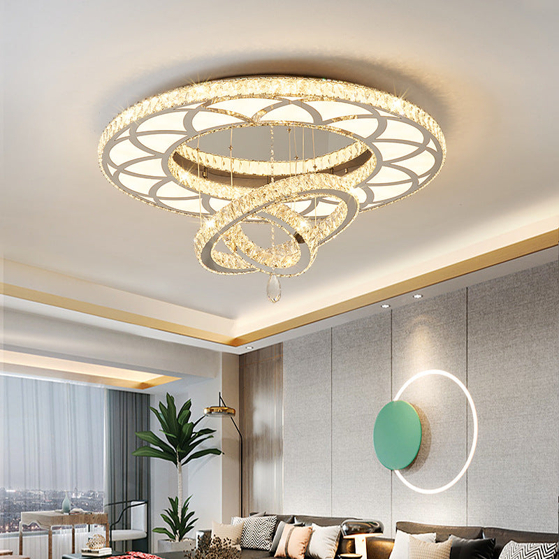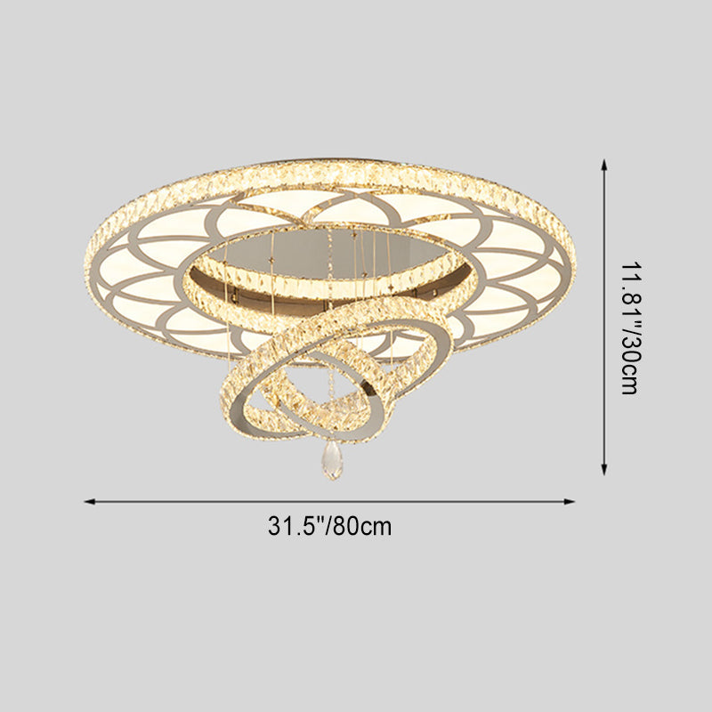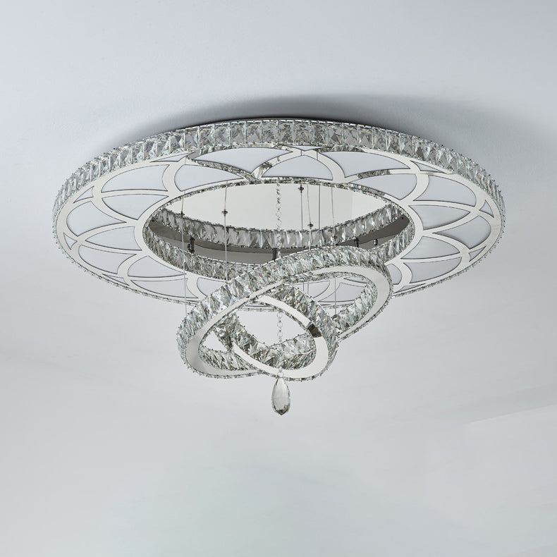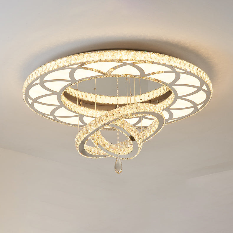 Modern Luxury Flower Pattern Round Stainless Steel Crystal LED Flush Mount Ceiling Light For Living Room