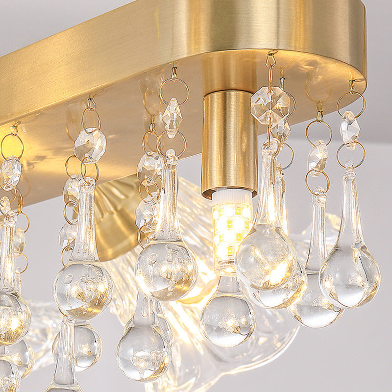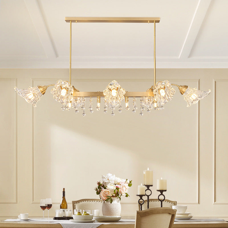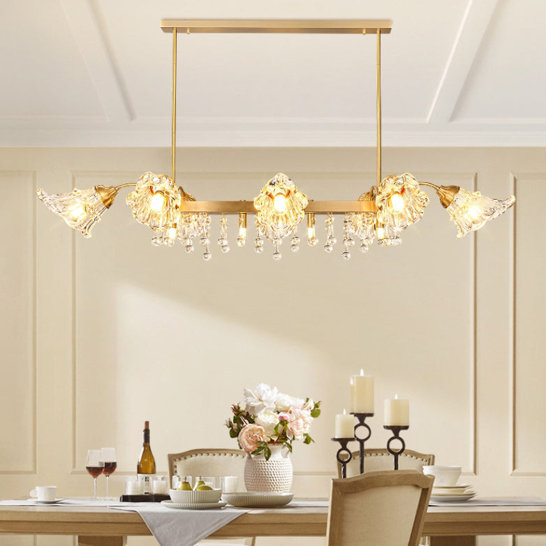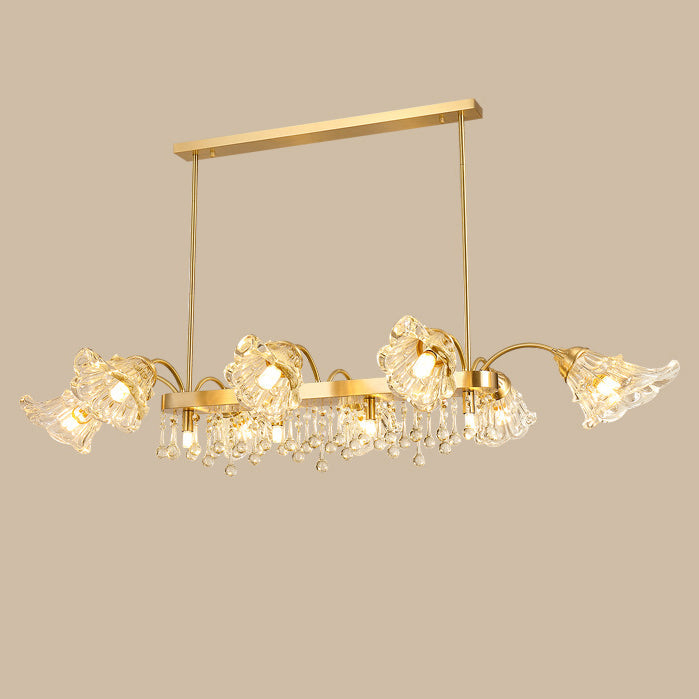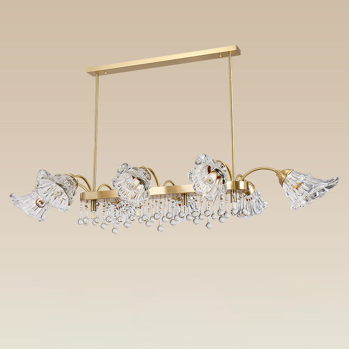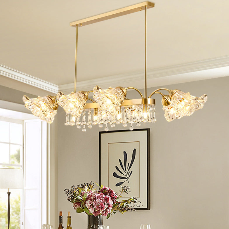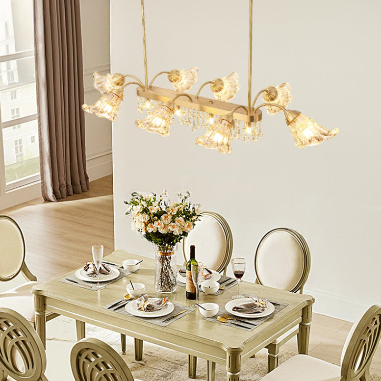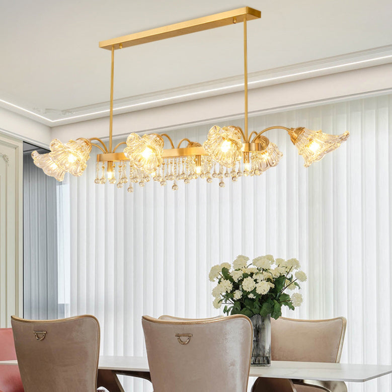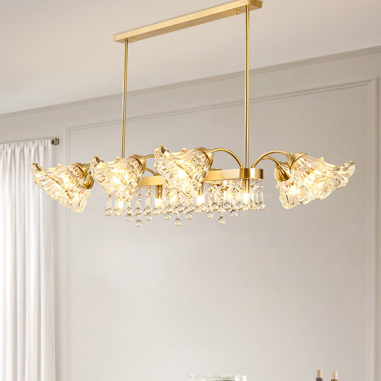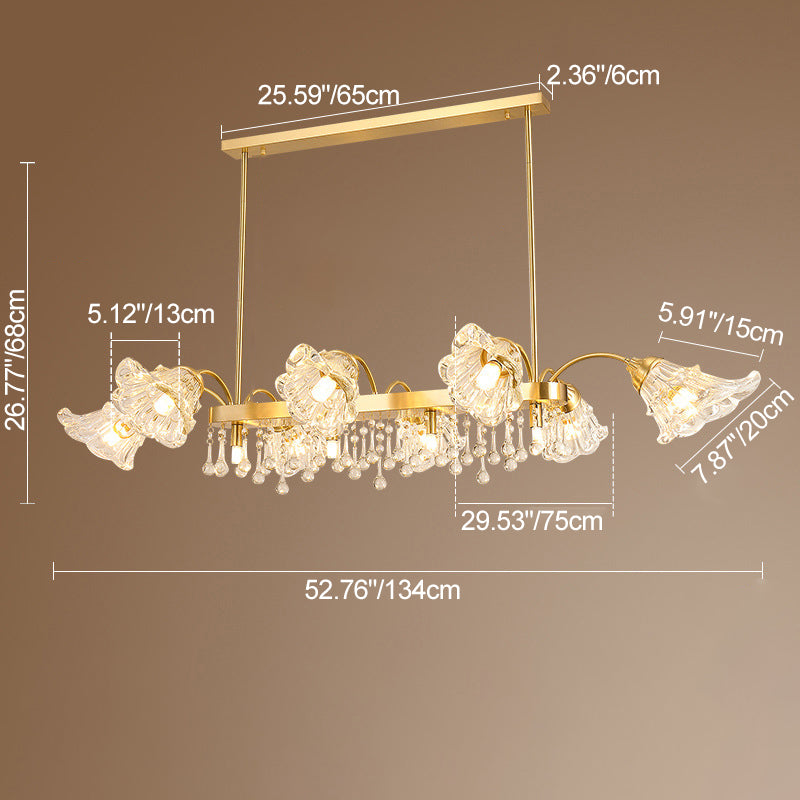 Modern Luxury Flower Shape Linear Rectangle Copper Glass 12-Light Island Light Chandelier For Dining Room