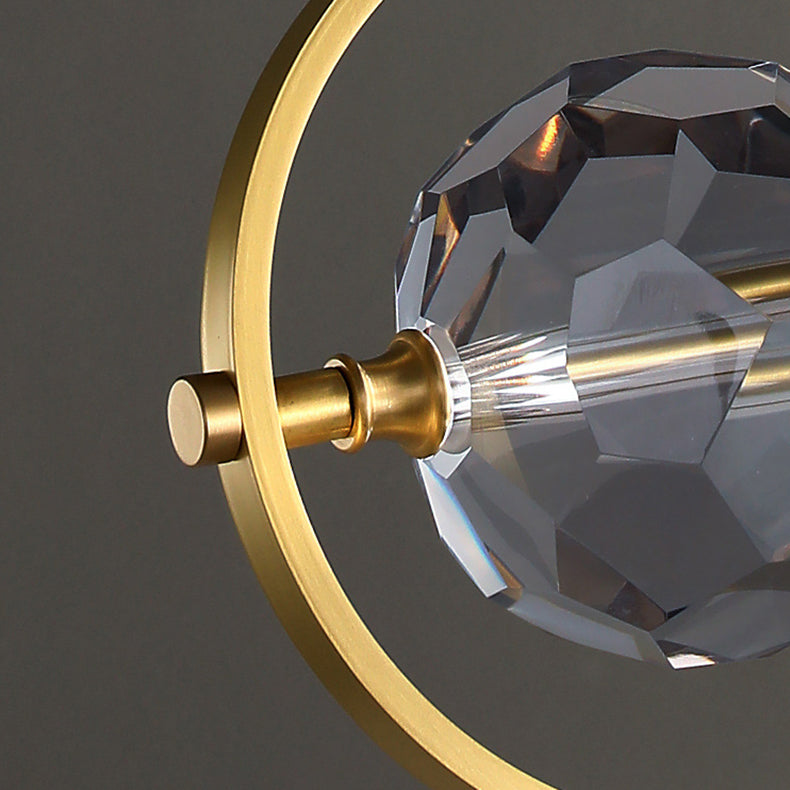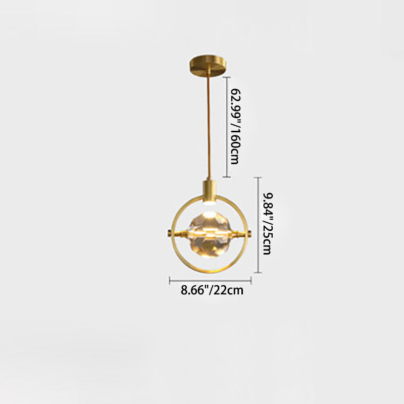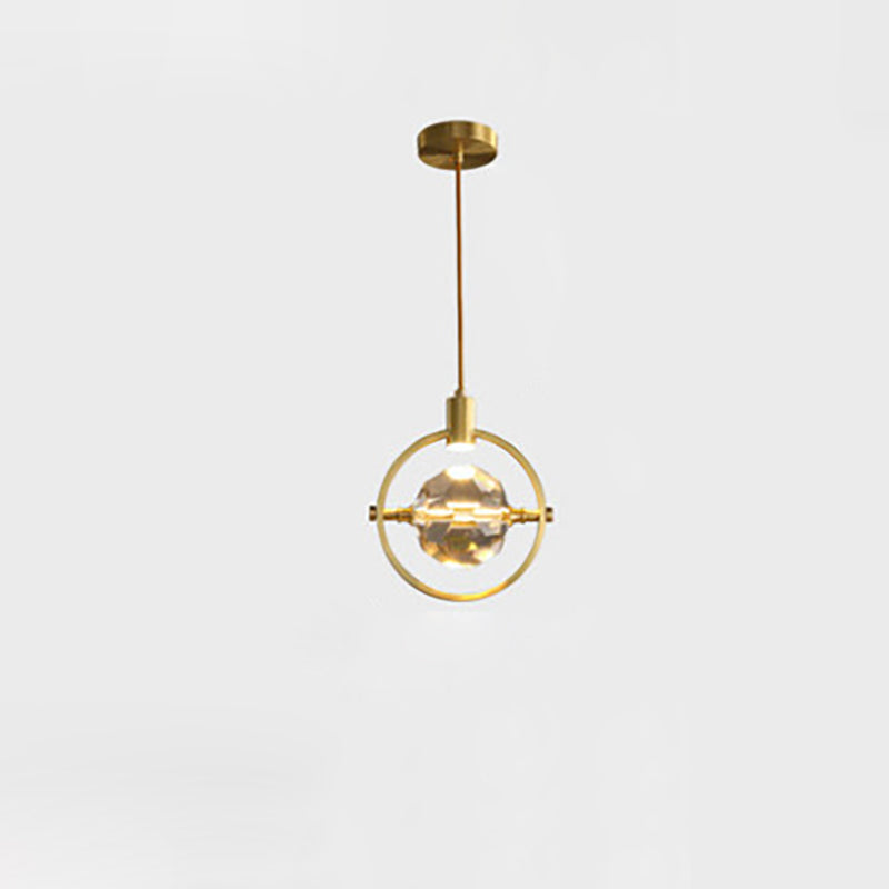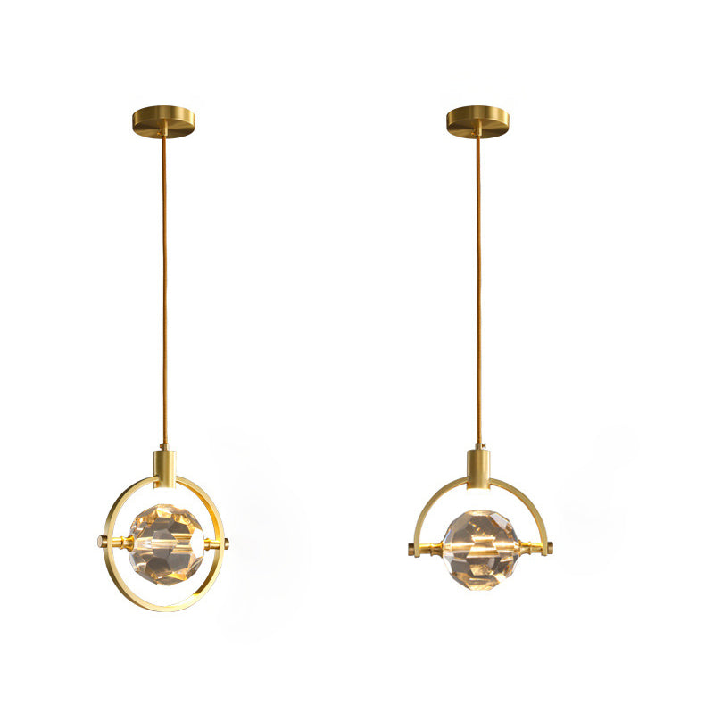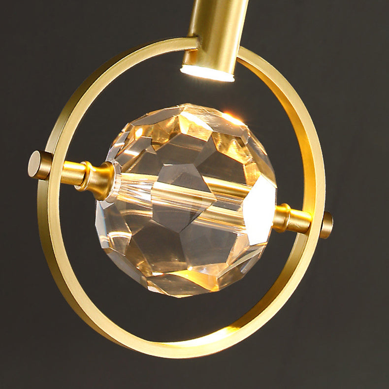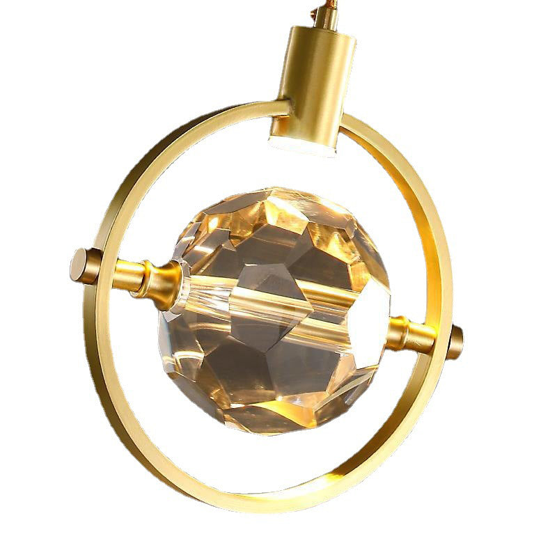 Modern Luxury Full Copper Circle Ring Crystal Ball LED Pendant Light For Living Room