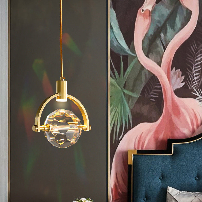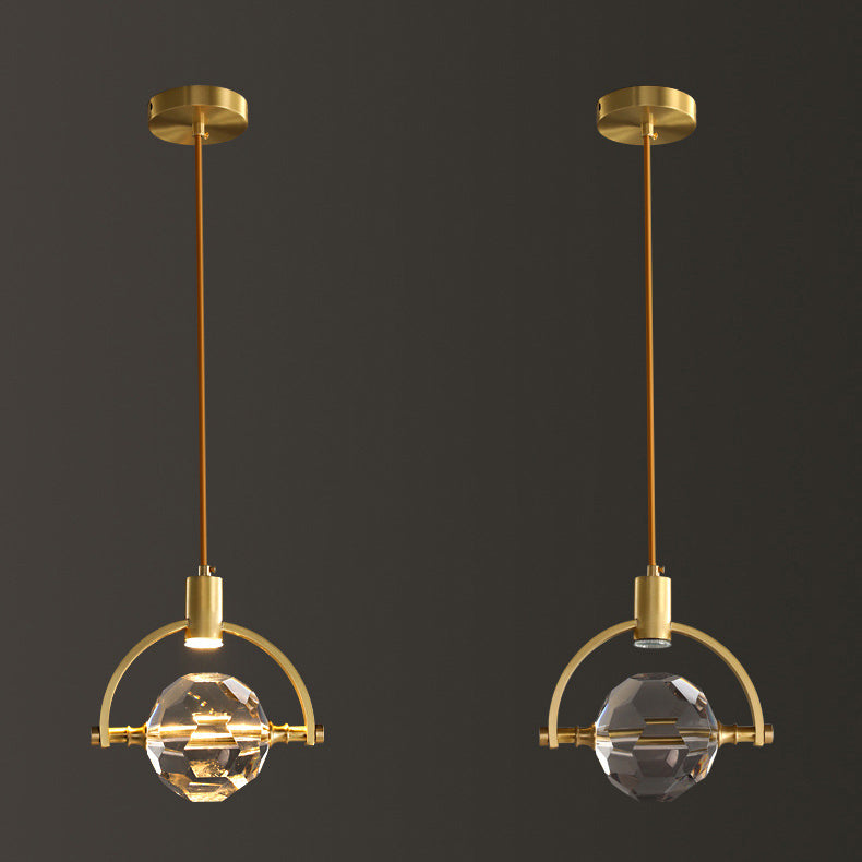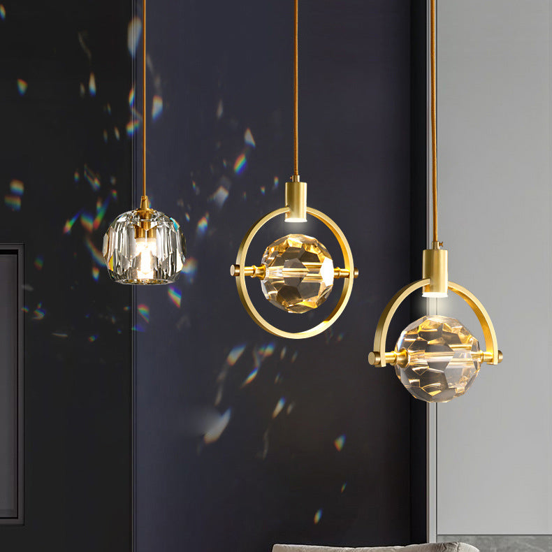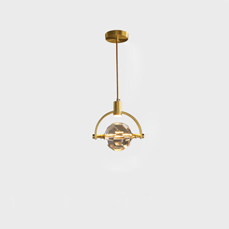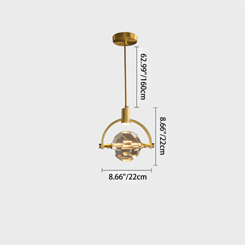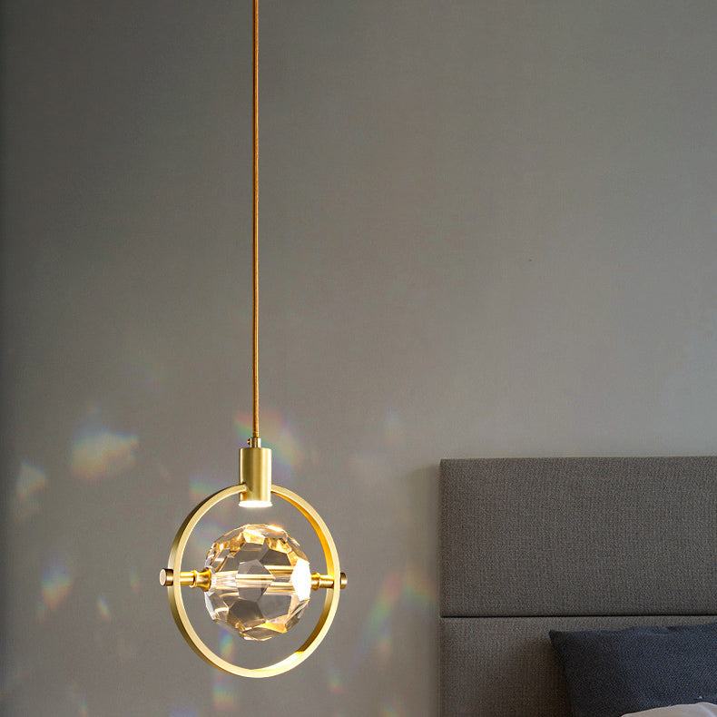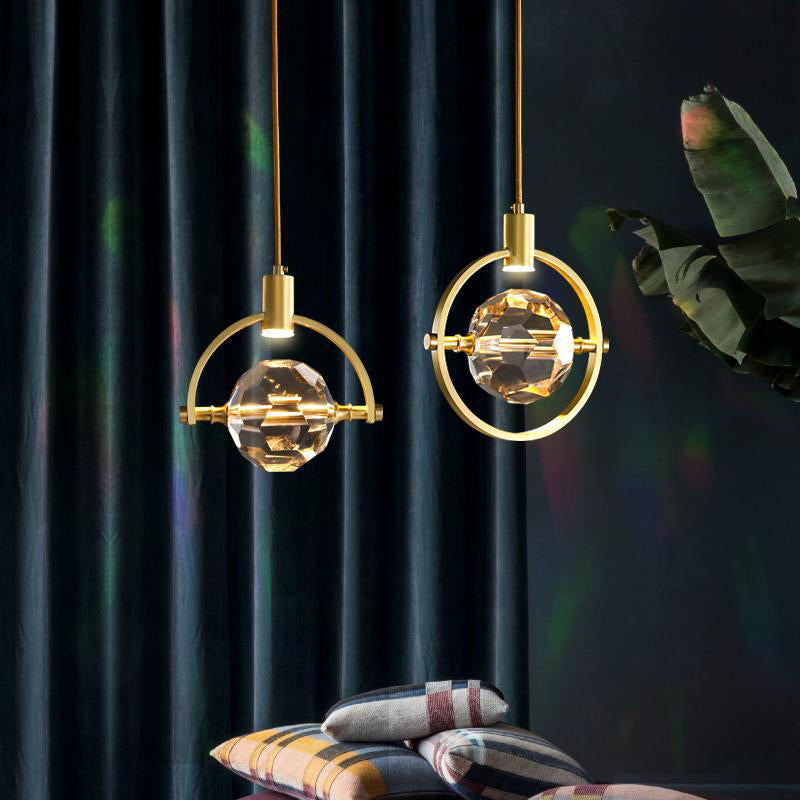 Modern Luxury Full Copper Circle Ring Crystal Ball LED Pendant Light For Living Room