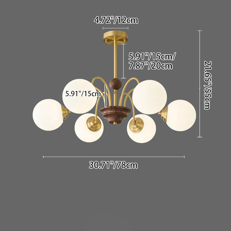 Modern Luxury Glass Copper Round 5/6/8 Light Chandelier For Living Room