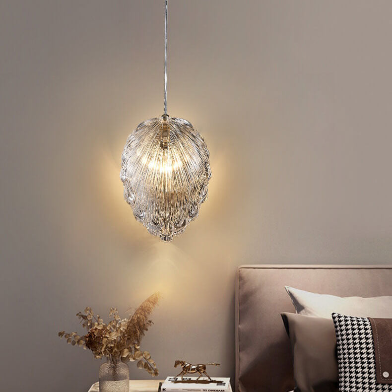 Modern Luxury Glass Shell Shape 1-Light Pendant Light For Bedroom