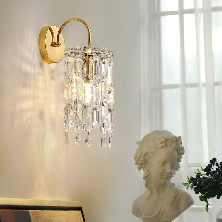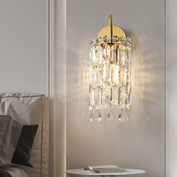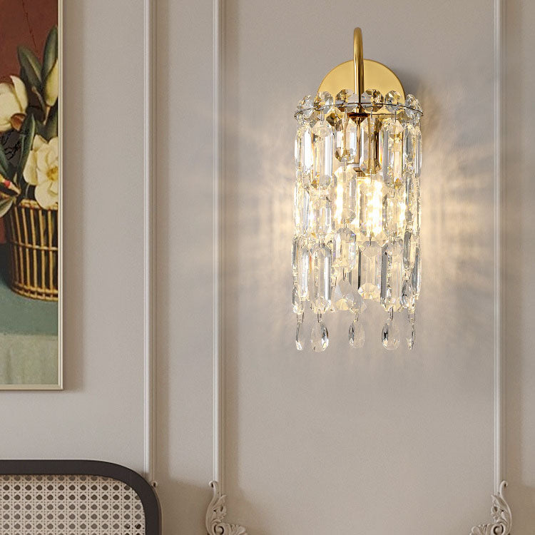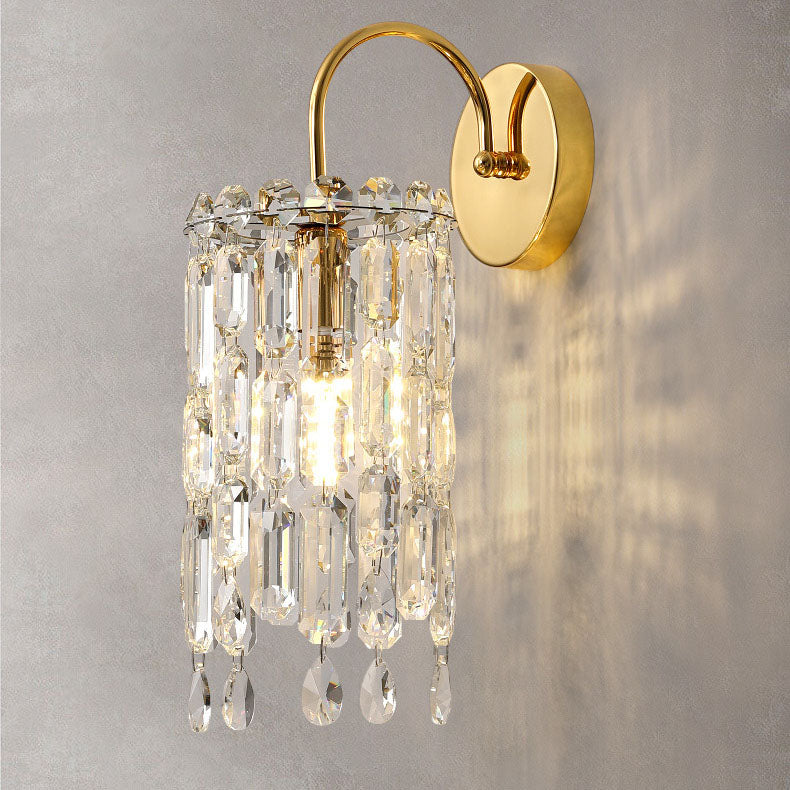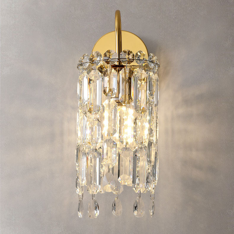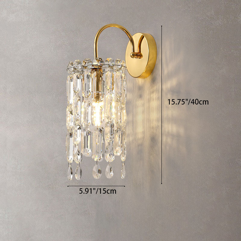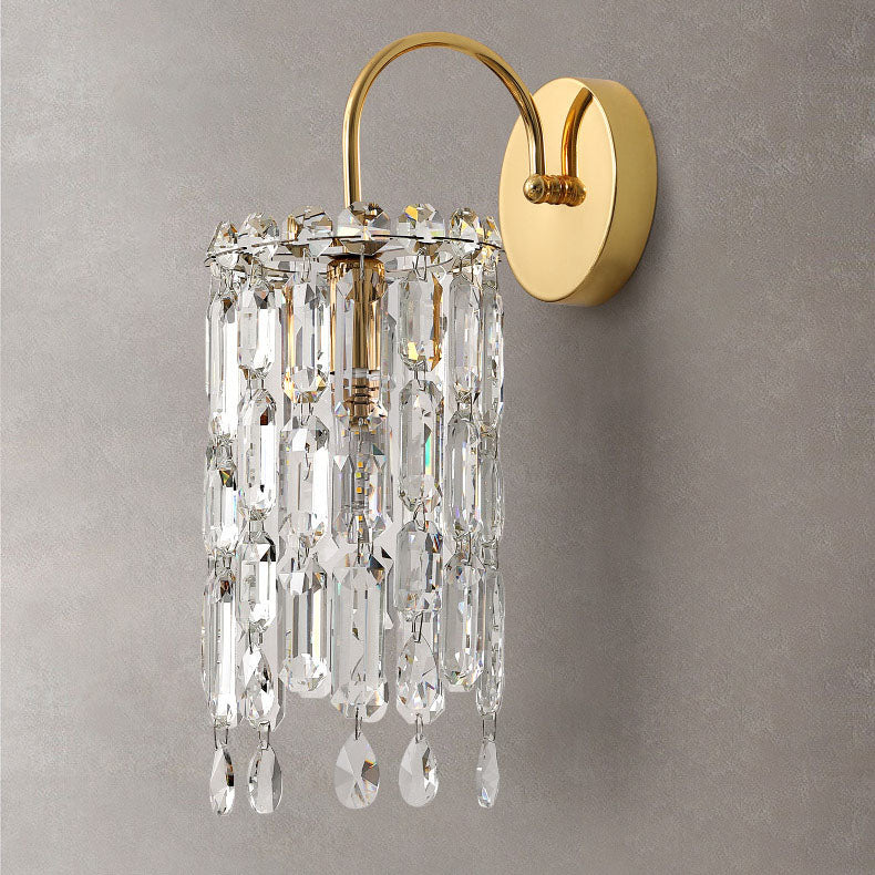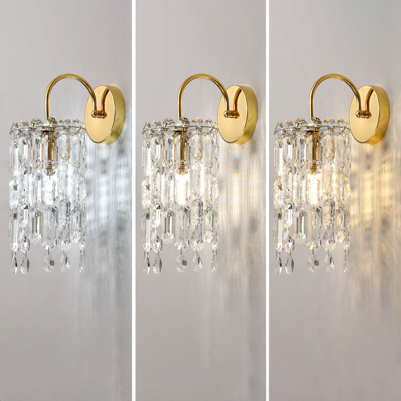 Modern Luxury Gold Finish Frame Dazzling Prismatic Crystal 1-Light Wall Sconce Lamp For Living Room