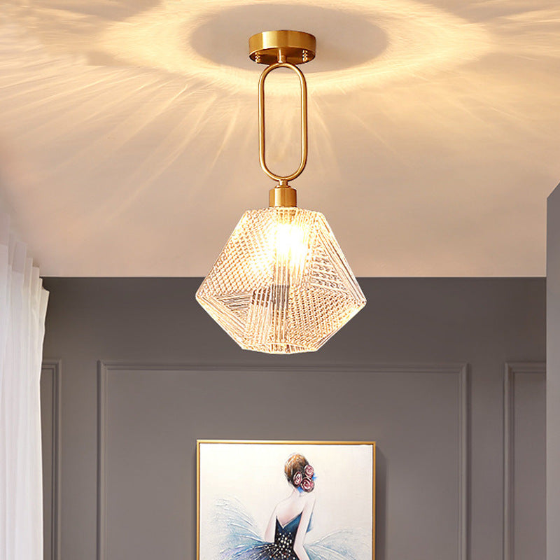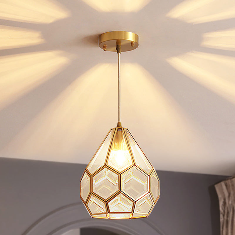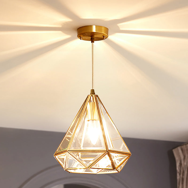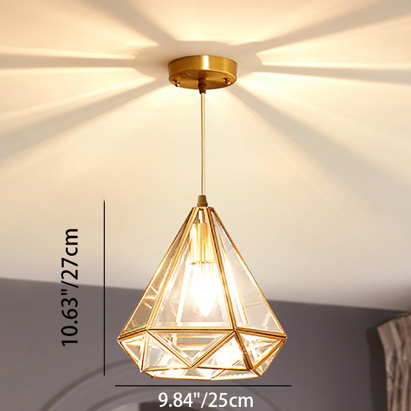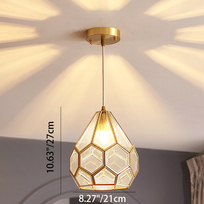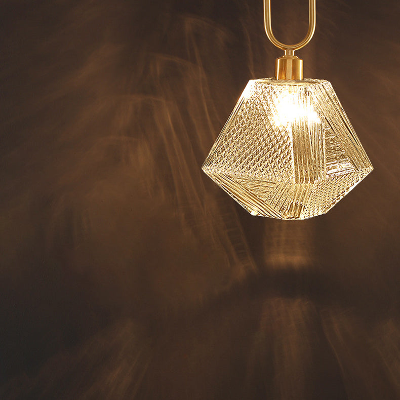 Modern Luxury Gold Finish Frame Geometric Glass Shade 1-Light Pendant Light For Bedroom
