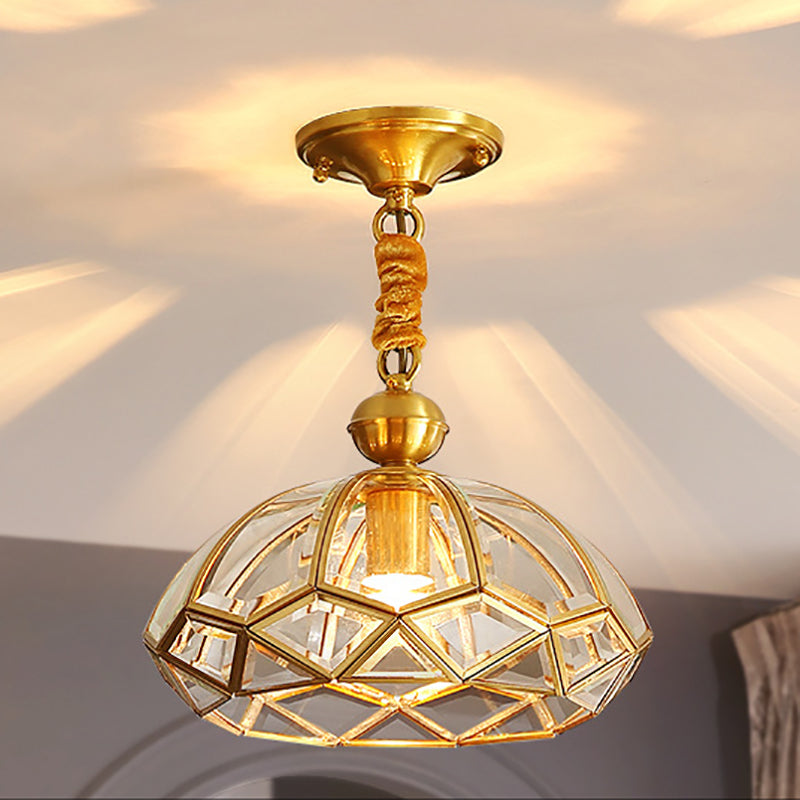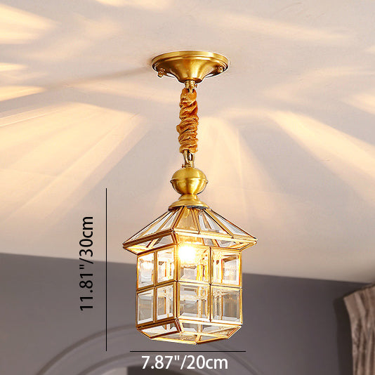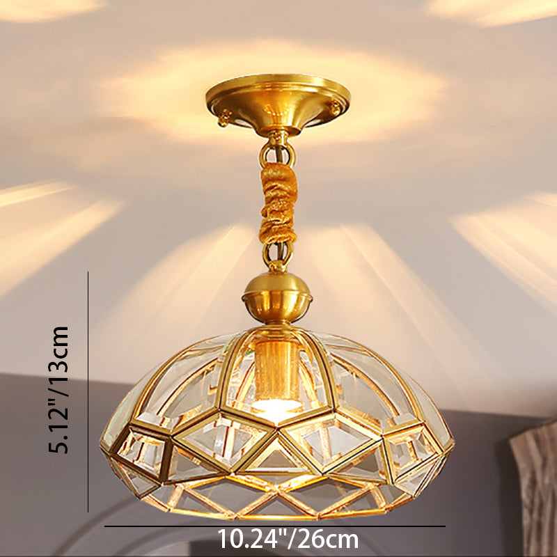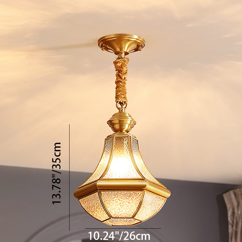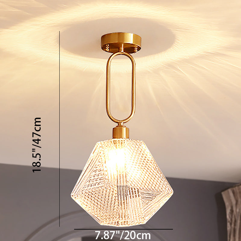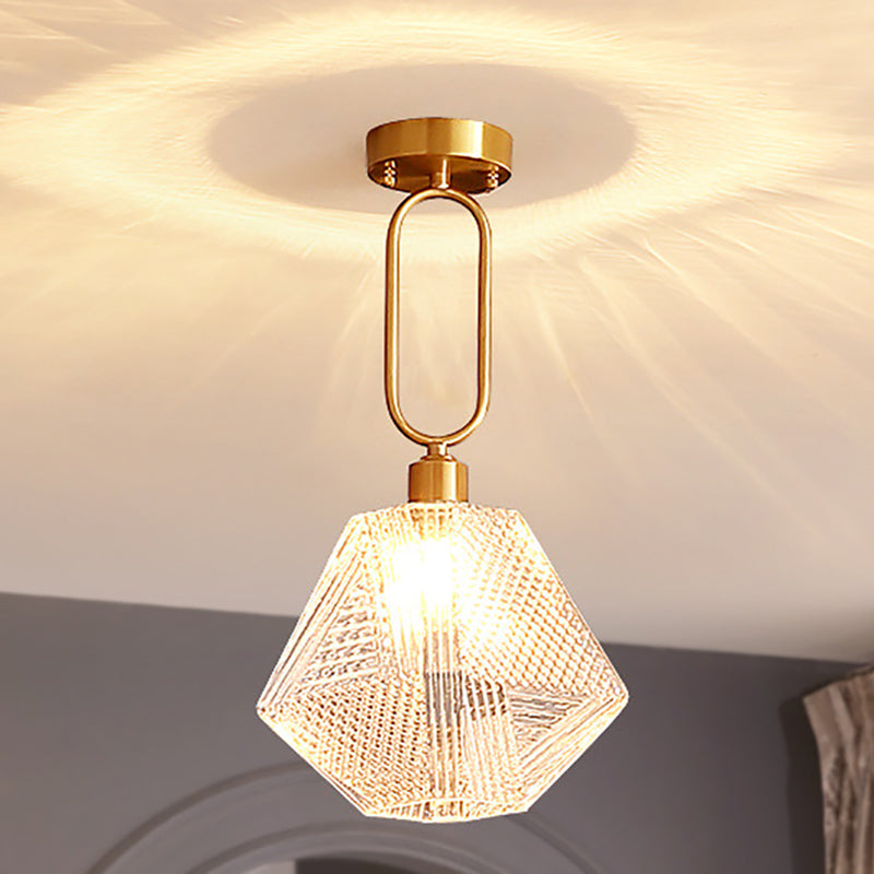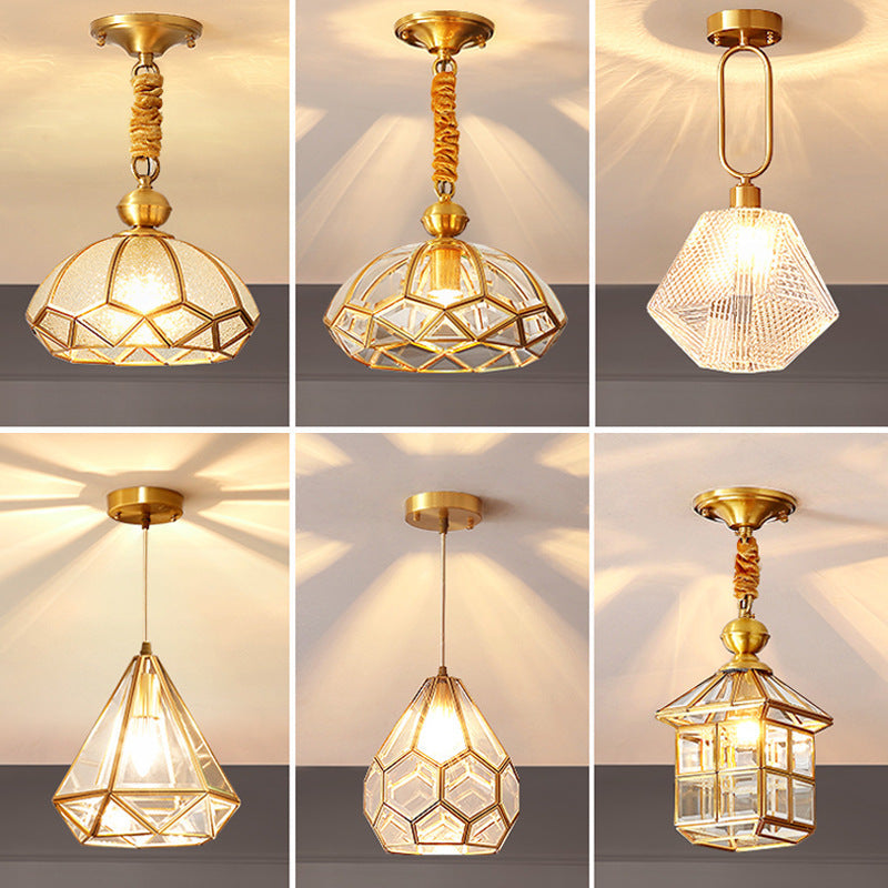 Modern Luxury Gold Finish Frame Geometric Glass Shade 1-Light Pendant Light For Bedroom