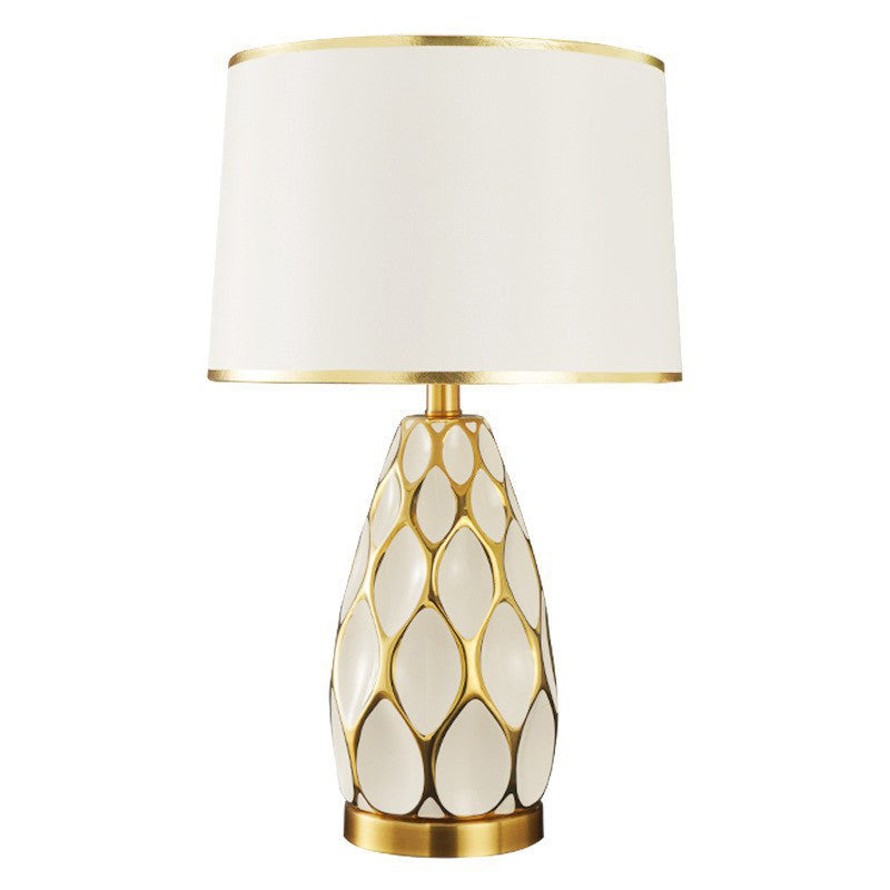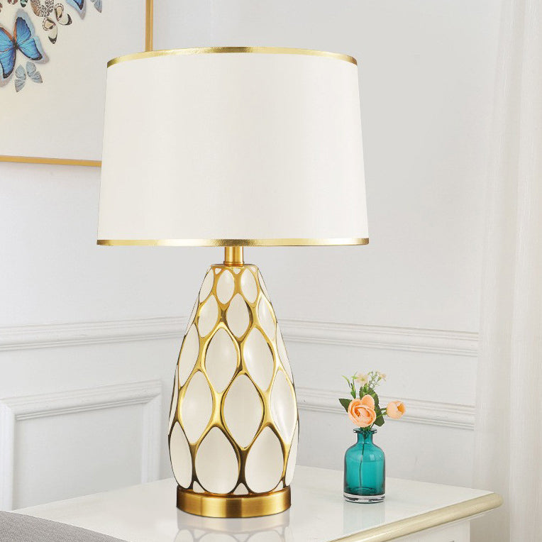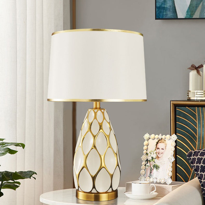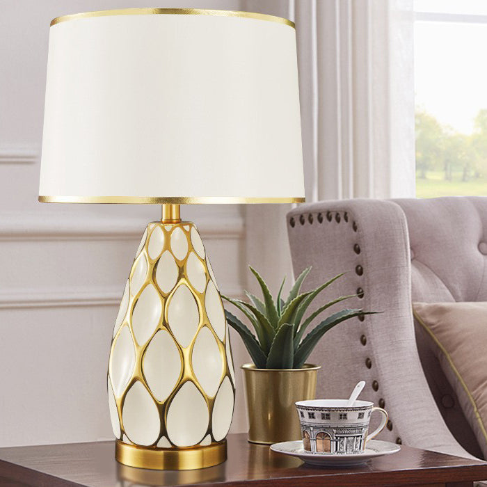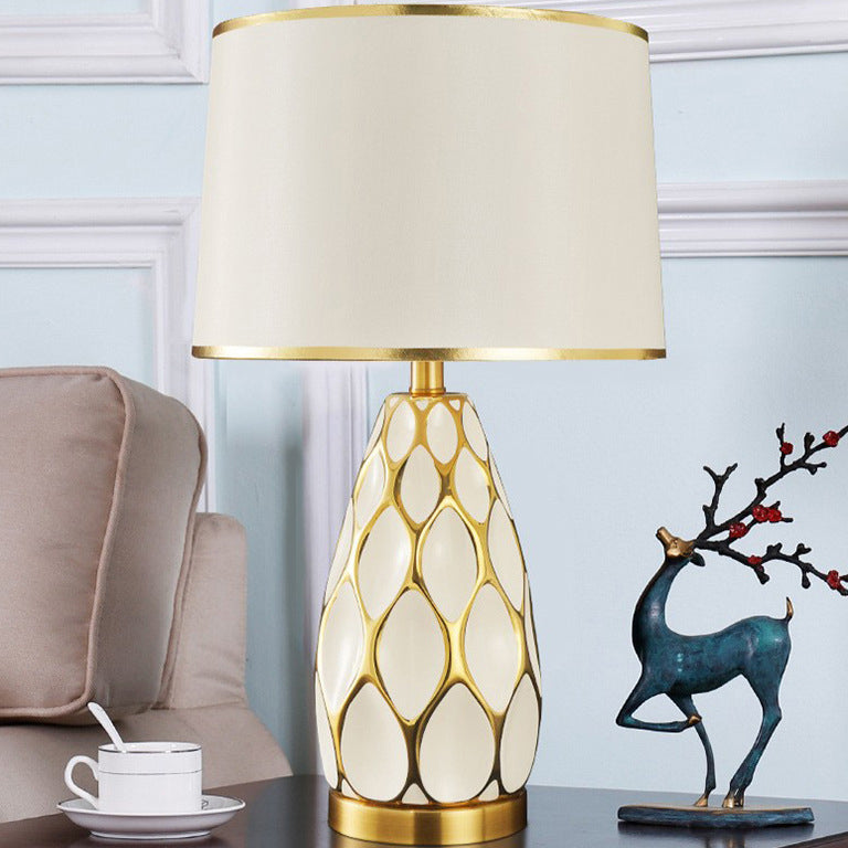 Modern Luxury Handmade Ceramic Column Fabric 1-Light Table Lamp For Living Room