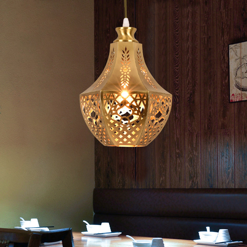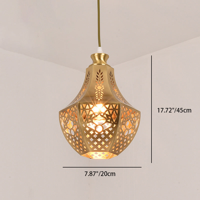 Modern Luxury Hexagonal Copper 1-Light Pendant Light For Dining Room