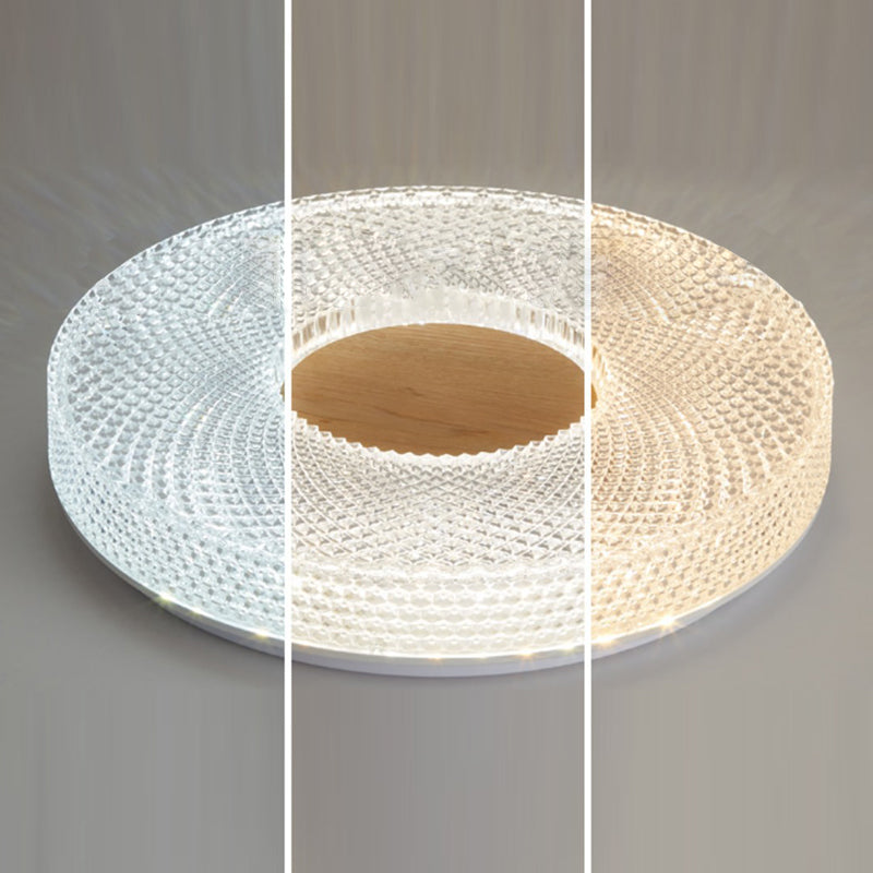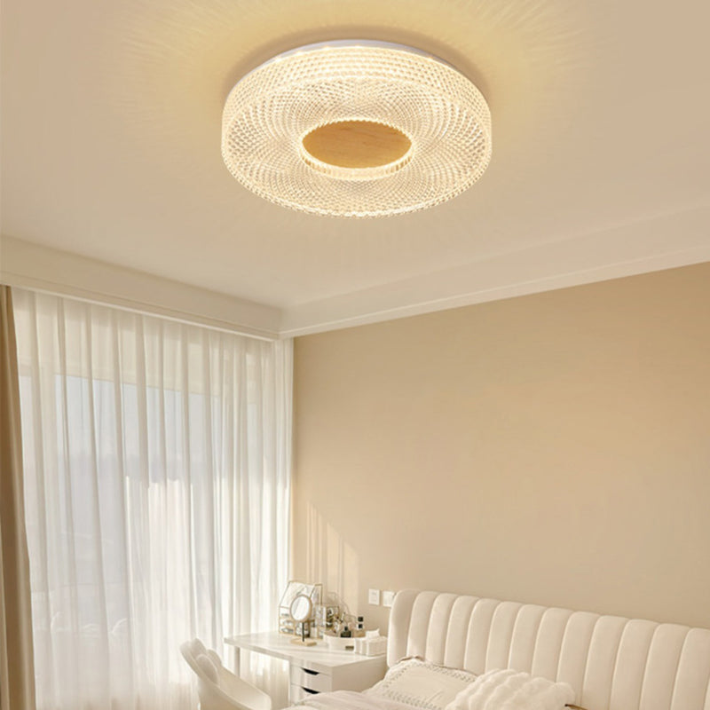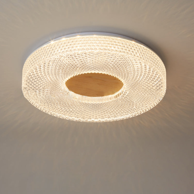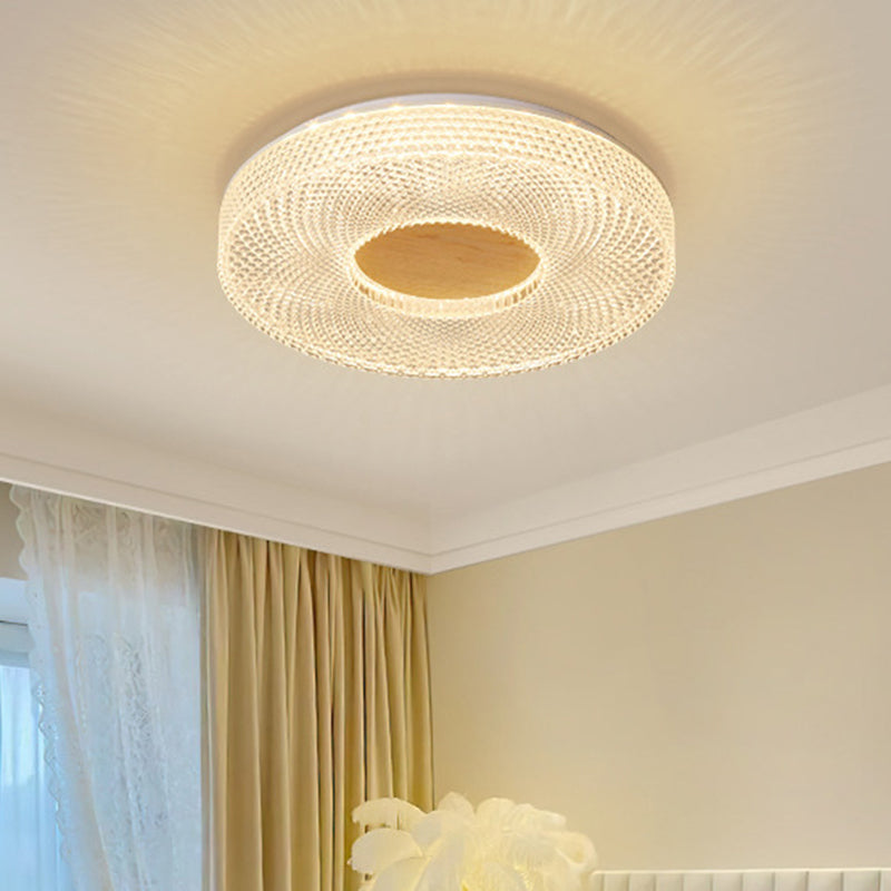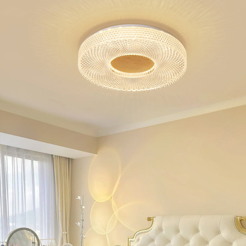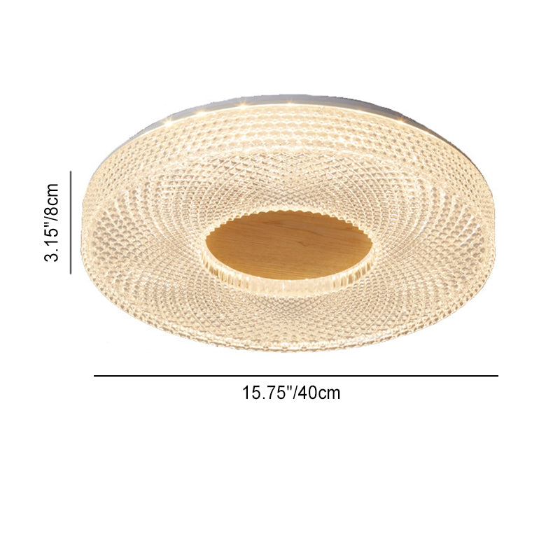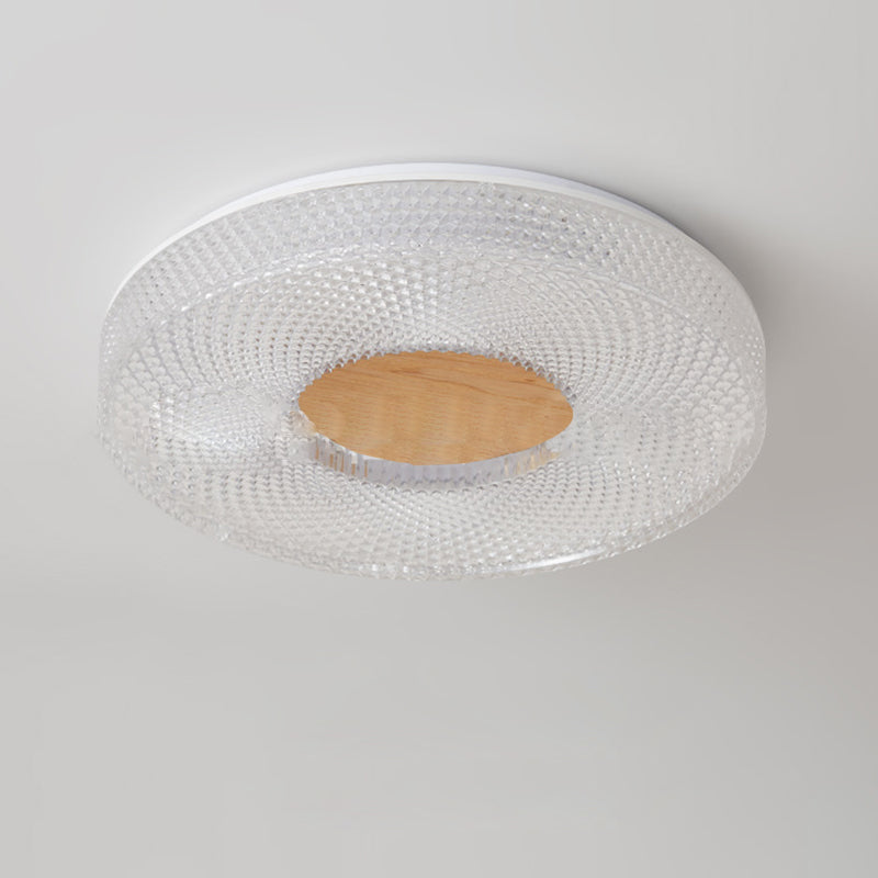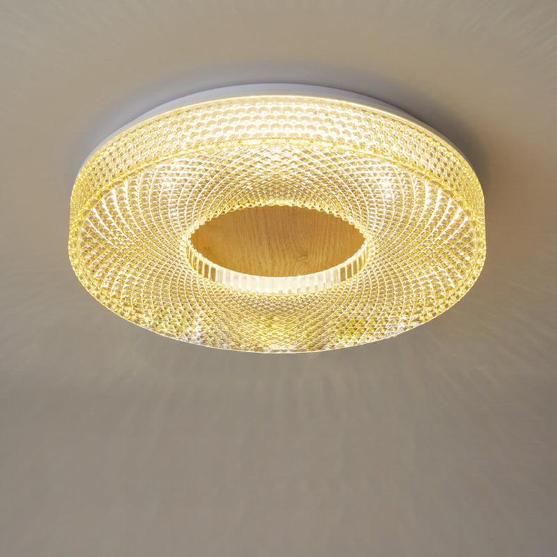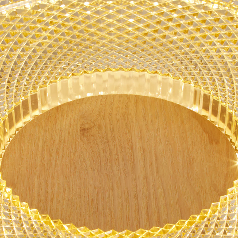 Modern Luxury Hollow Round Acrylic Rubberwood LED Flush Mount Ceiling Light For Living Room