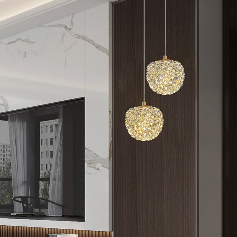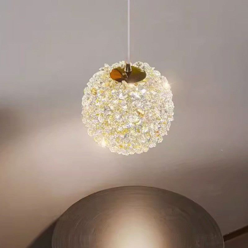 Modern Luxury Iron Crystal Round Ball 1-Light Pendant Light For Living Room