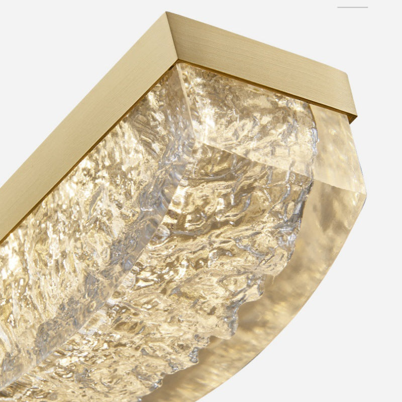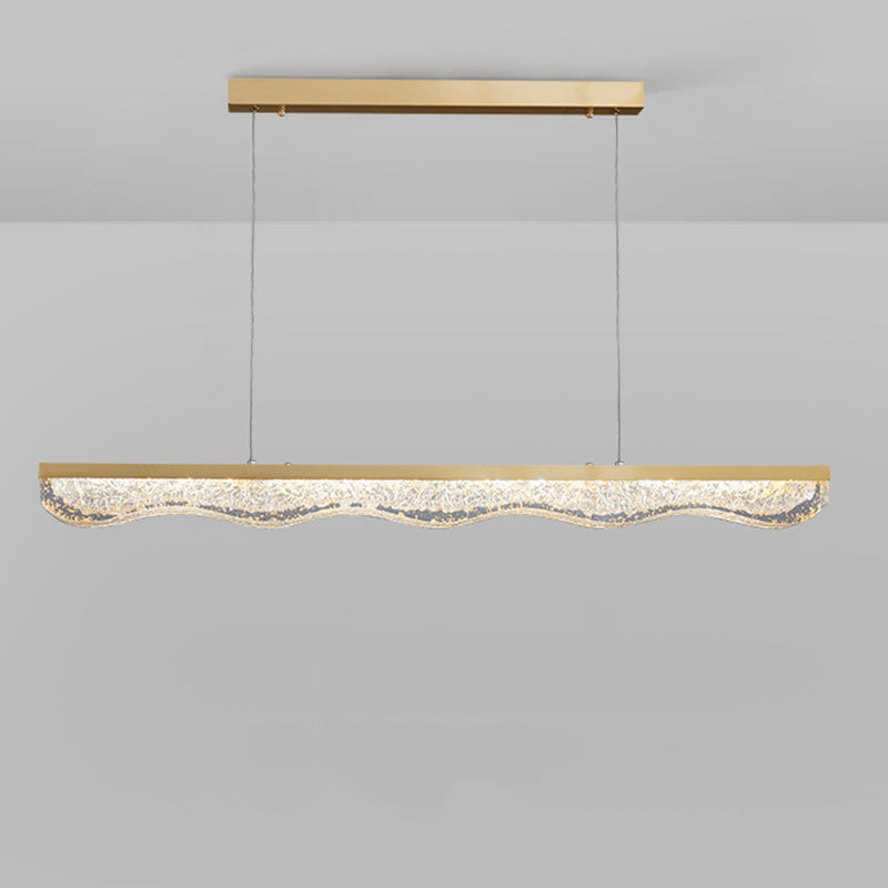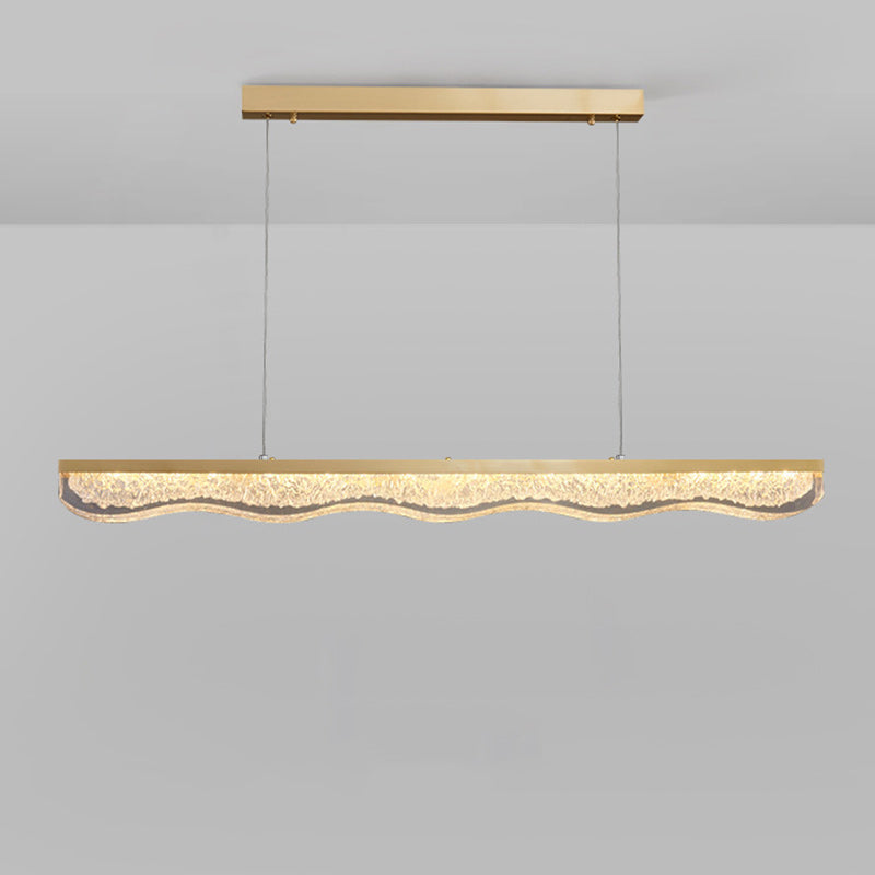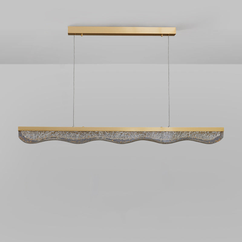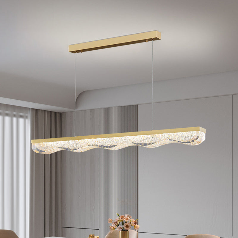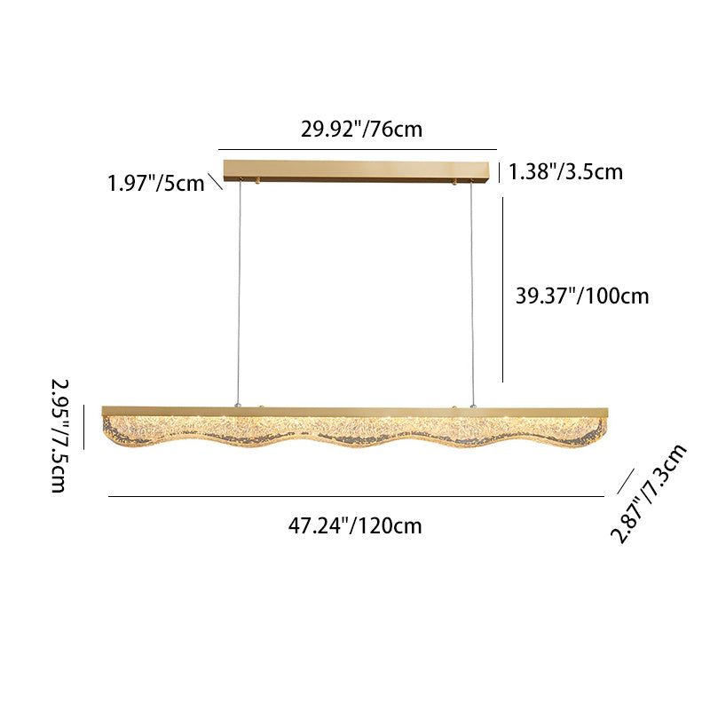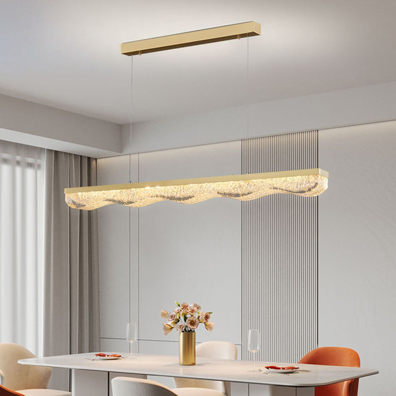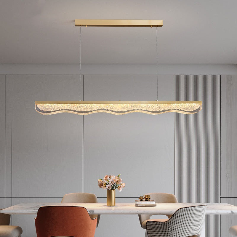 Modern Luxury Linear Rectangle Resin Crystal Copper Stainless Steel LED Island Light Chandelier For Dining Room