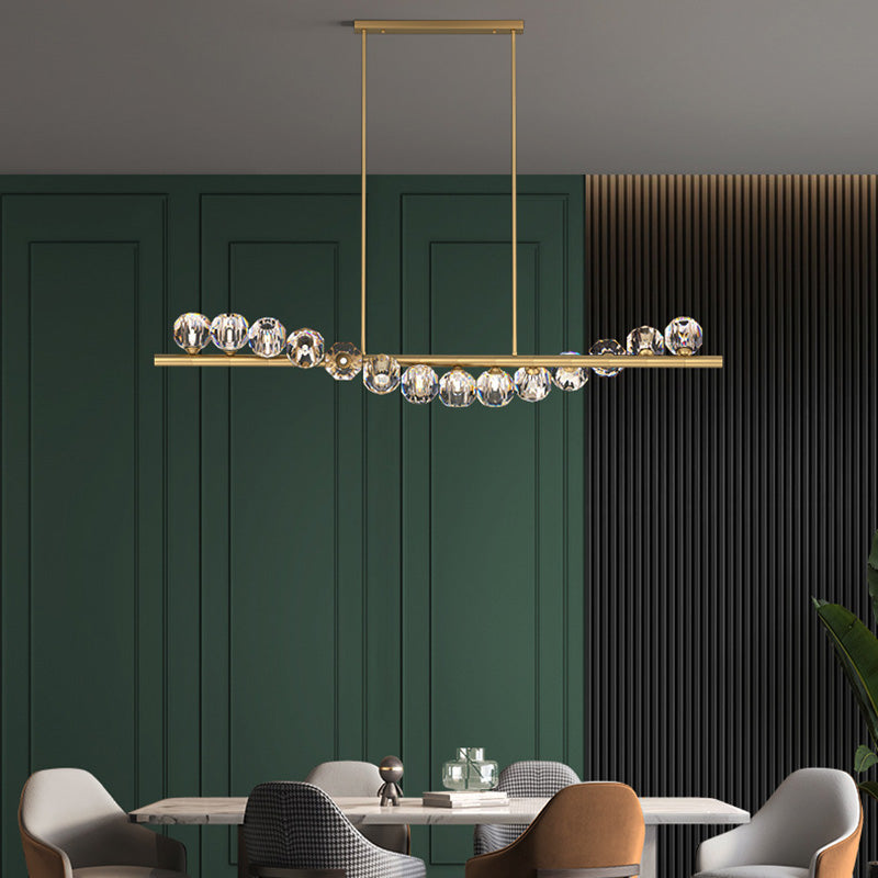 Modern Luxury Magic Bean Linear Orb Copper Crystal 9/11/14/17 Light Chandelier For Living Room