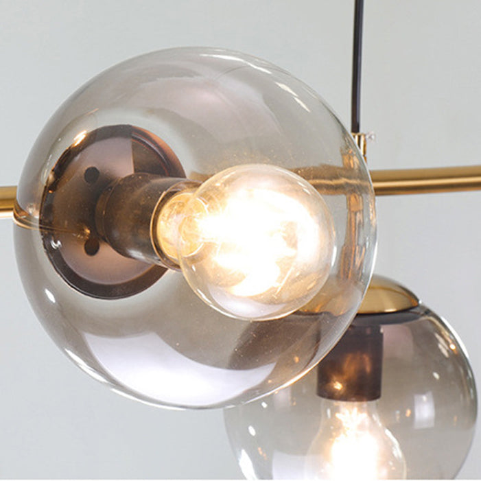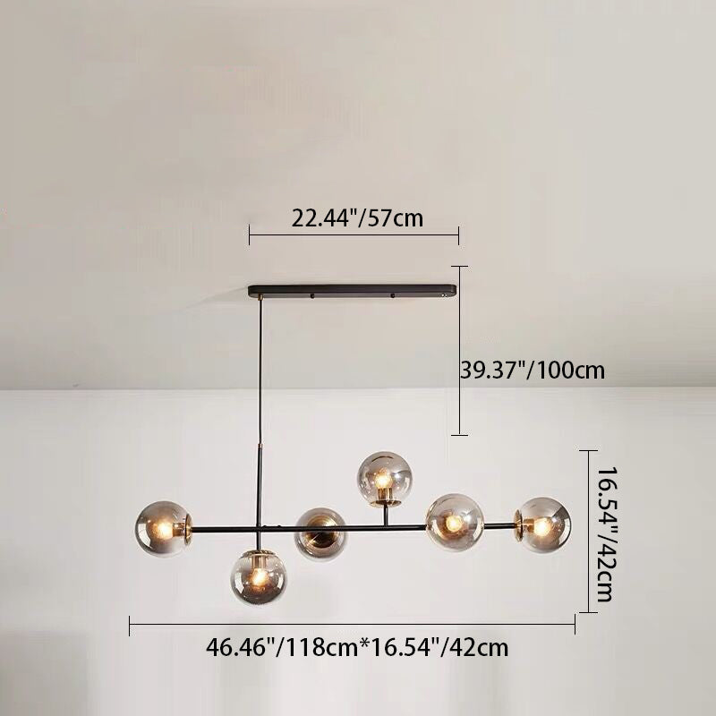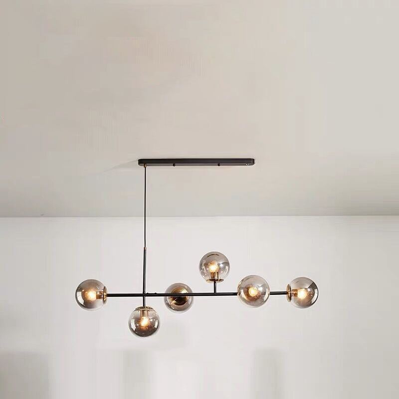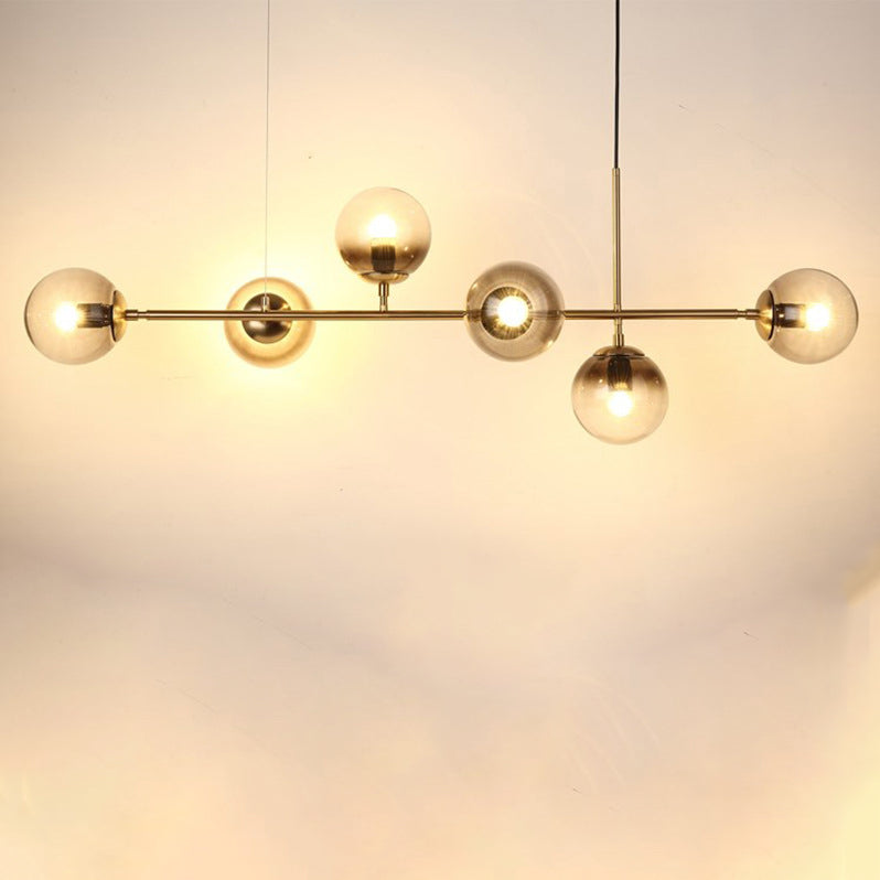 Modern Luxury Magic Bean Orb Long Glass Iron 6-Light Chandelier For Living Room