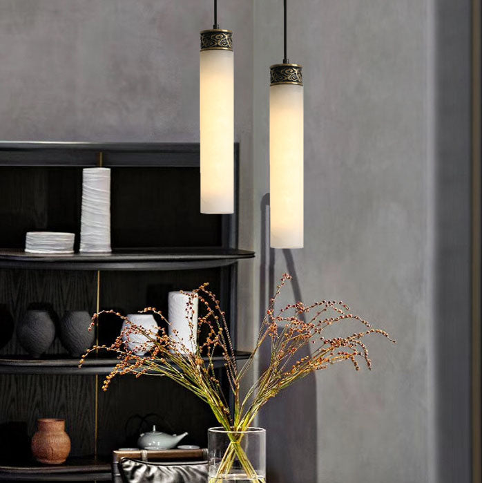 Modern Luxury Marble Column Brass 1-Light Pendant Light