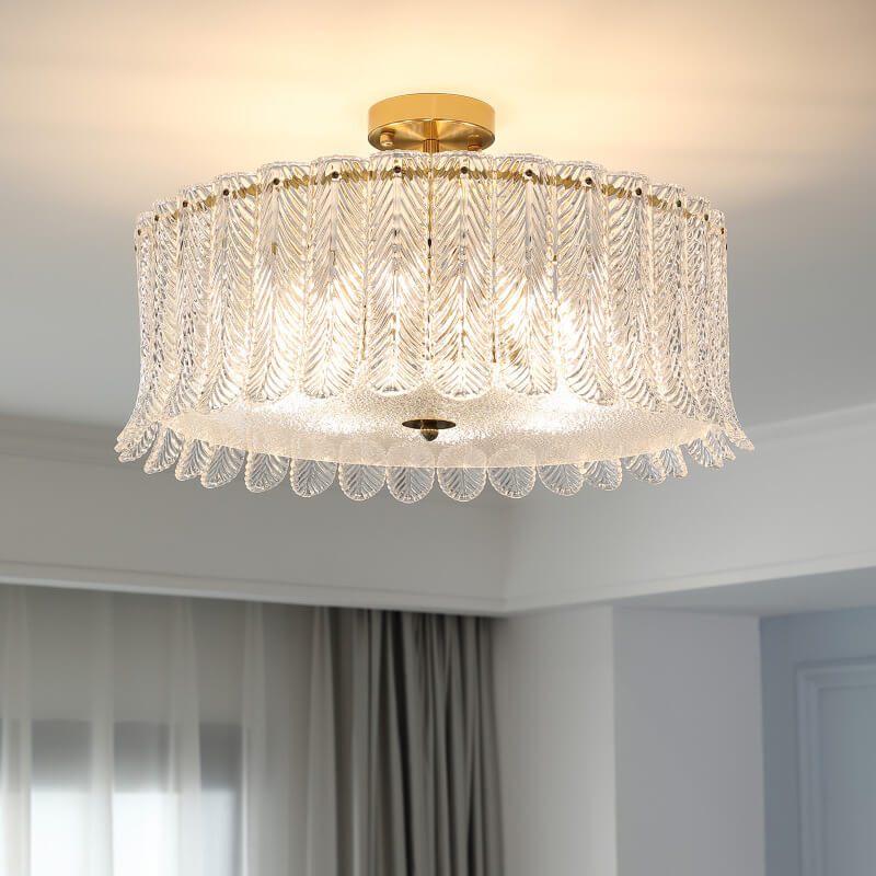 Modern Luxury Orchid Leaf Glass Enclosure Hardware 8-Light Flush Mount Ceiling Light For Living Room