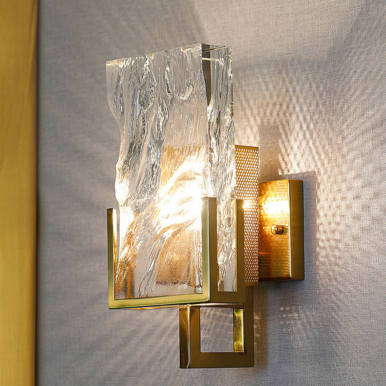 Modern Luxury Rectangular Stainless Steel Crystal 1-Light Wall Sconce Lamp For Bedroom