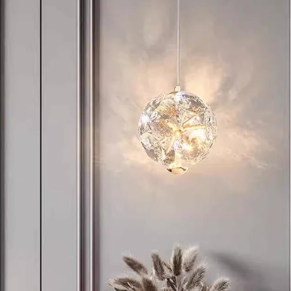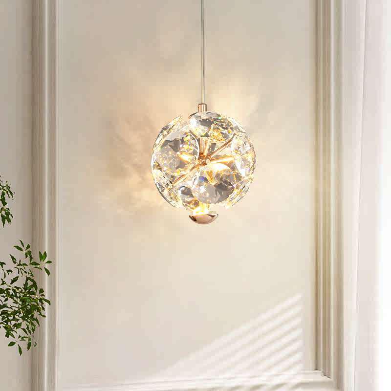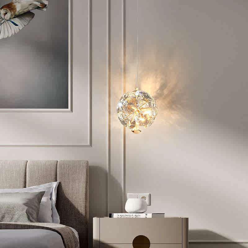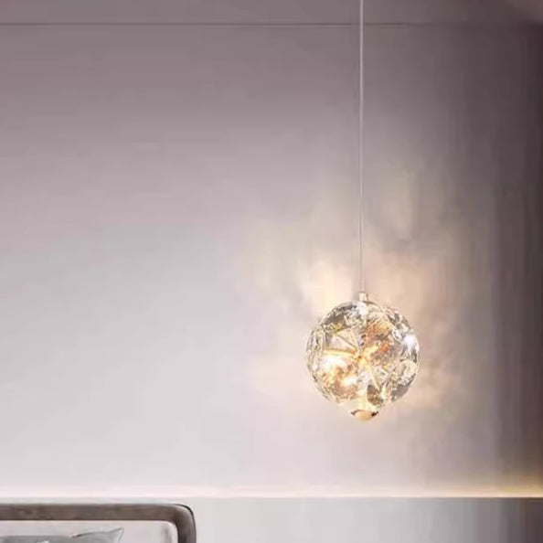 Modern Luxury Round Ball Metal Crystal LED Pendant Light For Bedroom