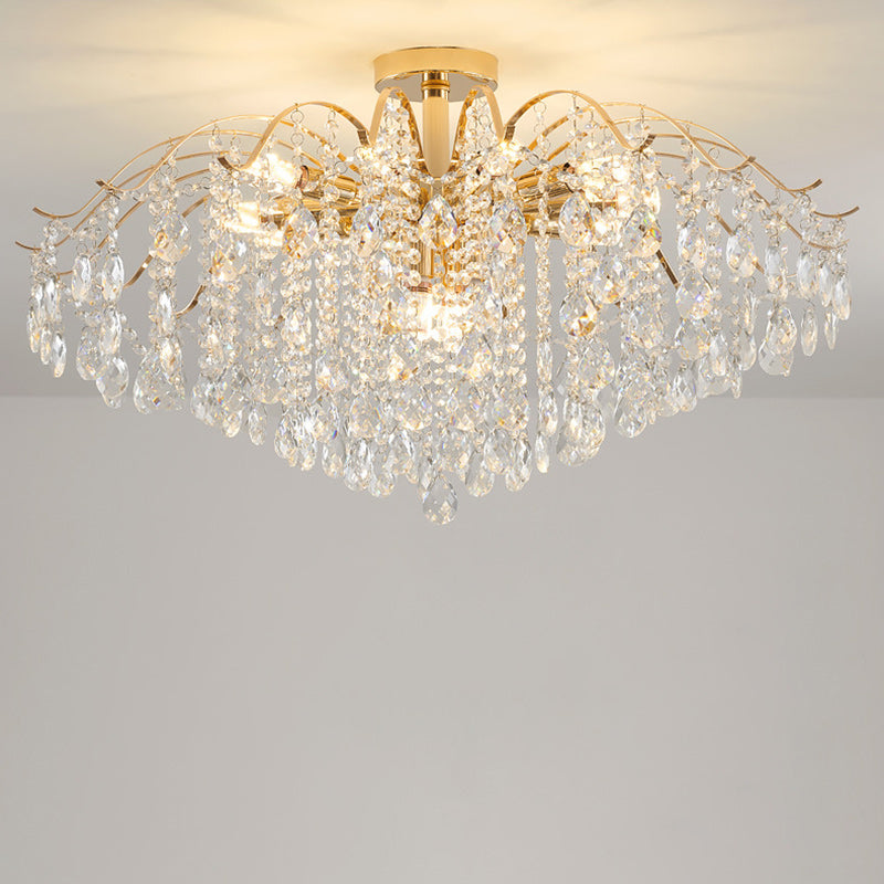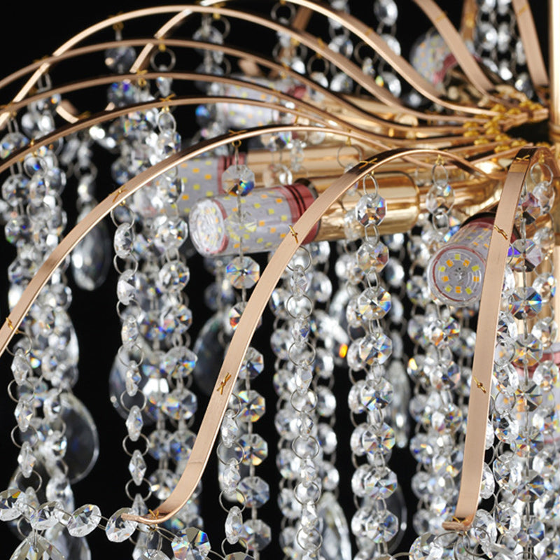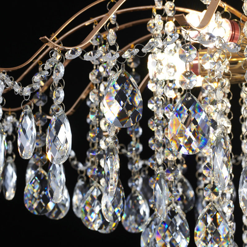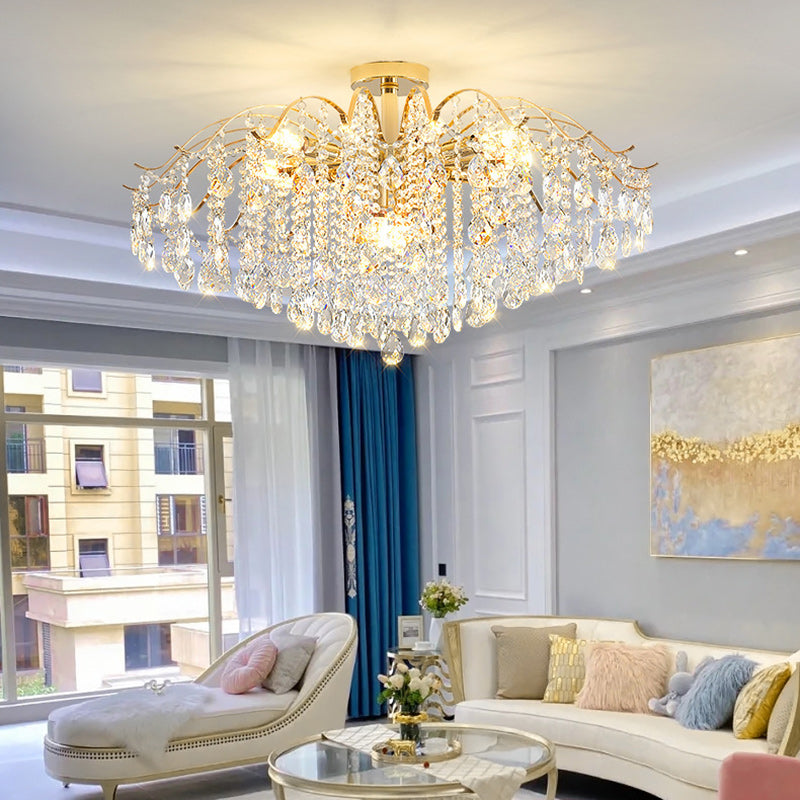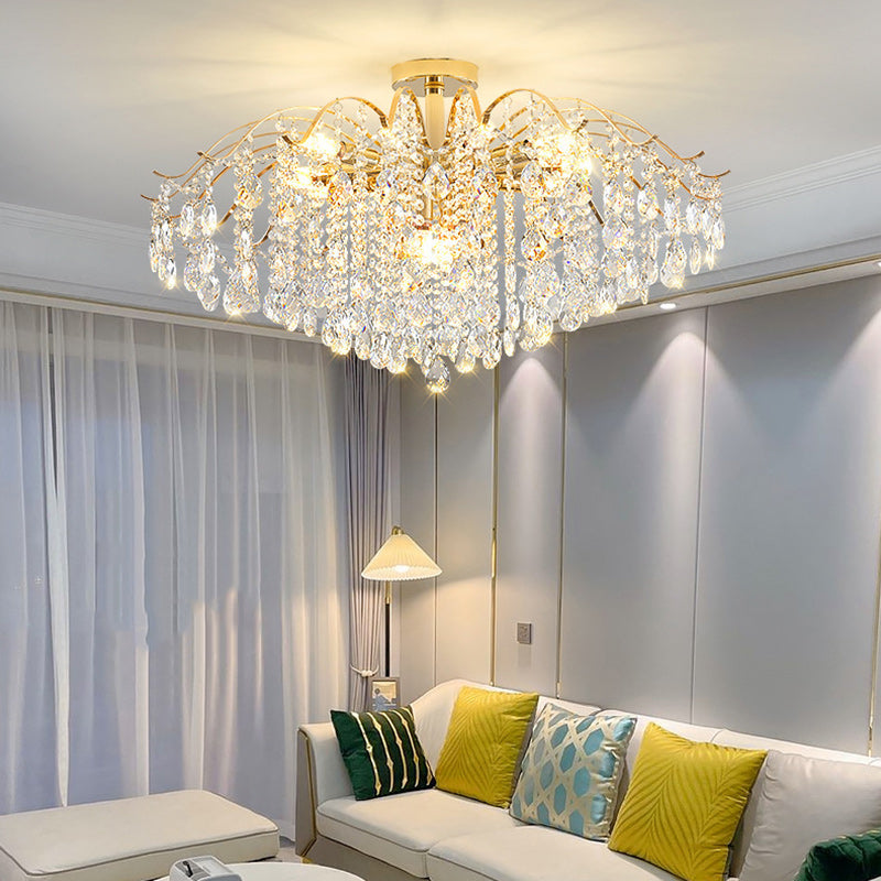 Modern Luxury Round Branch Crystal String Iron 6/10/12/14 Light Chandelier For Living Room