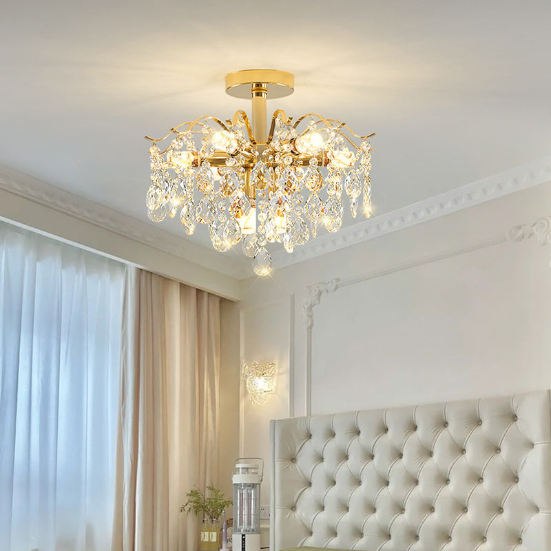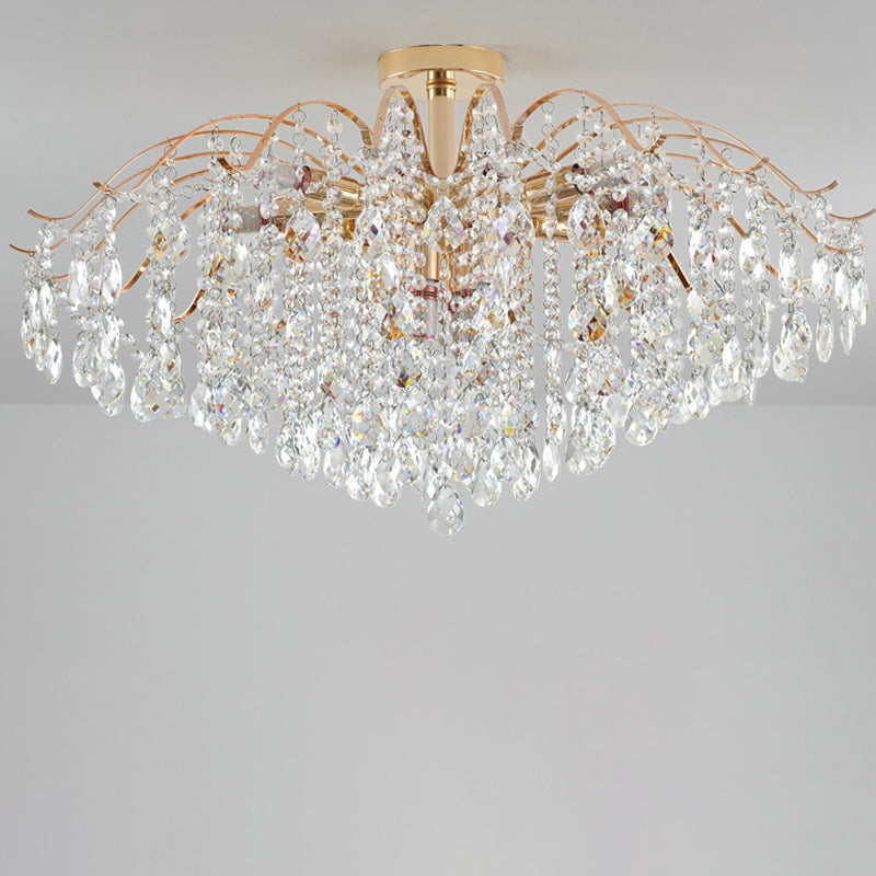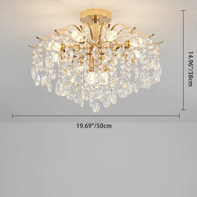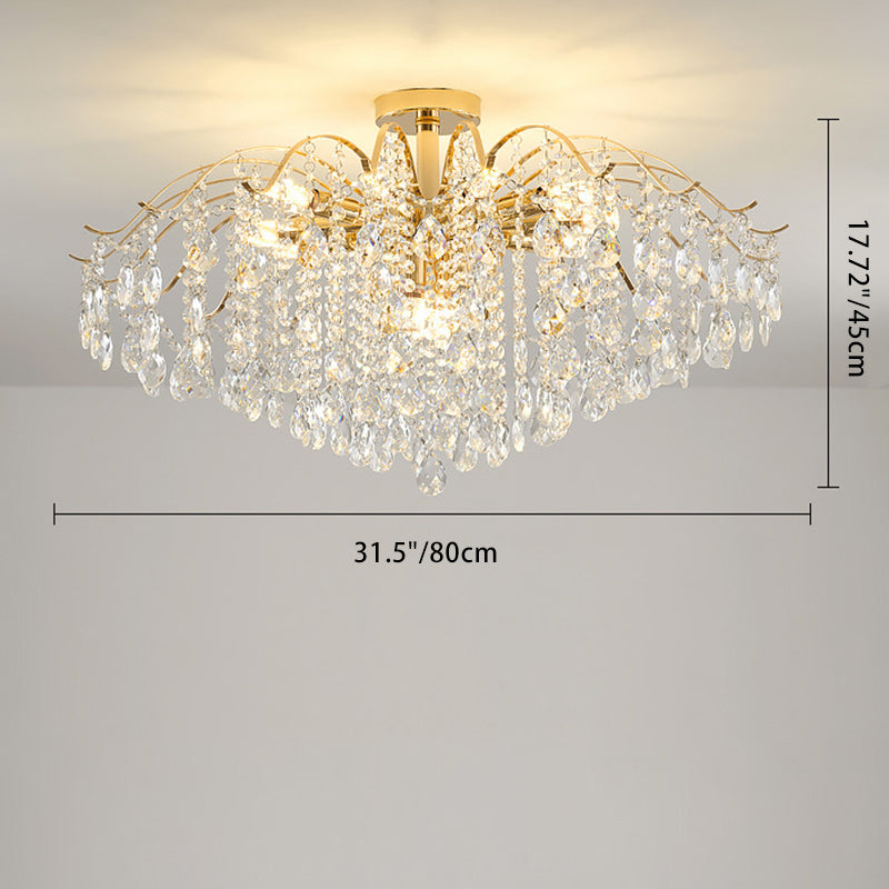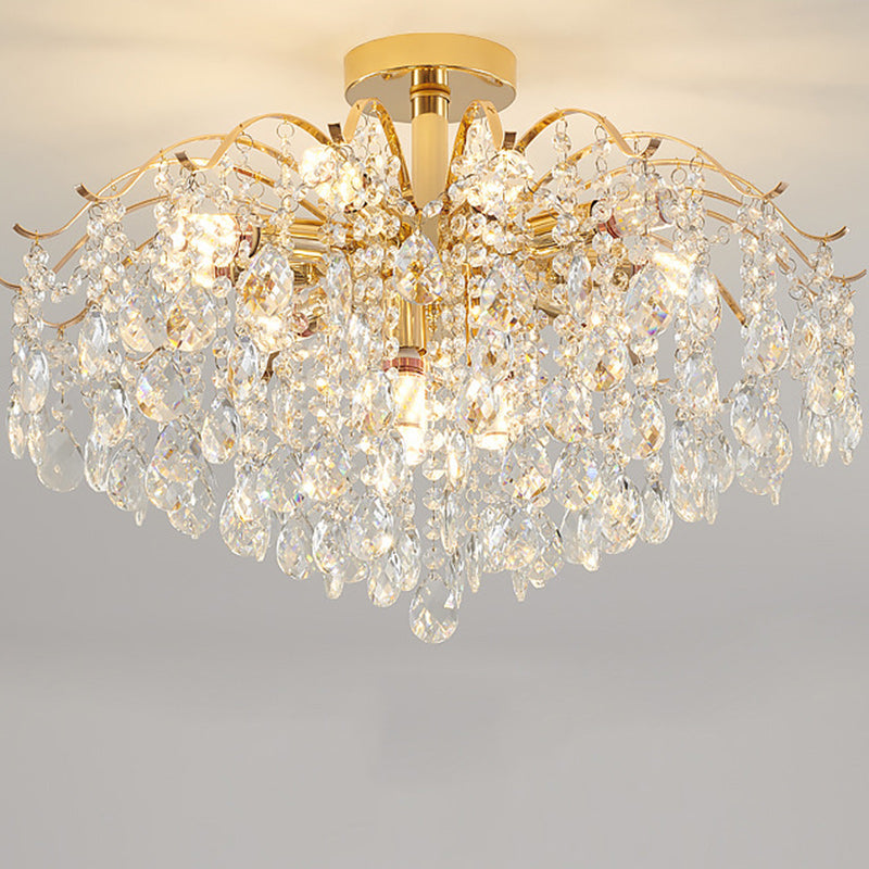 Modern Luxury Round Branch Crystal String Iron 6/10/12/14 Light Chandelier For Living Room