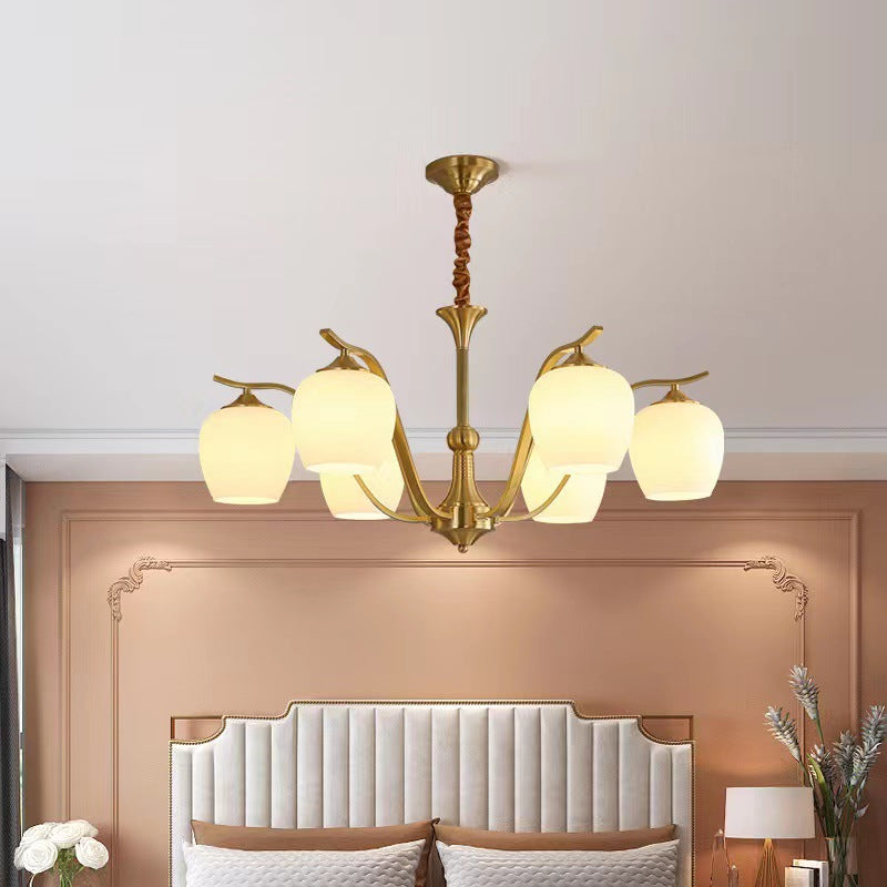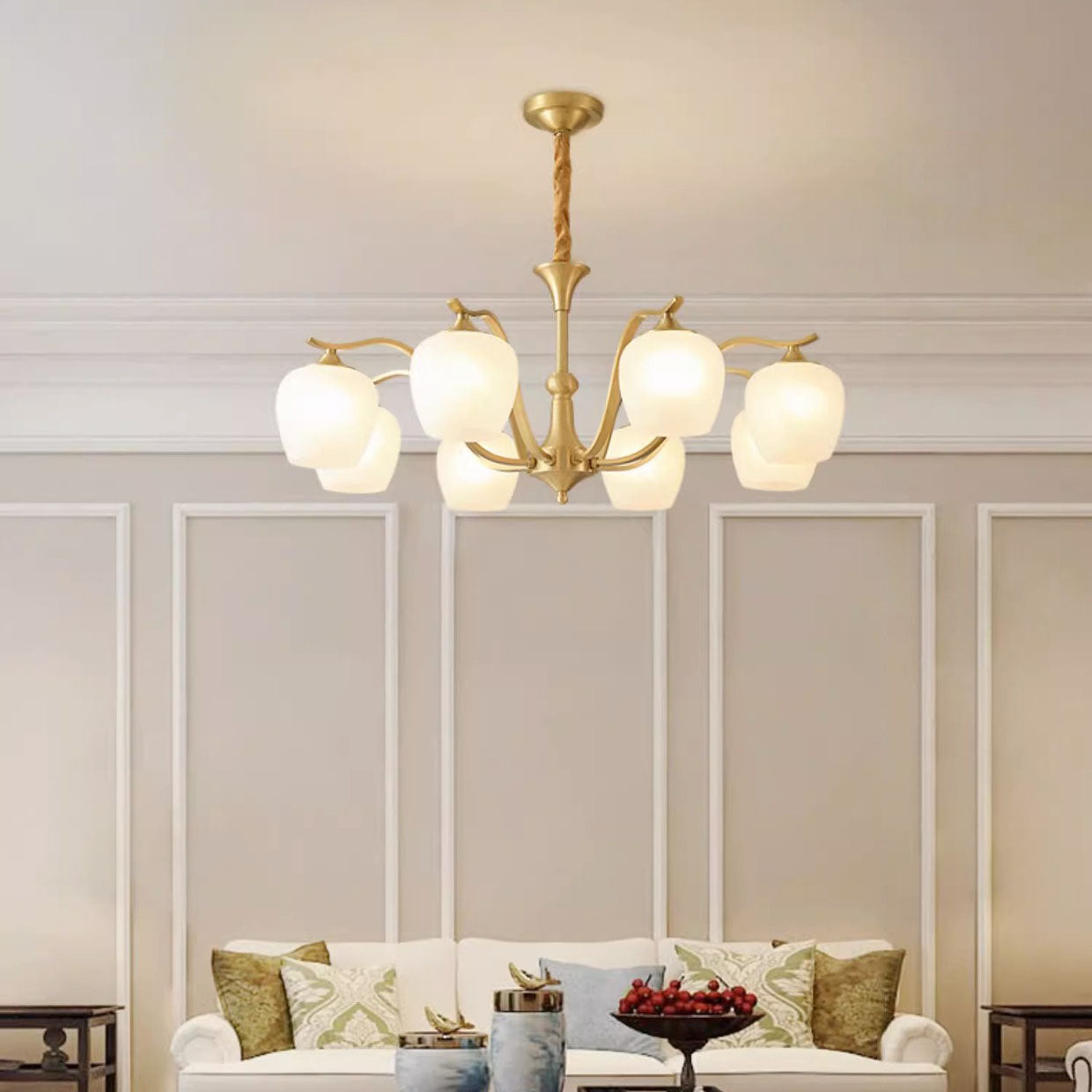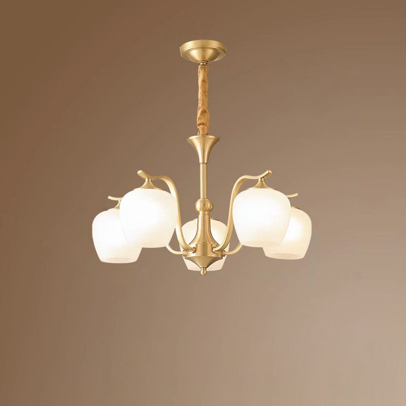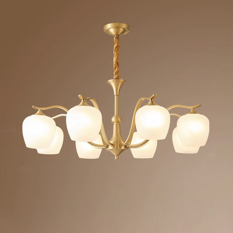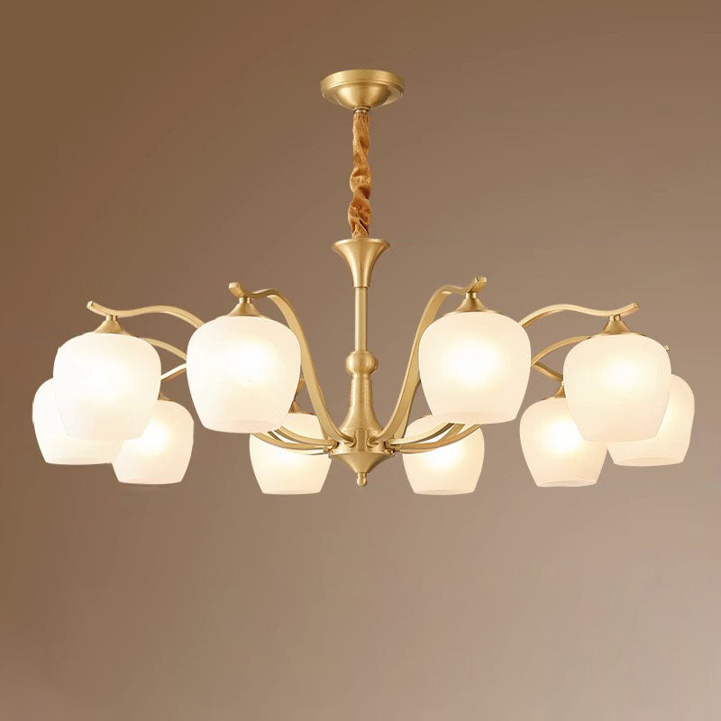 Modern Luxury Round Bud Iron Brass Glass 3/5/6/8/10 Light Chandelier For Living Room